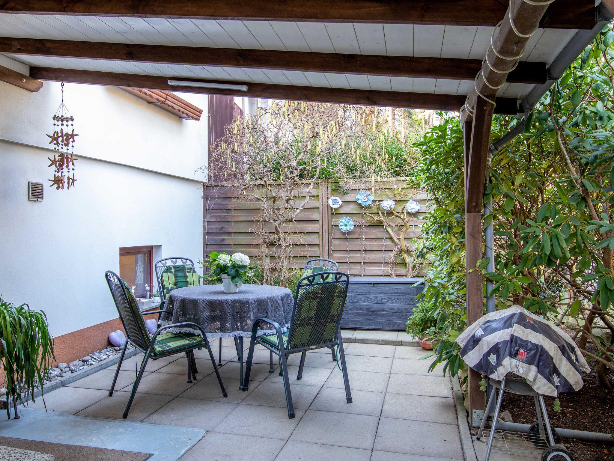 in Ortsrandlage direkt am Küstenwald. Zum Strand sind es nur 400 Meter. Die 2-Zimmer-Wohnung verfügt über eine separate Küche mit Sitzecke und Esstisch für 3 Personen, ein Schlafzimmer mit zwei Schlafmöglichkeiten (90x200, getrennt stellbar), ein Zimmer mit Sofa, Schlafsofa (140x200), sowie ein Bad mit Dusche und WC. Der separate Eingang ist über eine Terrasse mit Gartenmöbeln und Grill erreichbar. Auf dem Grundstuck befindet sich ein PKW-Stellplatz, Fahrräder können ebenfalls untergestellt werden. Da sich auf dem Hof ein unbewachter, nicht umzäunter Teich befindet, können wir Buchungen mit Kleinkindern leider nicht realisieren.