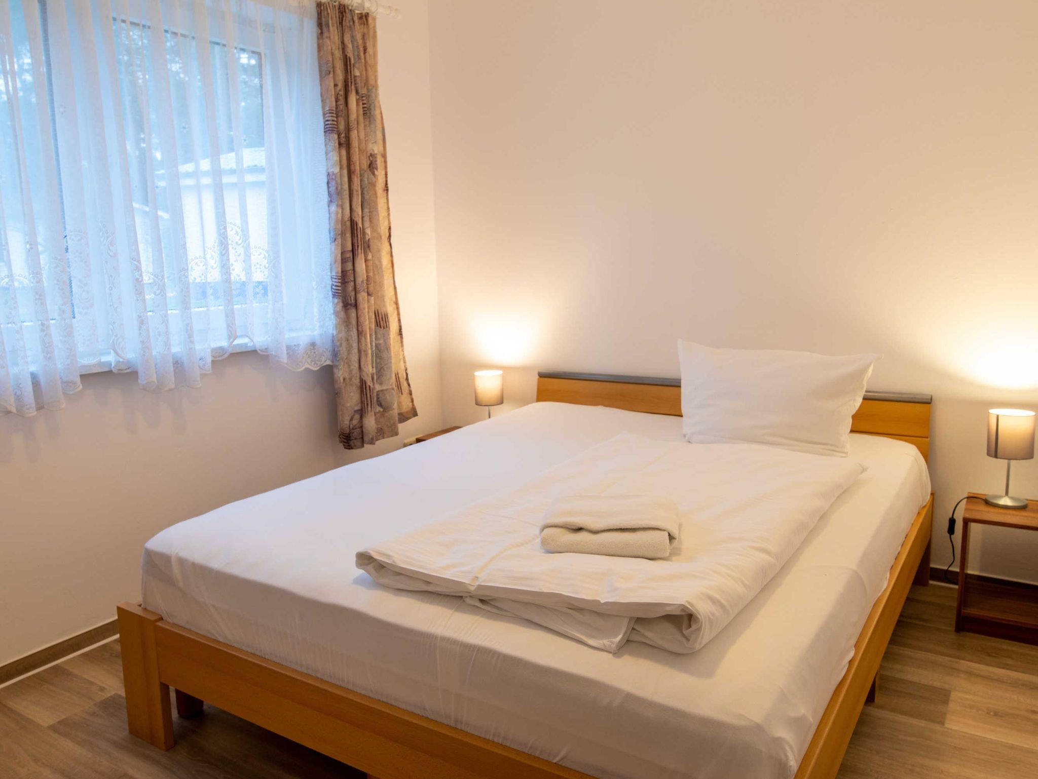 Das Wohnzimmer ist mit einer Schlafcouch (Aufbettung für 2 Personen), TV, einem Esstisch und einer Miniküche mit Kühlschrank und Mikrowelle eingerichtet. Im ersten Schlafzimmer befindet sich ein gemütliches Doppelbett mit Kleiderschrank. Das zweite Schlafzimmer beherbergt zwei Einzelbetten und einen Kleiderschrank. Das freundliche Tageslichtbad hat eine Dusche und ein WC. Zum Entspannen und Sonne tanken lädt die Terrasse ein. Sie ist vom Wohnzimmer aus begehbar.
