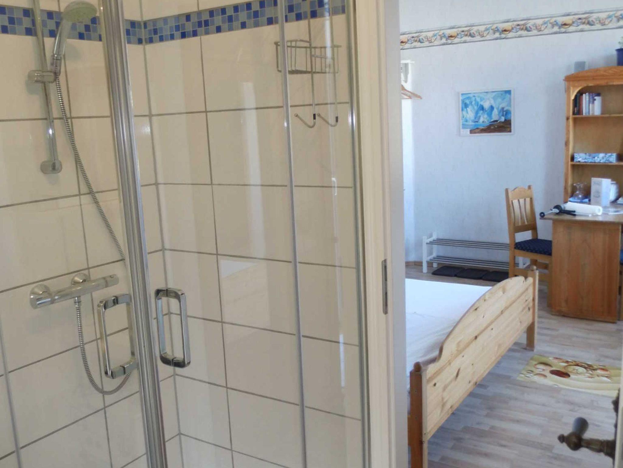 Das Doppelzimmer mit Balkon ist allergikergerecht. Eine Aufbettung für Babys / Kleinkinder ist möglich. Ausgestattet mit Spezialbettwäsche, Handtücher, TV, Radio und Laminatfußboden. Alle drei Tage ist Handtuchwechsel und es wird gereinigt. Haustiere sind leider in diesem Zimmer nicht erlaubt! Die Terrasse neben dem Haus kann jederzeit genutzt werden; sowie der Grill und unser Spielplatz. Waschmaschine, Trockner & Minibar für alle Gäste befinden sich im Erdgeschoss neben dem Frühstücksraum. Der hauseigene Parkplatz ist hinter der Villa.