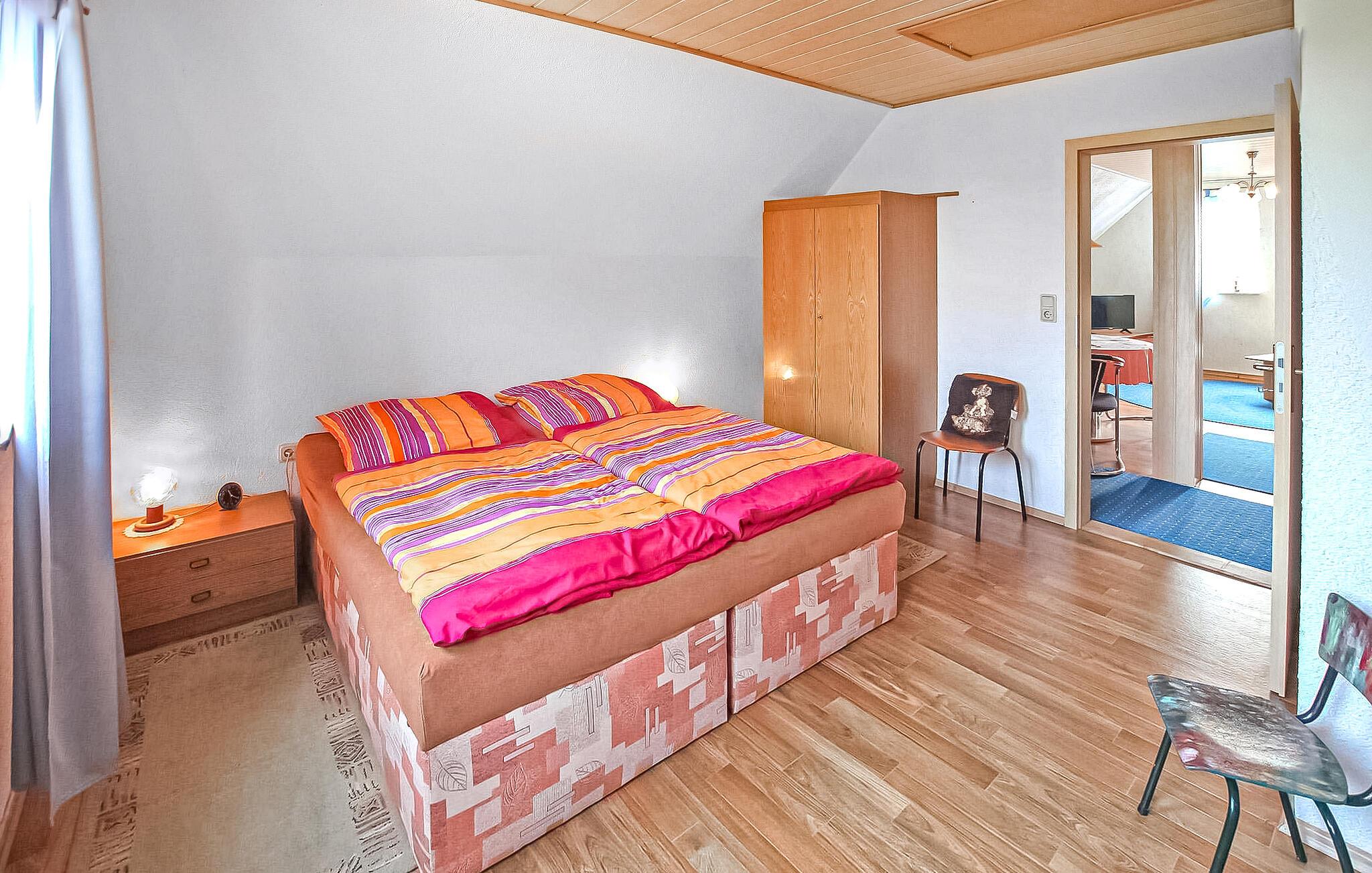 Das ca. 70 qm große, familienfreundliche Nichtraucher-Ferienhaus erstreckt sich über zwei Etagen. Im Erdgeschoss befinden sich eine große Küche (Essecke, E-Kocher, Kühlschrank mit Gefriermöglichkeit, Mikrowelle, div. Küchenkleingeräte) und das Bad (Dusche, WC, Fön), jeweils mit Ausgang zur Terrasse. Im Obergeschoss (relativ steile Treppe!) liegt das große Wohnzimmer (Schlafcouch - Aufbettung für zwei Personen, Esstisch, Flachbild-TV, Schrankbett - Aufbettung für ein Kind) und das Schlafzimmer (Doppelbett, ein Einzelbett). Zusätzlich stehen eine große Terrasse, eine Holz-Sitzgruppe direkt vor dem Haus, eine weitere Sitzecke mit Spielgeräten im Garten, Grill und Feuerschale, Parkplatz, Fahrrad-Unterstellmöglichkeiten, Kinderbett- und Hochstuhl sowie elektrische Heizkörper zur Verfügung.