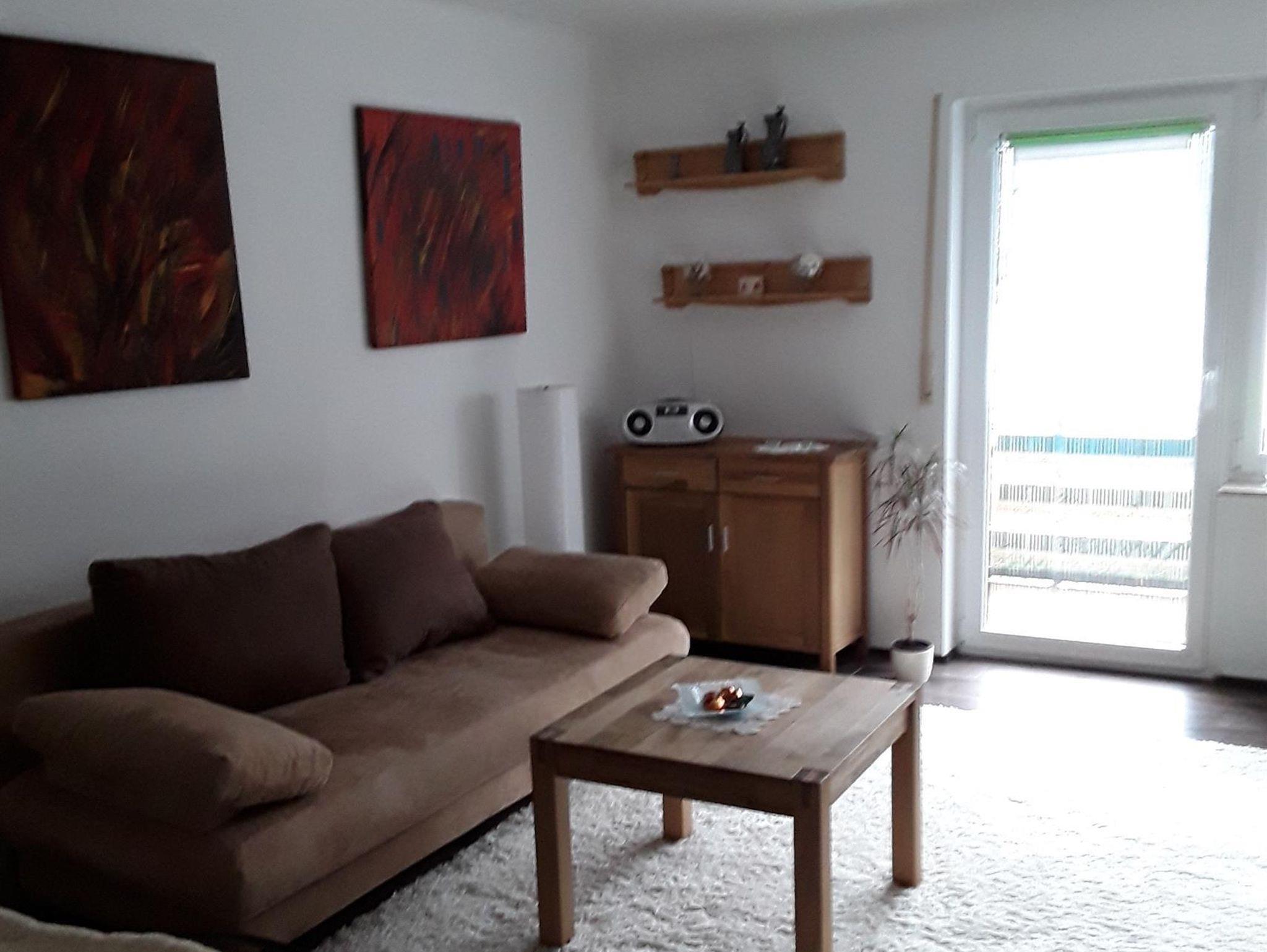 Neu renovierte und geschmackvoll zum Wohlfühlen eingerichtete Ein-Zimmer-Ferienwohnung mit Küchenzeile, Essbereich im 1.OG mit Balkon, sehr ruhig gelegen im Ortsteil Schöntal direkt am Wald und 150 Meter vom Badeweiher Schöntal entfernt. Schöntal hat keinen Durchgangsverkehr, generell nur 30 kmStd erlaubt. Es besteht die Möglichkeit neben dem Doppelbett die Couch als Schlafcouch zu benutzen, so können auch drei Personen übernachten.