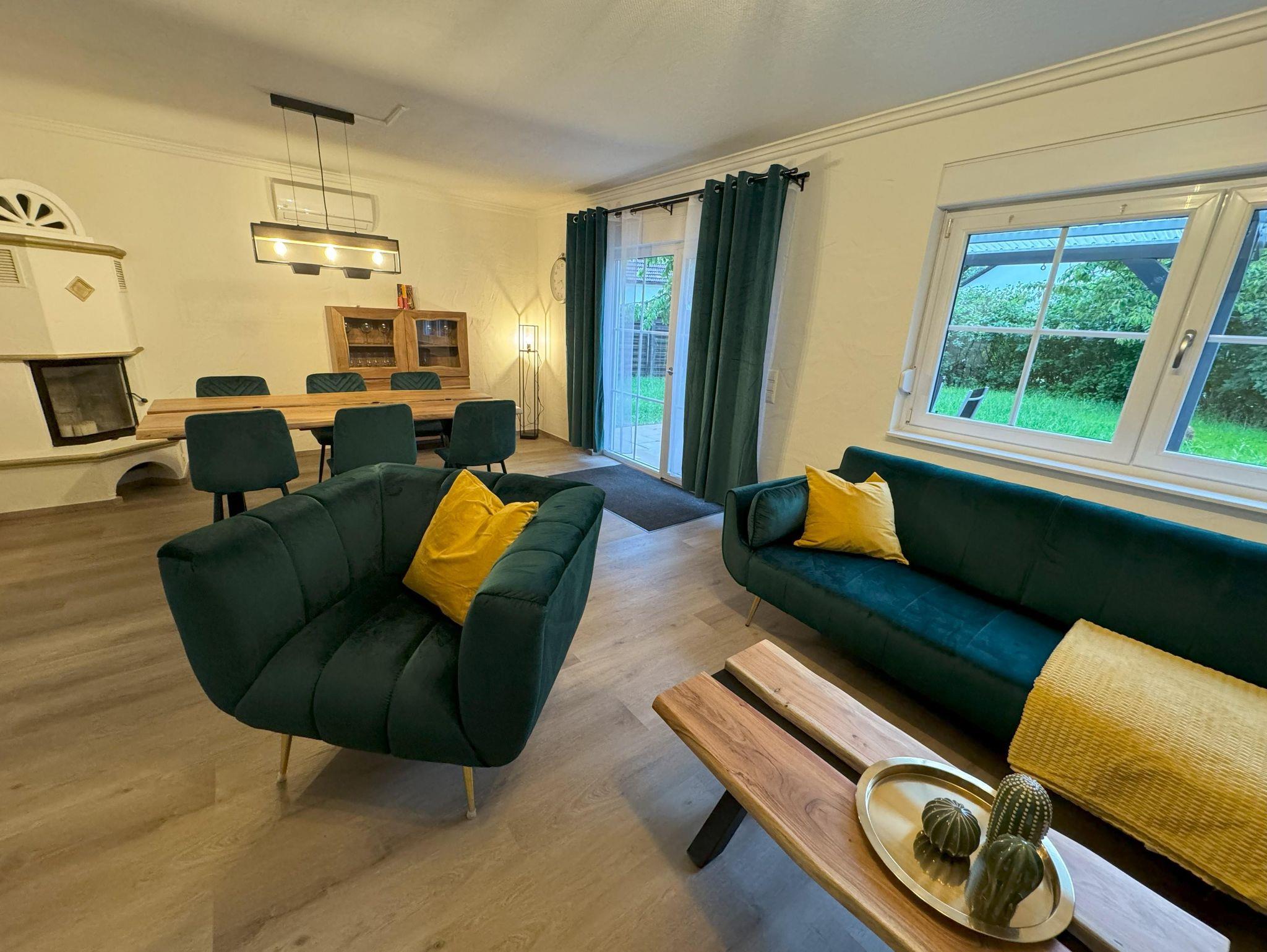 Im offen gestalteten Erdgeschoß mit direktem Zugang zur großzügigen Terrasse und schönem Garten, befindet sich das gemütliche Wohnzimmer sowie das Esszimmer, angrenzend an die gut ausgestattete moderne Küche.
