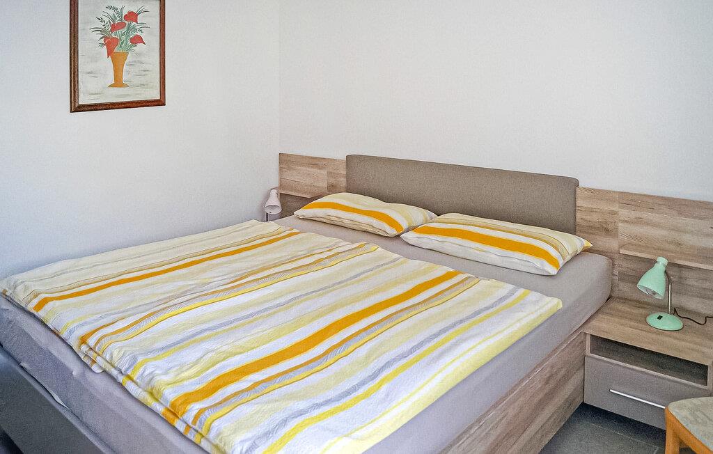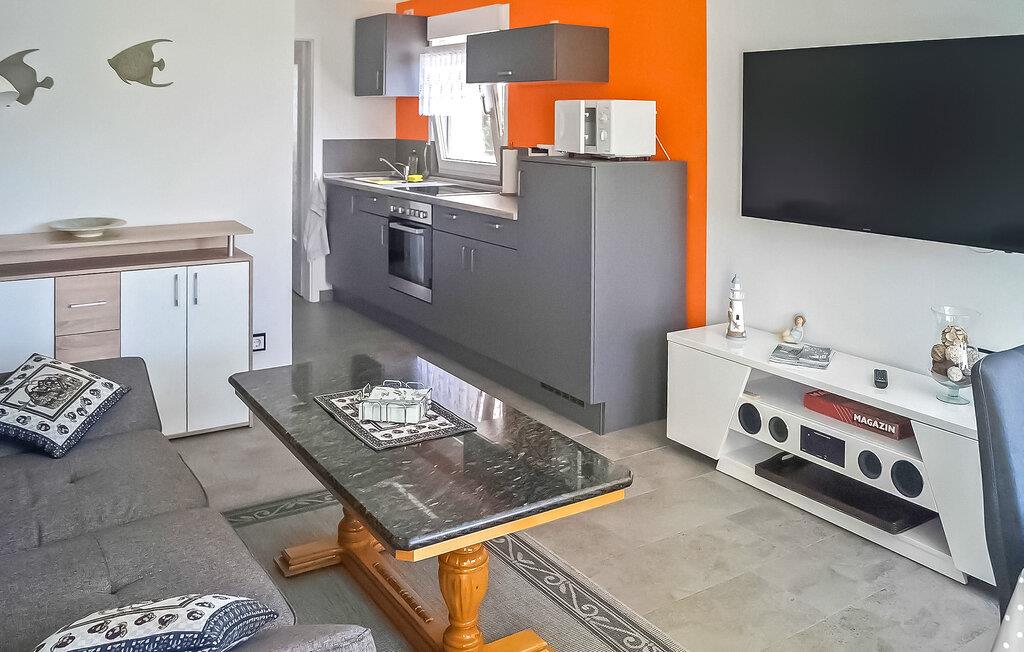 Das etwa 35 qm große, 2018 komplett sanierte Ferienhaus für bis zu 3 Personen ist ca. 30 m vom Wasser entfernt und ausgestattet mit einem Wohnraum (Schlafcouch - Aufbettung für 1 Person, Flachbild-TV, DVD-Player, Radio mit CD-Player) mit offener Küche (E-Herd mit Backofen, Kühlschrank mit Tiefkühlfach, Mikrowelle, div. Küchenkleingeräte), einem Schlafzimmer (Doppelbett) sowie Bad mit Dusche, WC und Fön. Das Ferienhaus verfügt über W-LAN, Insektenschutz an den Fenstern und E-Heizung. Das Rauchen ist ausschließlich im Freien gestattet. Zum Ferienhaus gehören: möblierte Terrasse mit Grill, 1 Fahrrad (kostenlos), 1 Ruderboot (kostenlos).