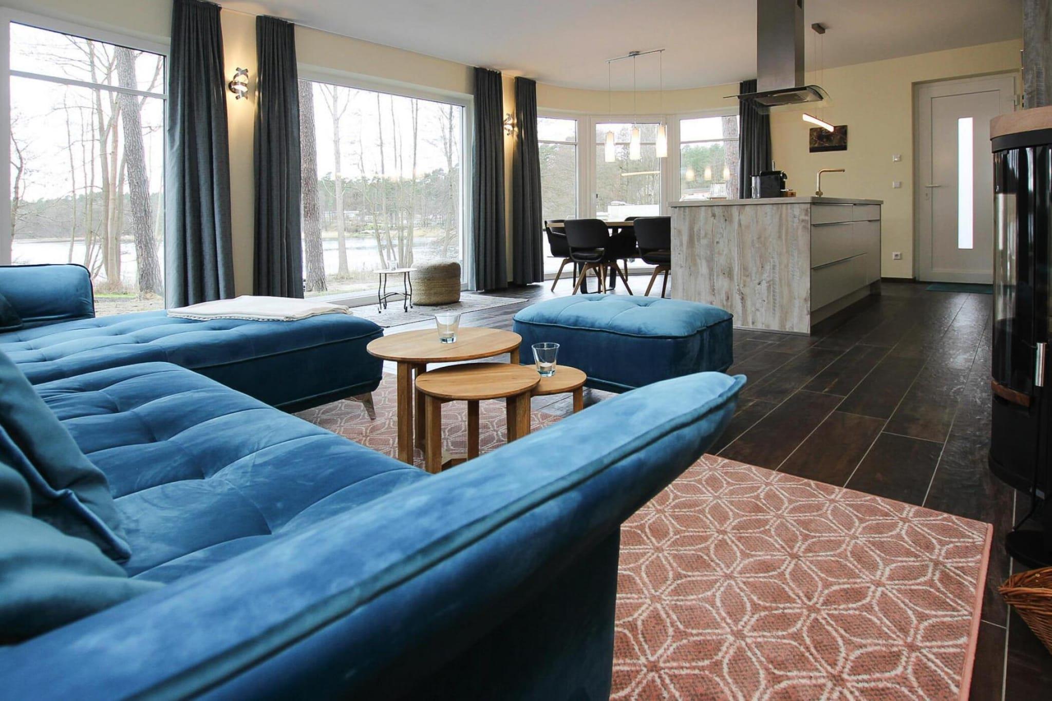 Modern, high-quality furnished holiday villa spread over two floors with Wi-Fi and two fireplaces, located just 50 meters from the Großer Lychensee on a large hillside plot. Villa Seeblick, which also includes two private canoes and two stand-up paddleboards, accommodates six people and, in addition to its tastefully designed furnishings, boasts a fantastic roof terrace and a sauna, which you can use free of charge. In the heart of the Uckermark Lakes Nature Park lies the state-recognized island town of Lychen, which boasts seven lakes within its immediate urban area. The Uckermark lake district consists of expansive forests, lush meadows, rolling hills, and rushing streams. Secluded lakes can be found throughout the region. Highlights included: Usage-based energy costs, bed linen and towels Wi-Fi 2 canoes Tourist tax (from January 10, 2026) Activities nearby: Various events take place throughout the year in the picturesque town of Lychen, and there are wonderful cycling paths in stunning surroundings. The Uckermärkische Seen Nature Park to the south and the Müritz National Park to the north of Lychen offer extensive nature experiences. Those who want to enjoy the vibrant city atmosphere in between can take a day trip to Berlin, which can be reached in about an hour and a half.