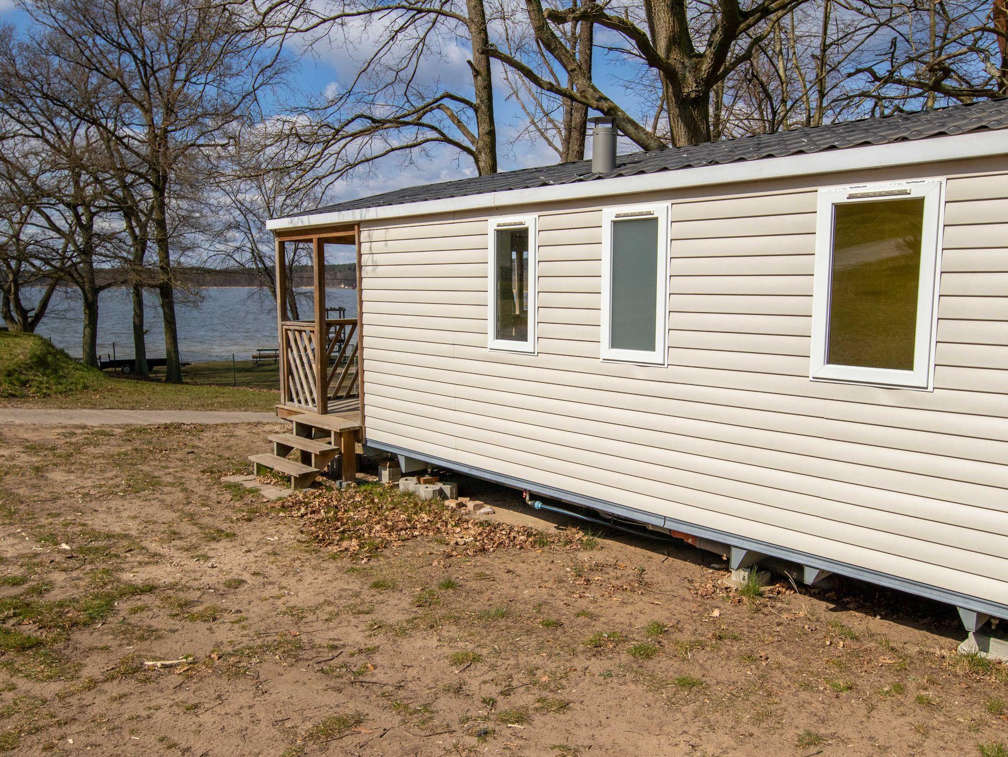 Die komfortabel eingerichteten mobilen Ferienhäuser befinden sich in dem Camping- und Ferienpark in Lychen direkt am Strandbad des Großen Lychensees. Von den Ferienhäusern haben Sie einen direkten Zugang zum Wasser. Die Mobilheime liegen im Hang, von dem Sie einen unverbauten Seeblick genießen können. Die Mobilheime sind mit zwei Schlafzimmern, eines mit französischem Doppelbett (140x200) und eines mit zwei Einzelbetten (80x190), einer komplett ausgestatteten Küche, Wohnraum mit TV/Radio und einer Aufbettungsmöglichkeit (Schlafcouch; 130x190) sowie einem Bad mit Dusche und separater Toilette ausgestattet. Sie können den Sonnenuntergang von der integrierten Terrasse genießen.