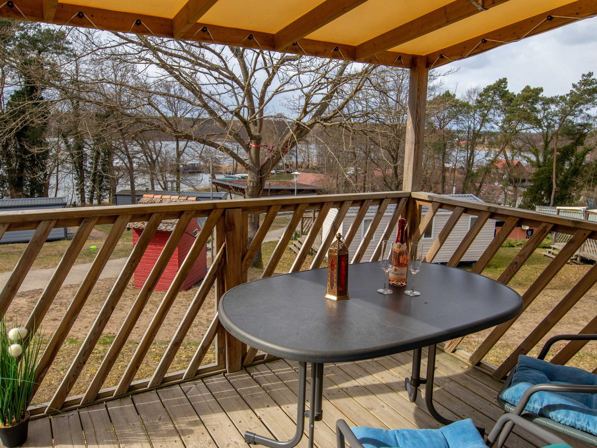 Die komfortabel eingerichteten mobilen Ferienhäuser befinden sich in dem Camping- und Ferienpark in Lychen direkt am Strandbad des Großen Lychensees. Von den Ferienhäusern haben Sie einen direkten Zugang zum Wasser. Die Mobilheime liegen im Hang, von dem Sie einen unverbauten Seeblick genießen können. Die Mobilheime sind mit zwei Schlafzimmern, eines mit Doppelbett (140x200) und eines mit zwei Einzelbetten (80x190), einer komplett ausgestatteten Küche, Wohnraum mit TV/Radio und einer Aufbettungsmöglichkeit (Schlafcouch; 130x190) sowie einem Bad mit Dusche und separater Toilette ausgestattet. Sie können den Sonnenuntergang von der integrierten Terrasse genießen.