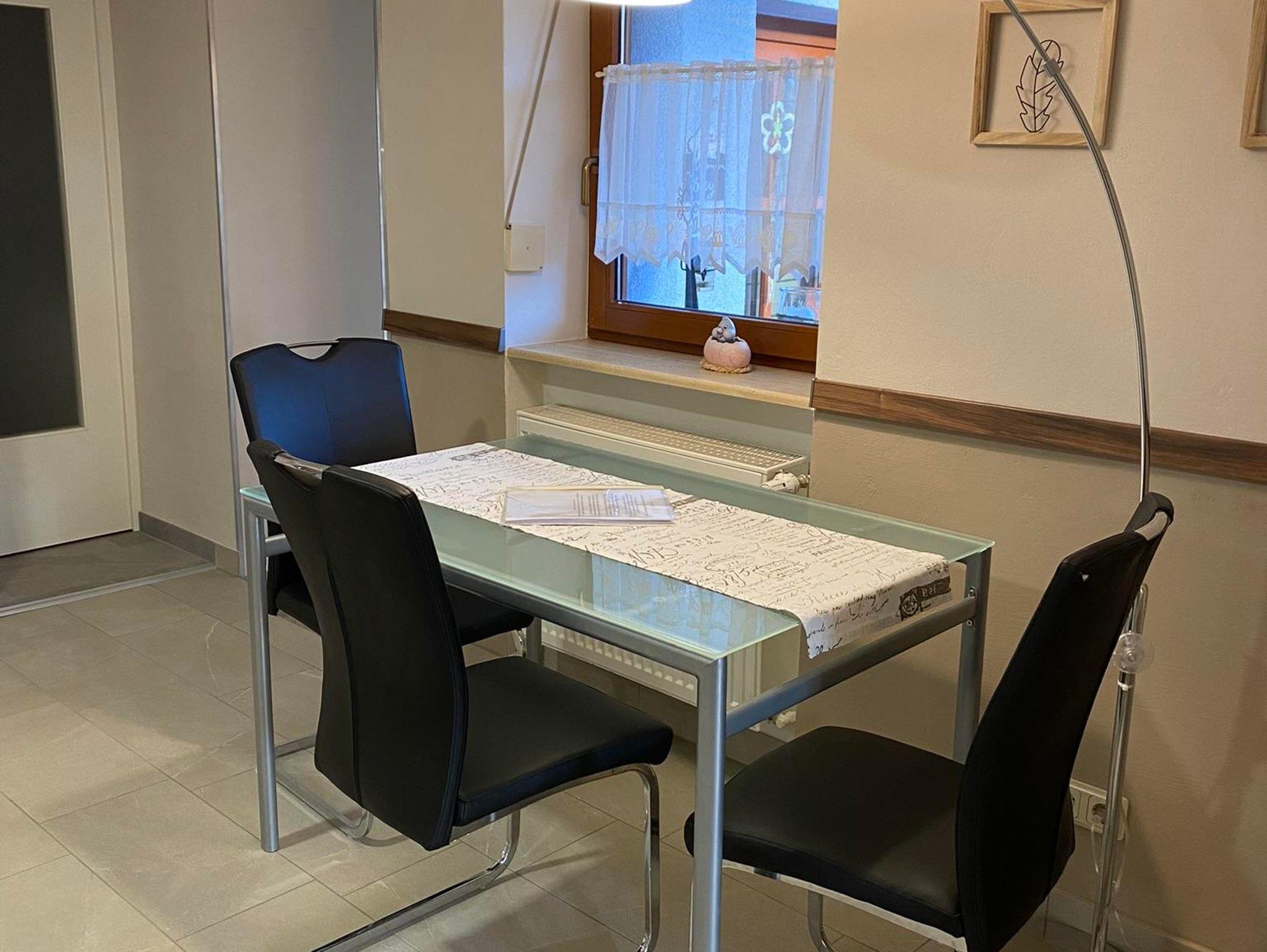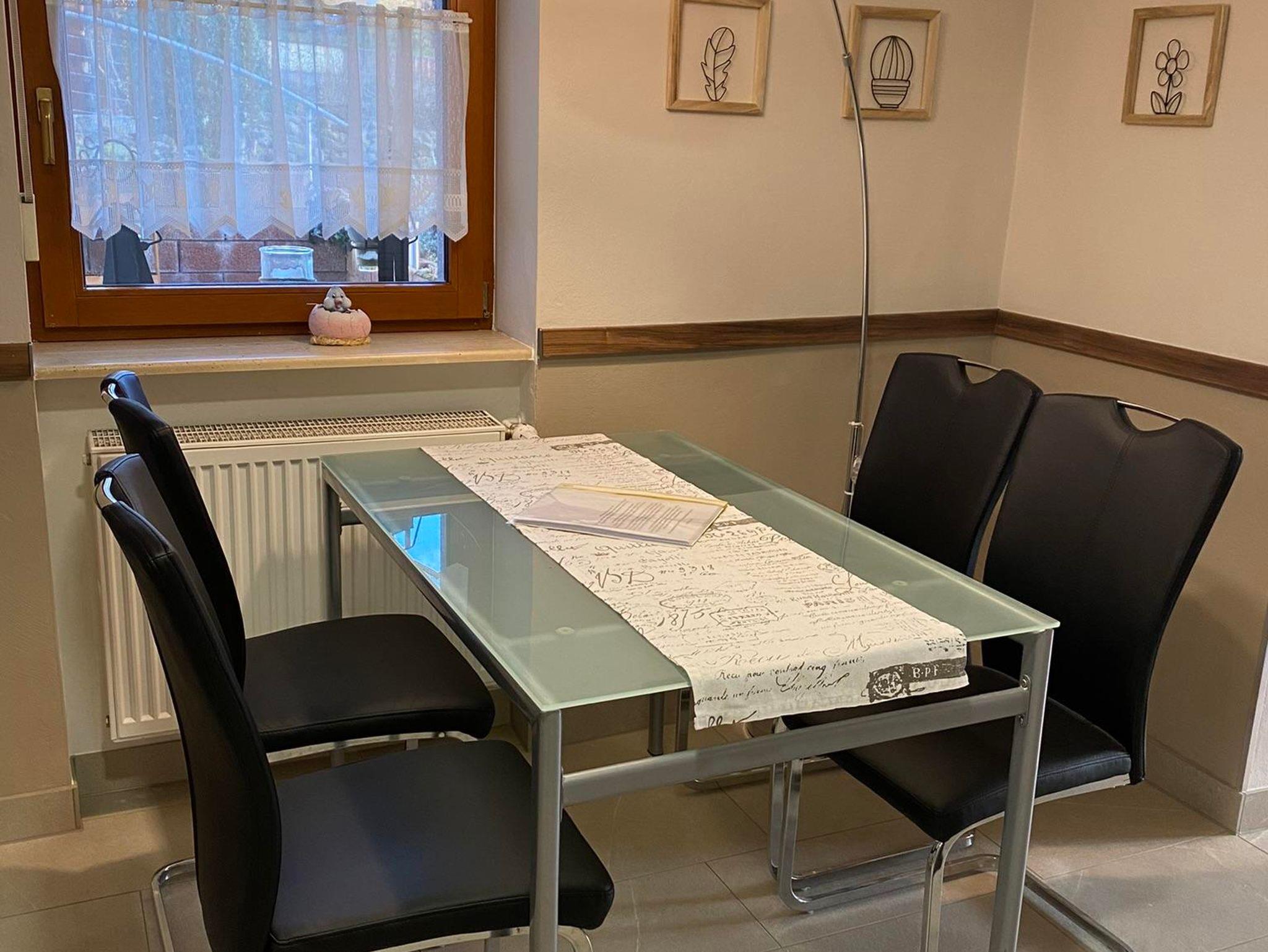 Die moderne Ferienwohnung im Erdgeschoss bietet Ihnen auf 57 Quadratmetern mit offenem Küchen-, Ess- und Wohnbereich ein gemütliches Zuhause auf Zeit. Im Schlafzimmer ist das Doppelbett frisch bezogen, bei längerem Aufenthalt ist Bettwäsche zum Wechseln vorhanden. Im Wohnzimmer kann die gemütliche Couch mit wenigen Handgriffen zu einer weiteren Schlafmöglichkeit für bis zu 2 Personen umgebaut werden. Bei einer Liegefläche von 1,40 m Breite können hier sogar zwei Personen kuscheln. Bettwäsche, Kissen und Decken sind vorhanden. Die komplett eingerichtete Küche lädt zum selber kochen oder backen ein und ist ausgestattet mit allem, was man für bis zu 4 Personen so braucht. Im neuen Bad verwöhnt Sie neben Waschbecken, Urinal und WC eine geräumige, ebenerdig begehbare Regendusche. Ausreichend Hand- und Duschtücher so wie ein Fön sind vorhanden. Ein kleiner Abstellraum hält eine Waschmaschine sowie diverse Geräte vom Bügelbrett bis zum Staubsauger bereit. Kostenfrei sind Internetzugang, jegliche Wäsche, PKW-Parkplatz, Unterstellmöglichkeiten für Fahr- oder Motorräder in abgeschlossener Garage, Mitbenutzung von elektr. Abluft-Wäschetrockner und Gefriermöglichkeit im nur wenige Schritte entfernten Gartenhaus, einem Holzkohlengrilll und dem original saarländischen Schwenker (Feuerholz vorhanden).