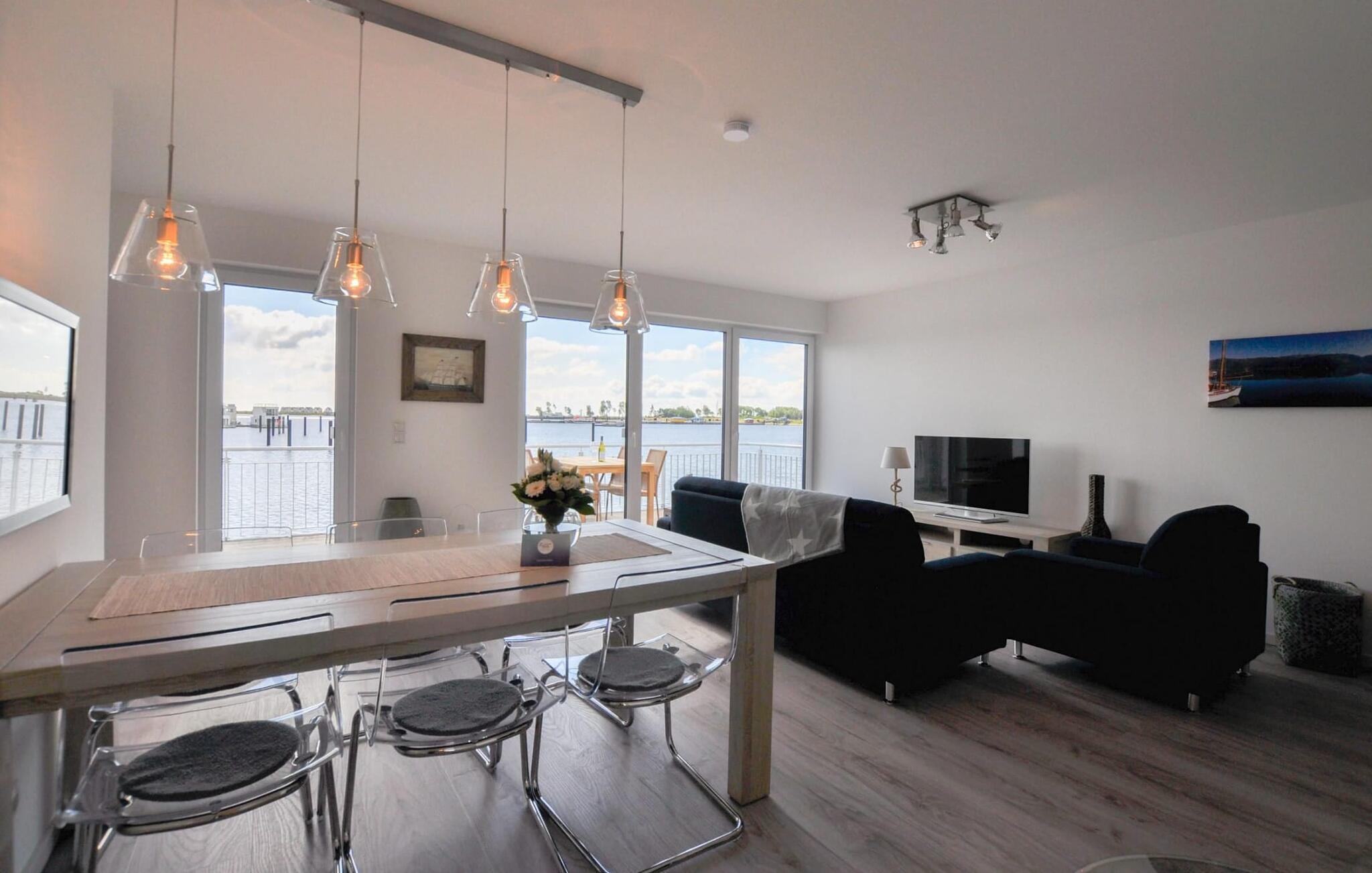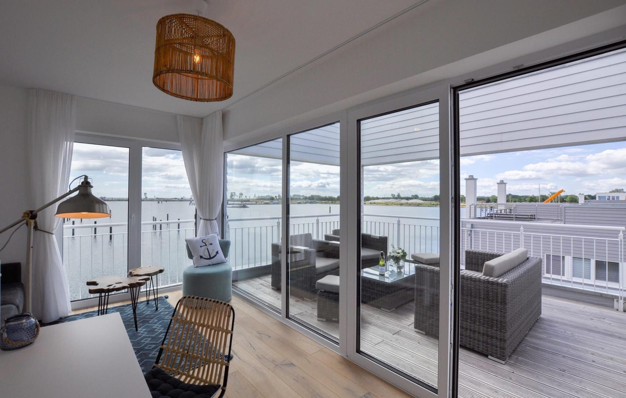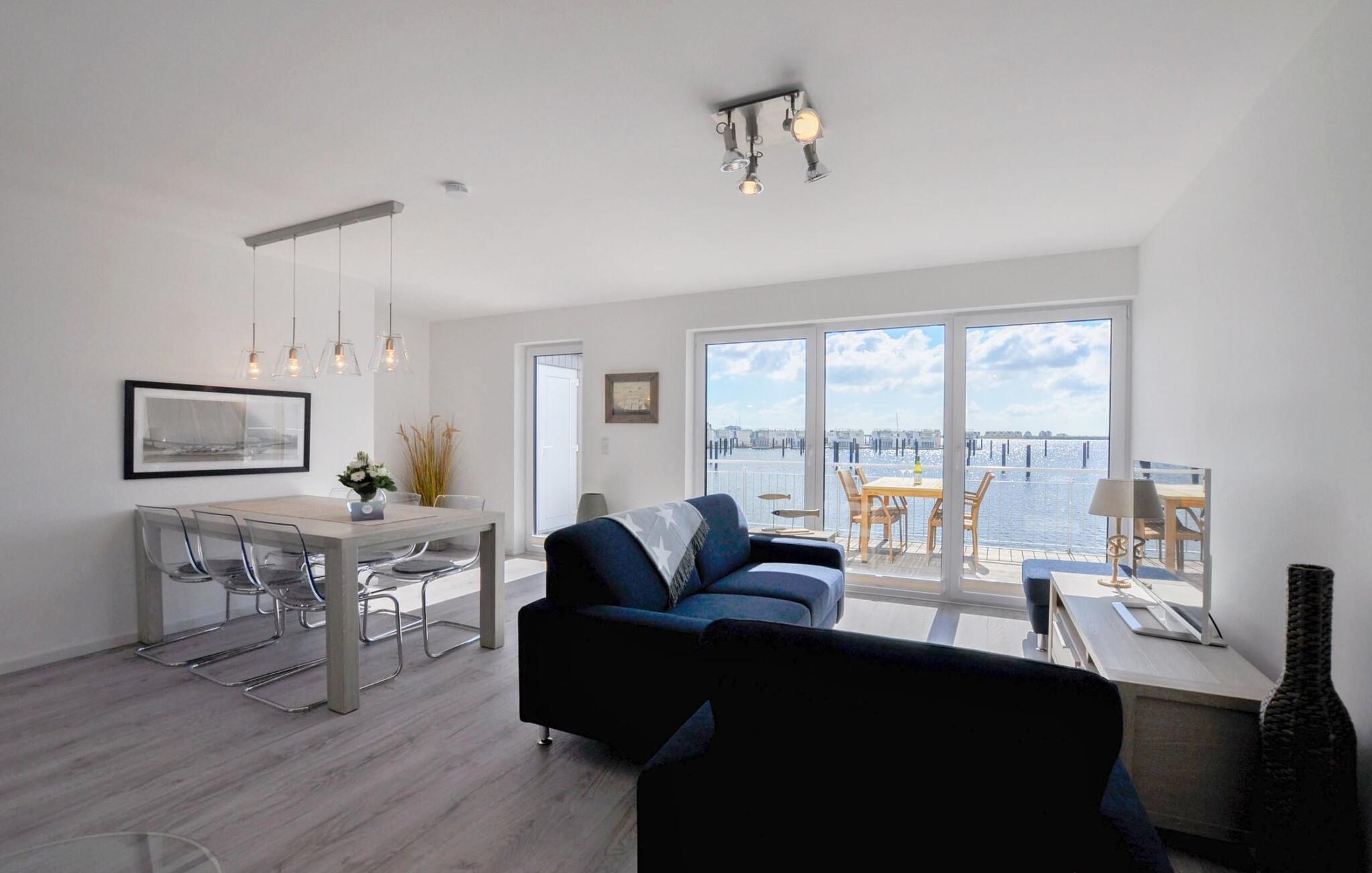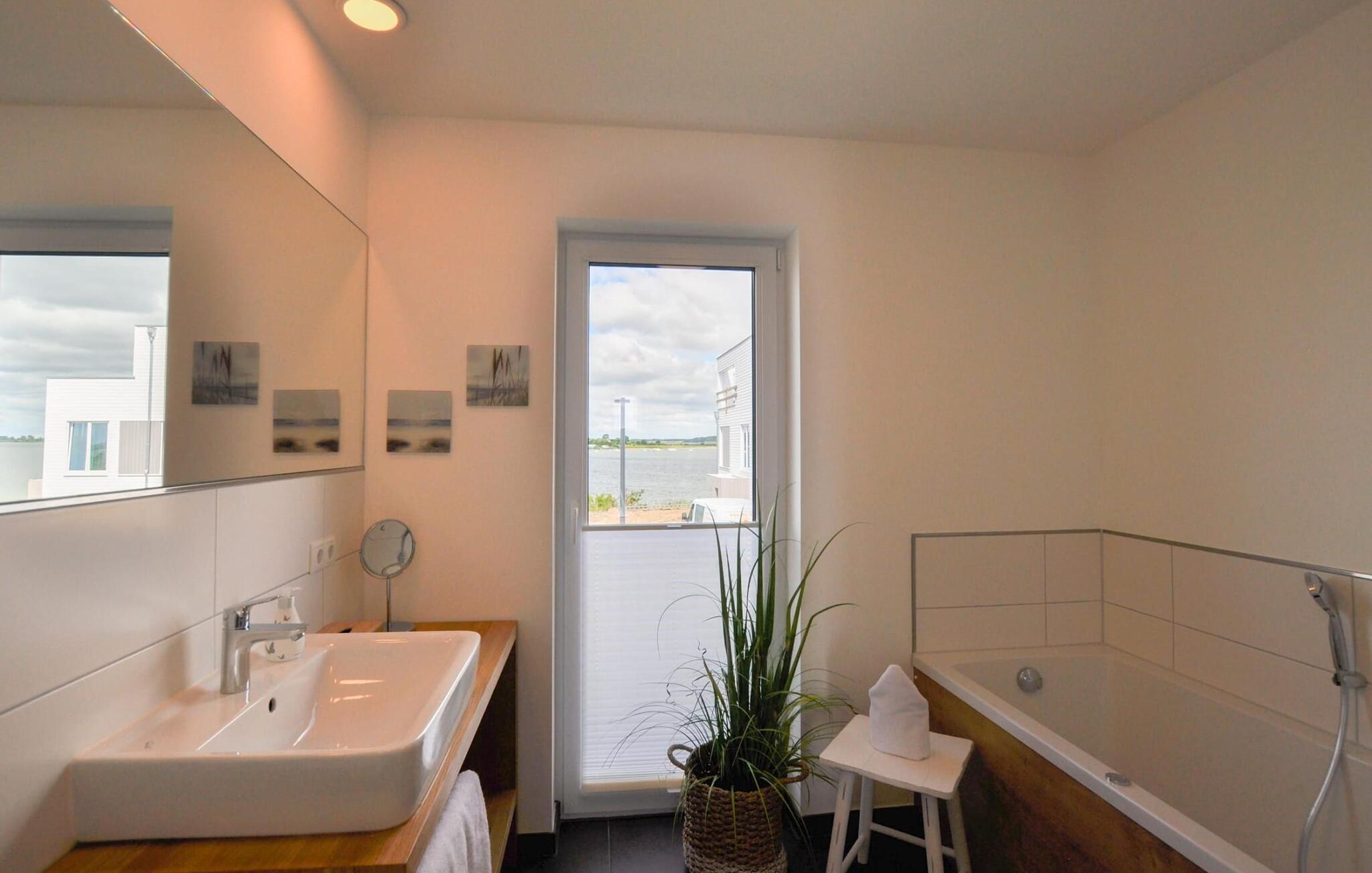Das moderne, stilvoll eingerichtete Ferienhaus Nantucketunmittelbar an der Marina auf der Westmole des Ostseeresort Olpenitz gelegen und mit Blick auf die Schleimündung bietet mit gelungenen Akzenten eine Prise neuenglischen Flairs. Durch einen separaten Eingangsbereich gelangt man in den großzügigen Wohn- /Essbereich mit bodentiefen Fenstern und Zugang zur großen Terrasse mit Vollausblick auf die Marina. Der Wohnbereich bietet innen und außen oder am gemütlichen Kaminofen viel Raum für das Zusammensein über den ganzen Tag. Die