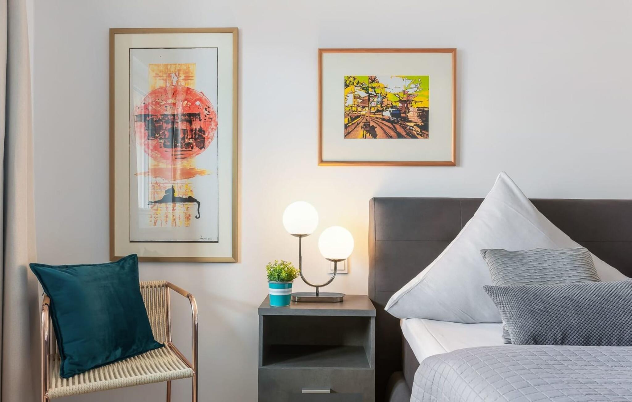 Erholsamen Schlaf findet ihr im gemütlichen Schlafzimmer mit einem komfortablen Boxspringbett (180 x 200 cm). TV-Wandgerät, Kleiderschrank und weitere feine Komponenten ergänzen den Schlafbereich.