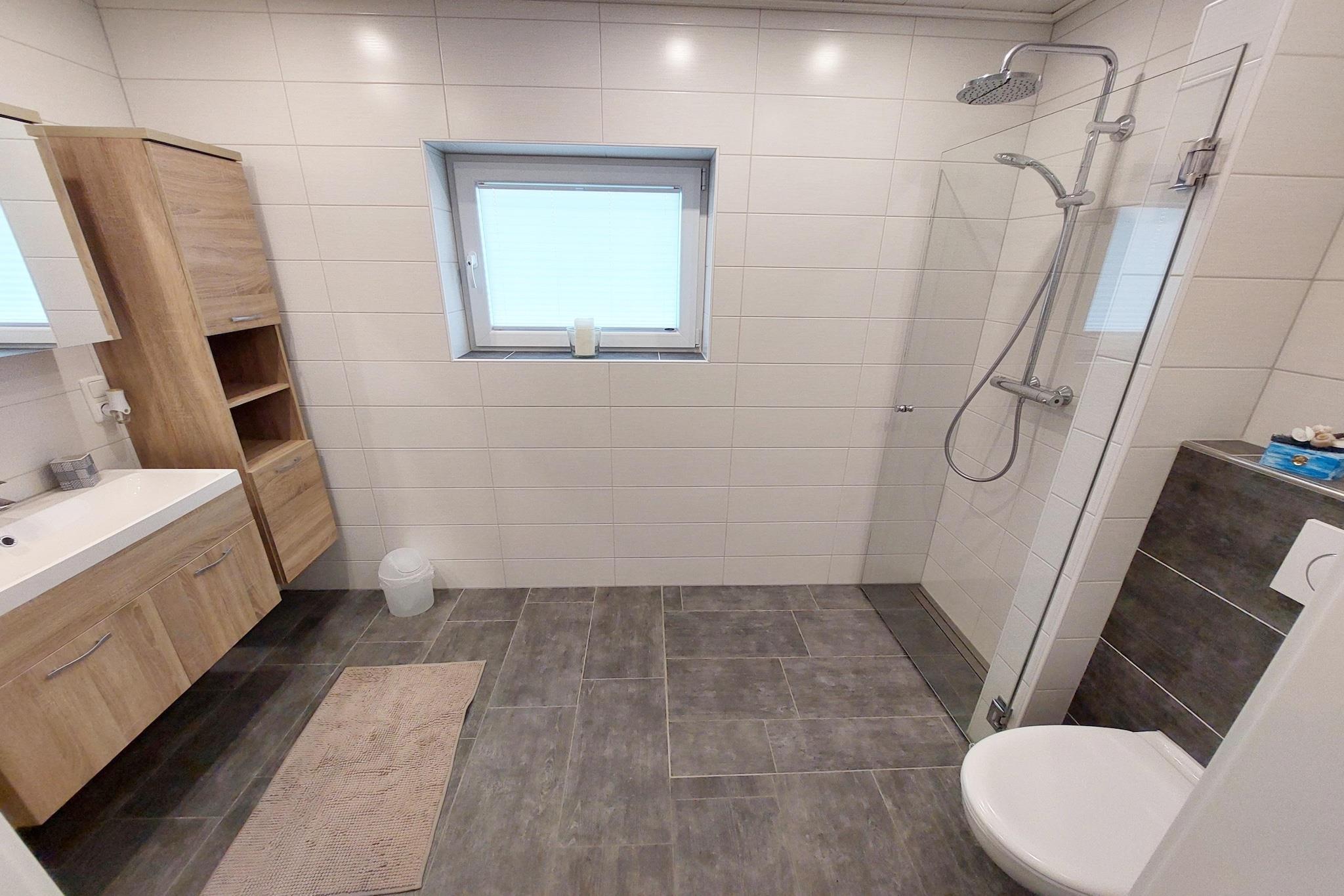 Ground floor: (Kitchen(electric kettle, toaster, cooker, coffee machine, oven, dishwasher, fridge-freezer, Blender), Living/diningroom(TV, dining table, seating area), bedroom(double bed(boxspring)), bathroom(shower, washbasin, toilet)) On the 1st floor: (bedroom(double sofa bed), bedroom(double bed(boxspring)), bathroom(shower, washbasin, toilet, hairdryer)) fireplace, washing machine, terrace, garden furniture, parking, Laundry Package for a fee