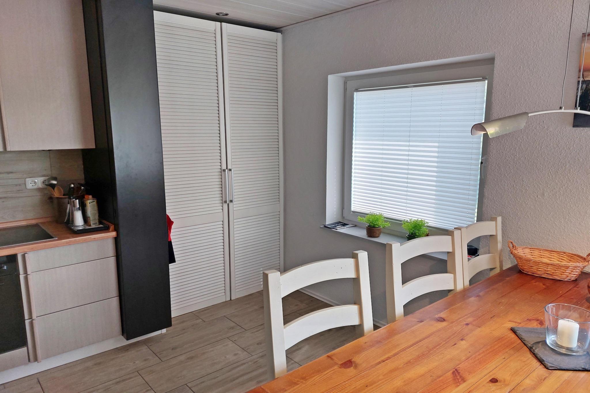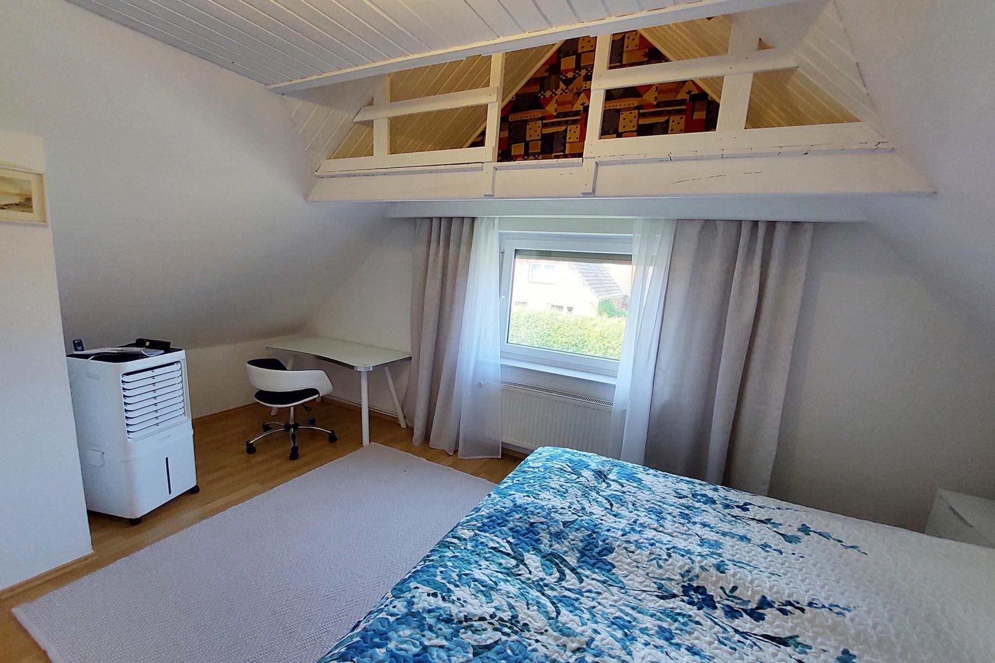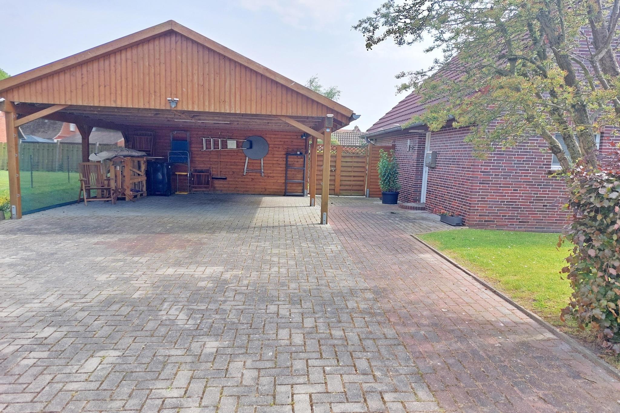 The bright entrance area leads you into the combined living and dining area. The kitchen is equipped with everything you need for your stay. There is also a fireplace here and access to the terrace. There is also a bedroom with a box spring bed on the ground floor and a bathroom with toilet and a walk-in shower. There are two more bedrooms on the upper floor; one of them has another box spring bed, and the second bedroom has a sofa bed, which also offers space for 2 people. The house is therefore suitable for 4 - 6 people. There is also another bathroom with toilet and shower on this floor. You are also welcome to bring your dog, the garden is surrounded by a thick hedge. There is also a spacious carport for your car. The house is located in a quiet settlement in the Nesse district and the Neßmersiel beach is about 4.5 km away. Highlights: WiFi, consumption-dependent energy costs included, pets allowed Note: Linen package can be booked on site