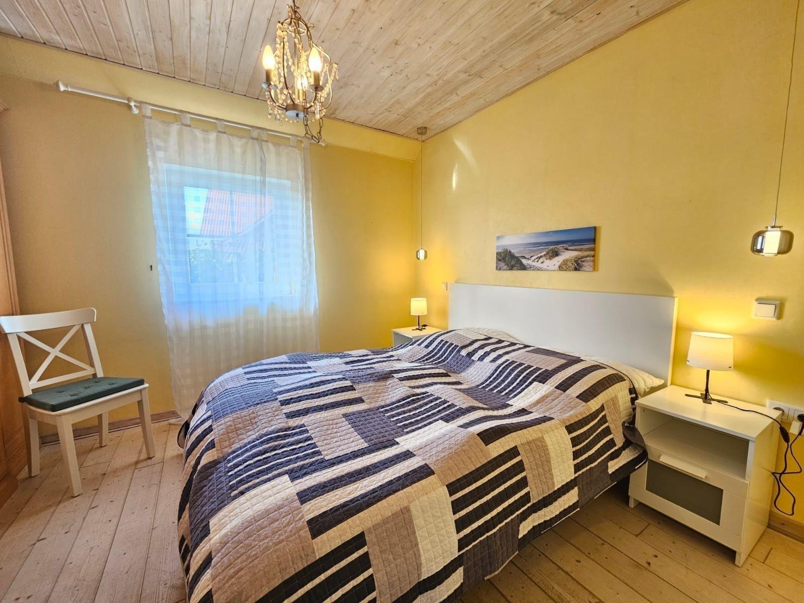 Die Ferienwohnung bietet eine großzügige und allergikergeeignete Unterkunft mit drei gemütlichen Schlafzimmern, ausgestattet mit je einem Doppelbett. Die offenen Wohnräume schaffen eine einladende Atmosphäre, während die moderne Küche mit Geschirrspüler, Elektro- und Gasherd, Backofen, Kühlschrank sowie einer Kaffeemaschine und einem Toaster für kulinarische Freiheit sorgt. Ein Esstisch bietet Platz für gemeinsame Mahlzeiten. Für zusätzlichen Komfort stehen zwei Badezimmer zur Verfügung, eines davon mit einer Badewanne und einem Fenster. Der Kamin sorgt in kälteren Monaten für wohlige Wärme. Zur Ausstattung gehören zudem WLAN, ein TV, eine Waschmaschine und ein Kinderhochstuhl. Für entspannte Tage im Freien steht ein Sonnenschirm bereit, und ein Parkplatz ist direkt am Haus verfügbar. Ein Starterset mit Seife, Duschgel und Toilettenpapier rundet das Angebot ab.