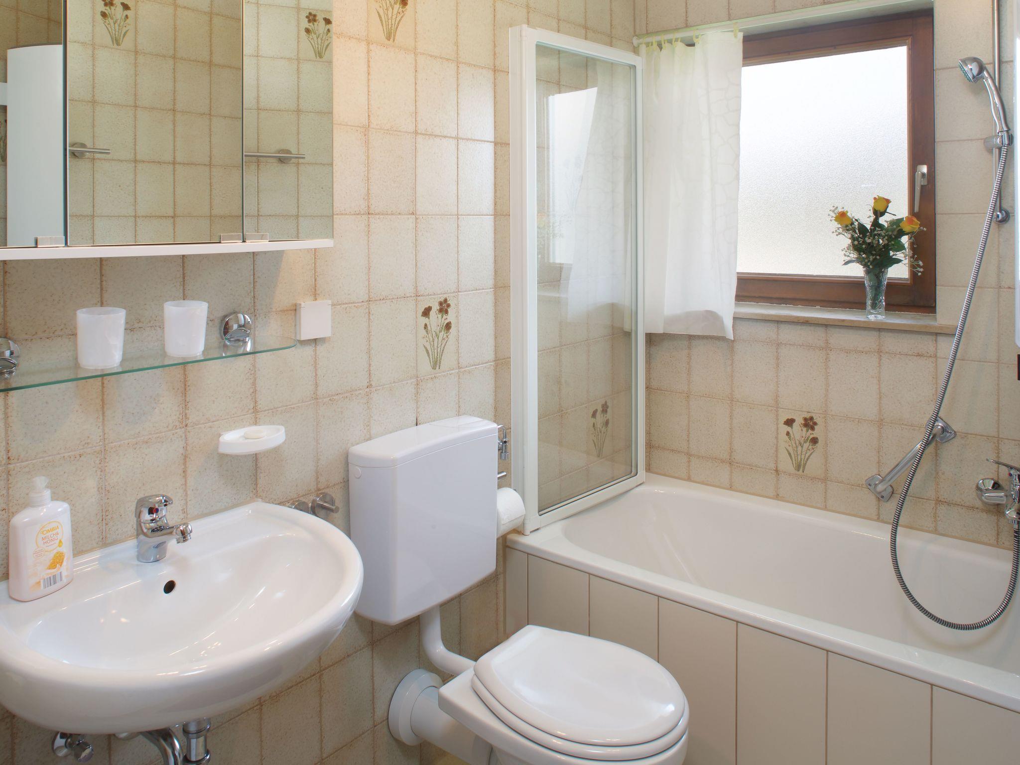 In front of the living room you will find a beautiful balcony facing south/west with an unobstructed view of the mountains. A table, chairs and electric barbecue are available. You will find a car parking space directly at the house. A bicycle and ski storage room is also available in the house. A washing machine (for a fee) and a drying room can also be used.