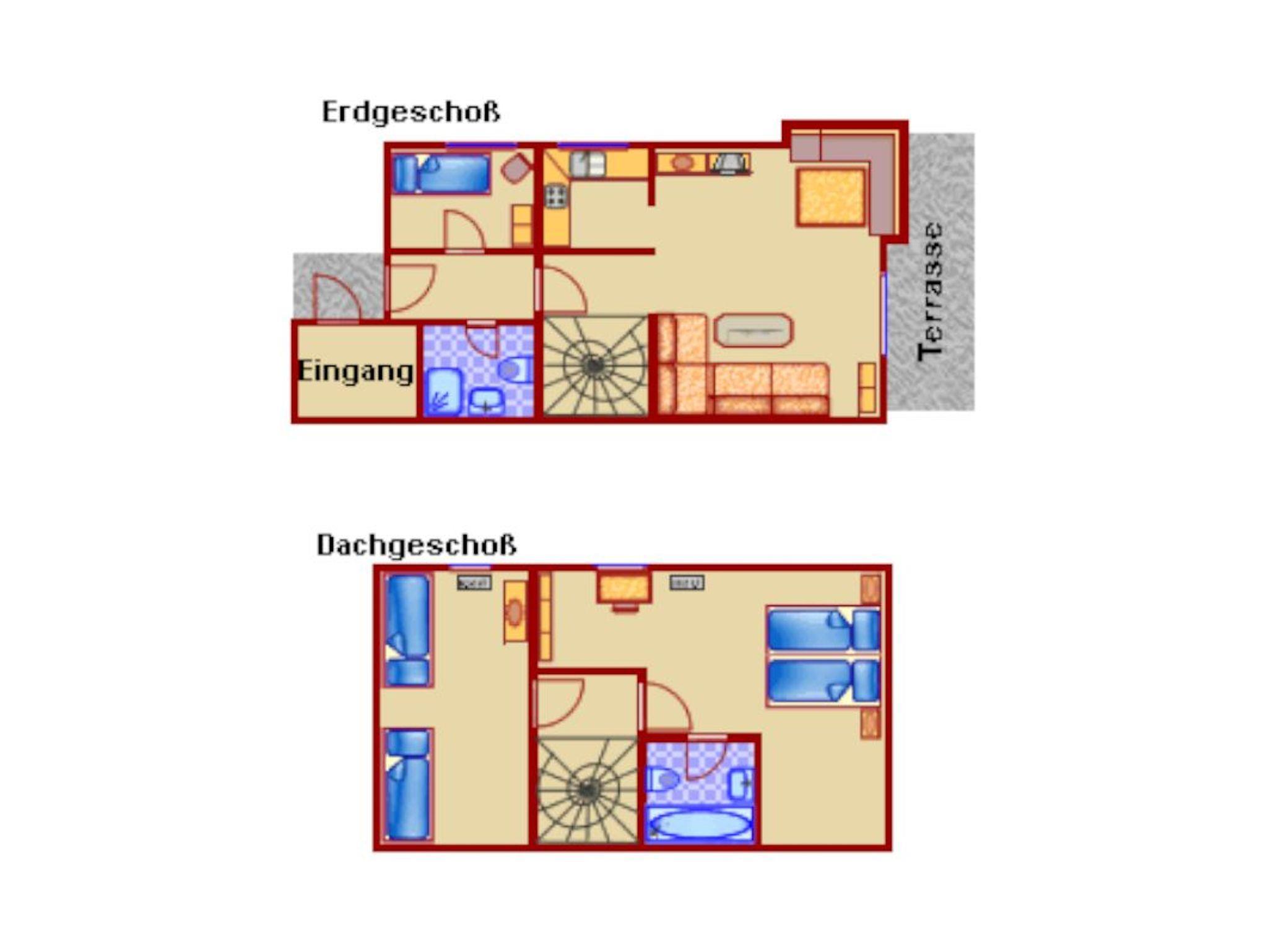 Erdgeschoss: Großzügiger Ess- und Wohnbereich mit gemütlicher Essecke und großer Eckbank im sonnigen Erker. Die geräumige Sitzecke mit Couchgarnitur lädt zum gemütlichen Fernseh-, Spiele- oder Leseabend ein. Kabelfernsehen, Internetzugang (auch über WLAN) stehen zur Verfügung. Die separate Küche ist mit einer neuen Einbauküche komplett ausgestattet (inklusive Geschirrspülmaschine). Im Eingangsbereich befindet sich die Garderobe, WC mit Dusche, ein großer Einbauschrank sowie der Zugang zum Einbett-Gästezimmer.
