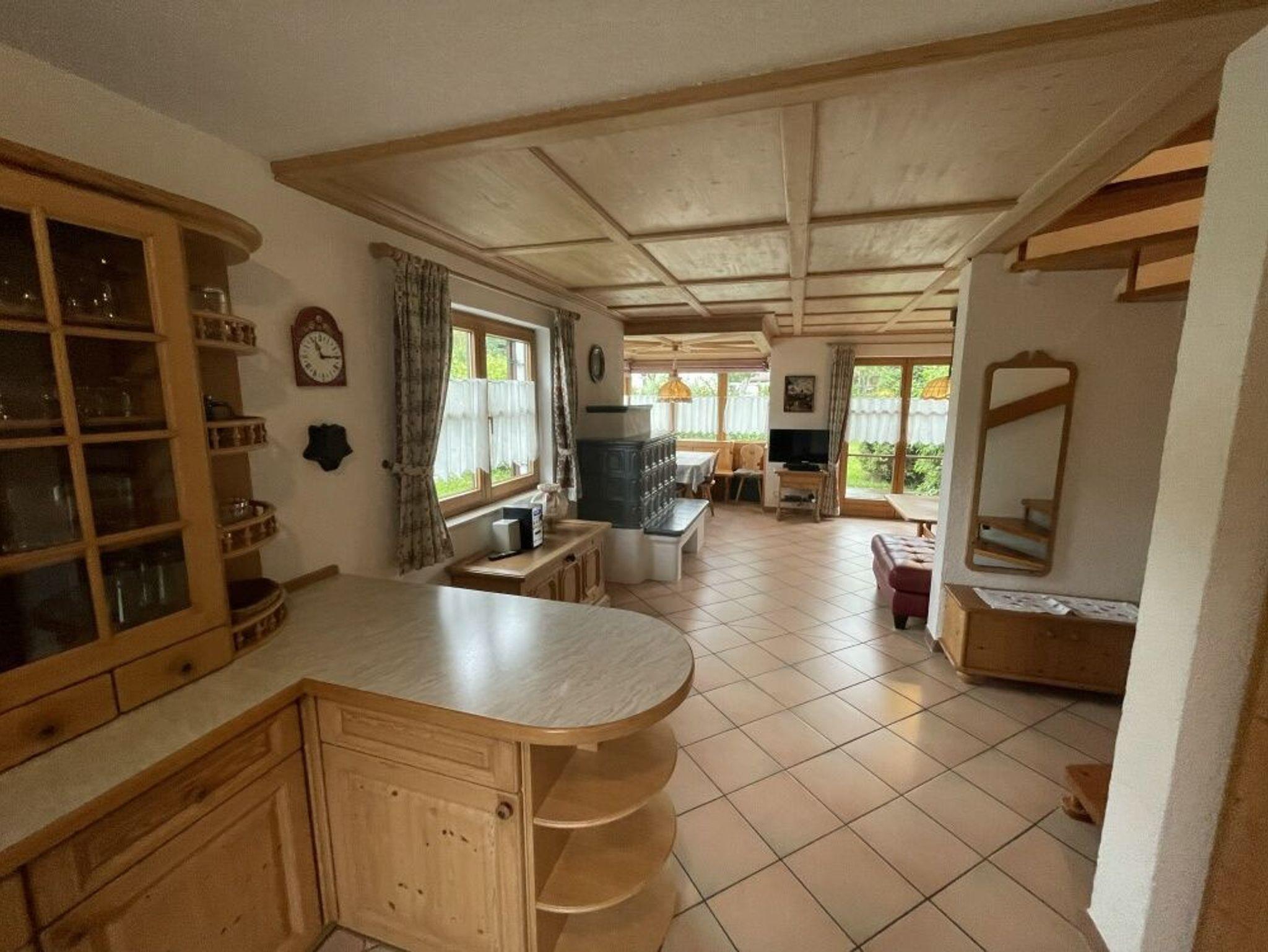 Ausstattung: Helle Küche mit Spülmaschine, Mikrowelle, Cerankochfeld, Backofen und Kaffeemaschine, offen zum großzügigen Wohn- und Essbereich. Die Essecke im sonnigen Erker und eine Couchgarnitur für fünf Personen sorgen für komfortables Wohnen. Kabelfernsehen mit Full-HD-Flat-TV, Stereoanlage und Kinderhochstuhl sind vorhanden. Der Garten mit Südterrasse ist mit Gartenmöbeln und Liegen ausgestattet und bietet freien Blick auf die Allgäuer Berge. Im Obergeschoss befinden sich zwei Schlafzimmer sowie ein renoviertes Bad mit Dusche und WC, zusätzlich gibt es ein separates WC im Erdgeschoss. Eine Waschmaschine ist vorhanden. Das rechte Schlafzimmer ist mit Doppelbett und TV ausgestattet, ein Kinderbett kann ergänzt werden. Das linke Schlafzimmer verfügt über drei Einzelbetten, zwei davon als Doppelbett kombinierbar. Beheizt wird mit elektrischem Kachelofen im EG und Nachtspeicheröfen in den Zimmern. WLAN mit ca. 55 Mbit/s ist verfügbar. Haustiere sind erlaubt.