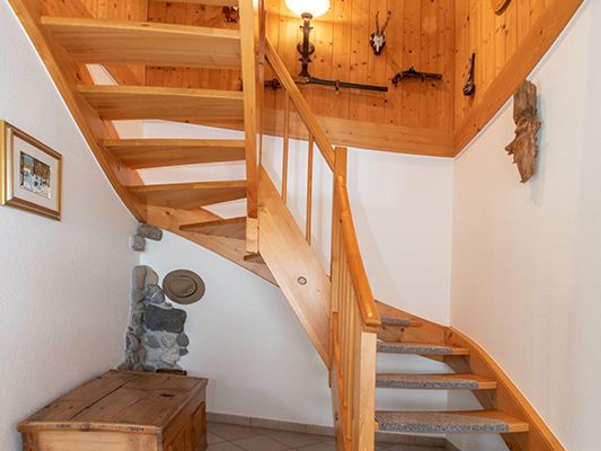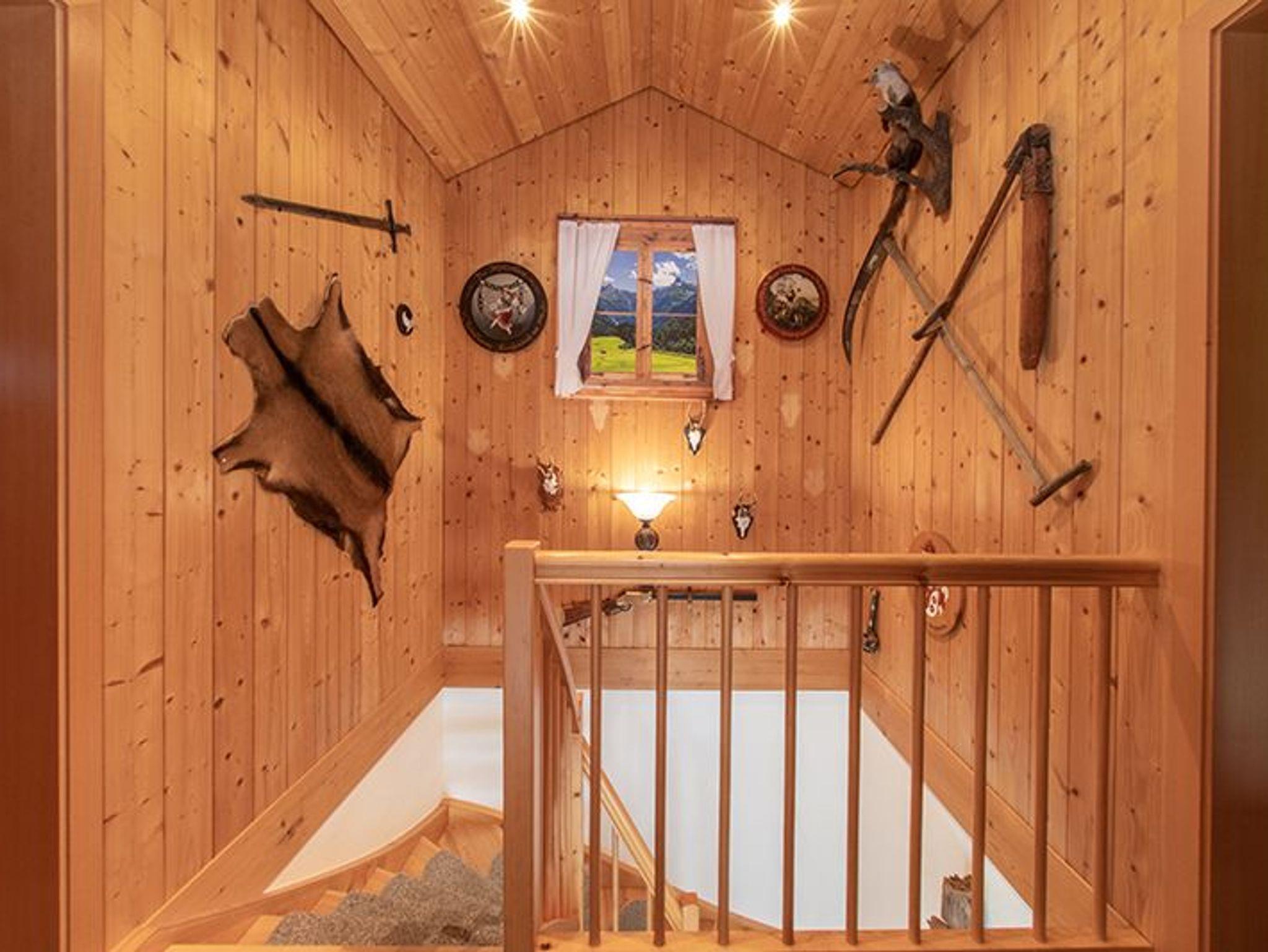 Dieses Ferienhaus in Holzbauweise bietet eine besonders behagliche Atmosphäre. Die integrierte Sauna mit Panoramafenster (gegen Aufpreis) macht auch wetterunabhängige Urlaubstage zum Erlebnis. Im Obergeschoss befinden sich zwei Schlafzimmer mit Doppelbetten sowie ein Badezimmer mit Duschkabine. Das Erdgeschoss umfasst ein Gäste-WC, eine gut ausgestattete Küche sowie einen offenen Wohnbereich mit großer Sitzecke, Sofa, Fernseher und Internetzugang. Von hier führt der Zugang zur möblierten Terrasse, die durch den überdachten Glasfreisitz bei jedem Wetter nutzbar ist. Eine zusätzliche neu gestaltete Terrasse mit Blick auf die umliegenden Wiesen lädt zum Frühstück oder Nachmittagskaffee im Freien ein.