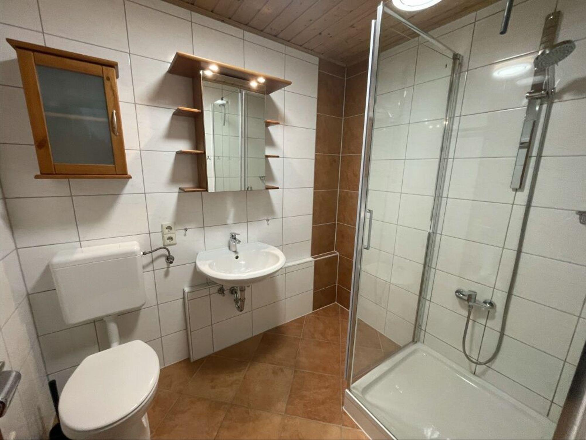 Neu renoviertes Badezimmer mit großer Dusche und WC