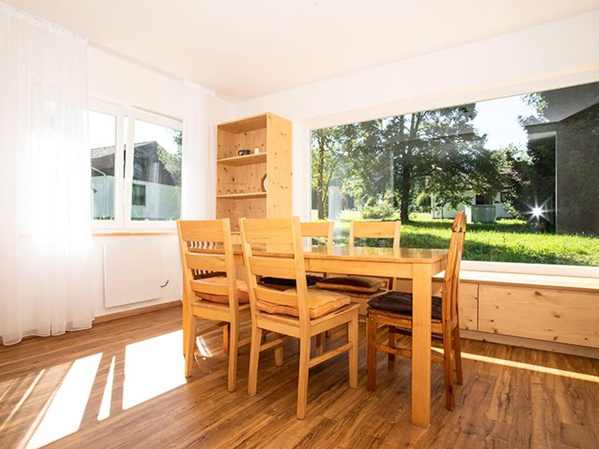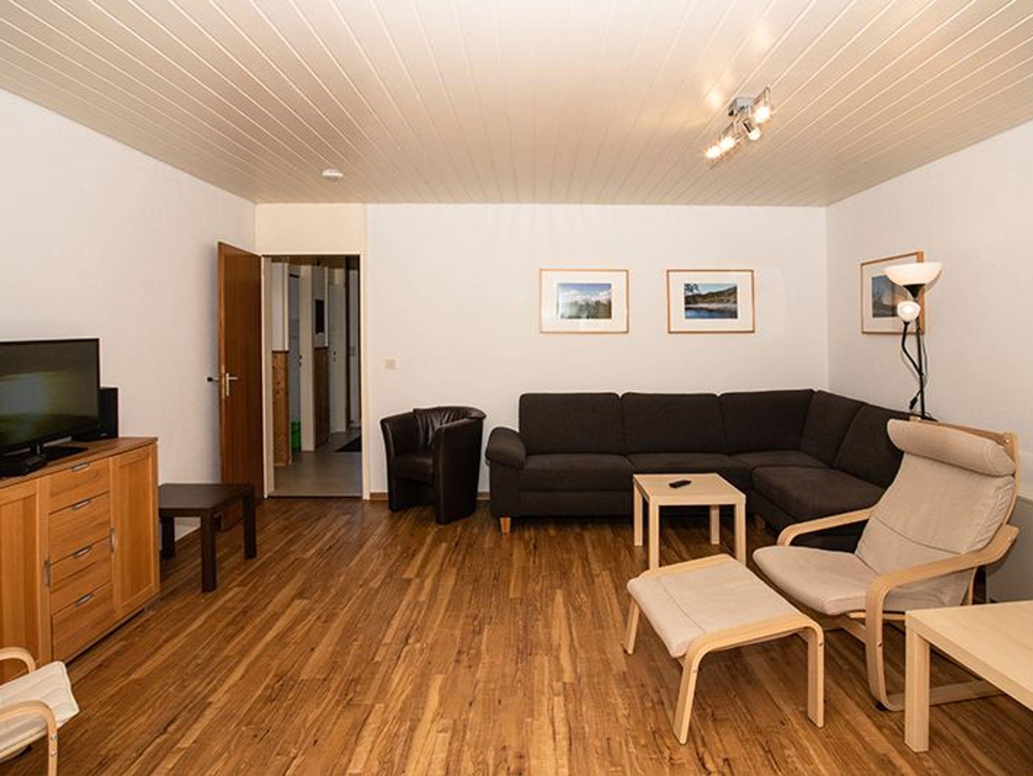 Das nach Süden ausgerichtete Wohnzimmer lädt mit einem Sofa und einem Essbereich für sechs Personen zum gemütlichen Essen und Zusammensein ein. Am Panoramafenster können Sie gemütlich in der Sonne sitzen und den Blick auf die Alpspitz genießen. Zu der Ausstattung gehören unter anderem ein Fernsehgerät und ein Radio/CD/MP3/USB Gerät.