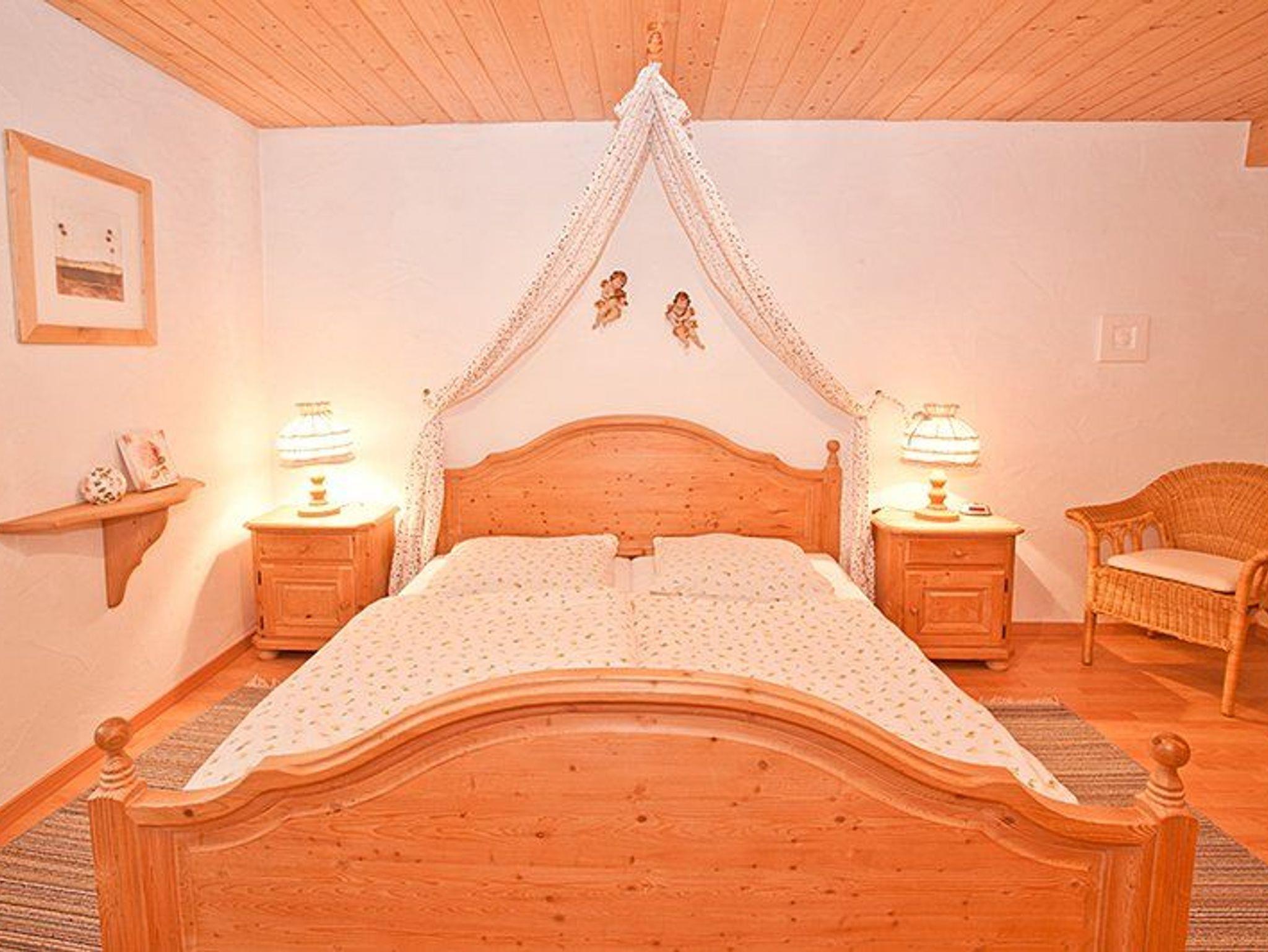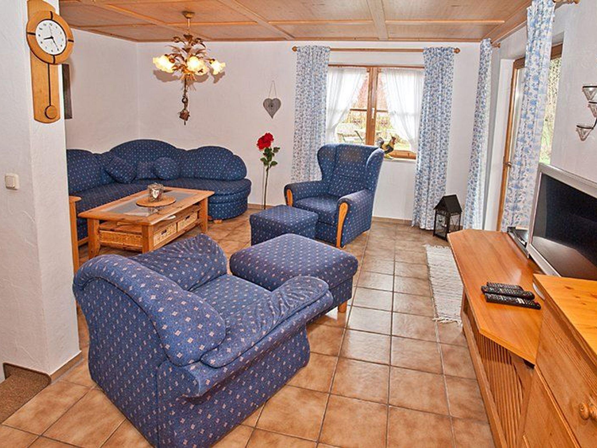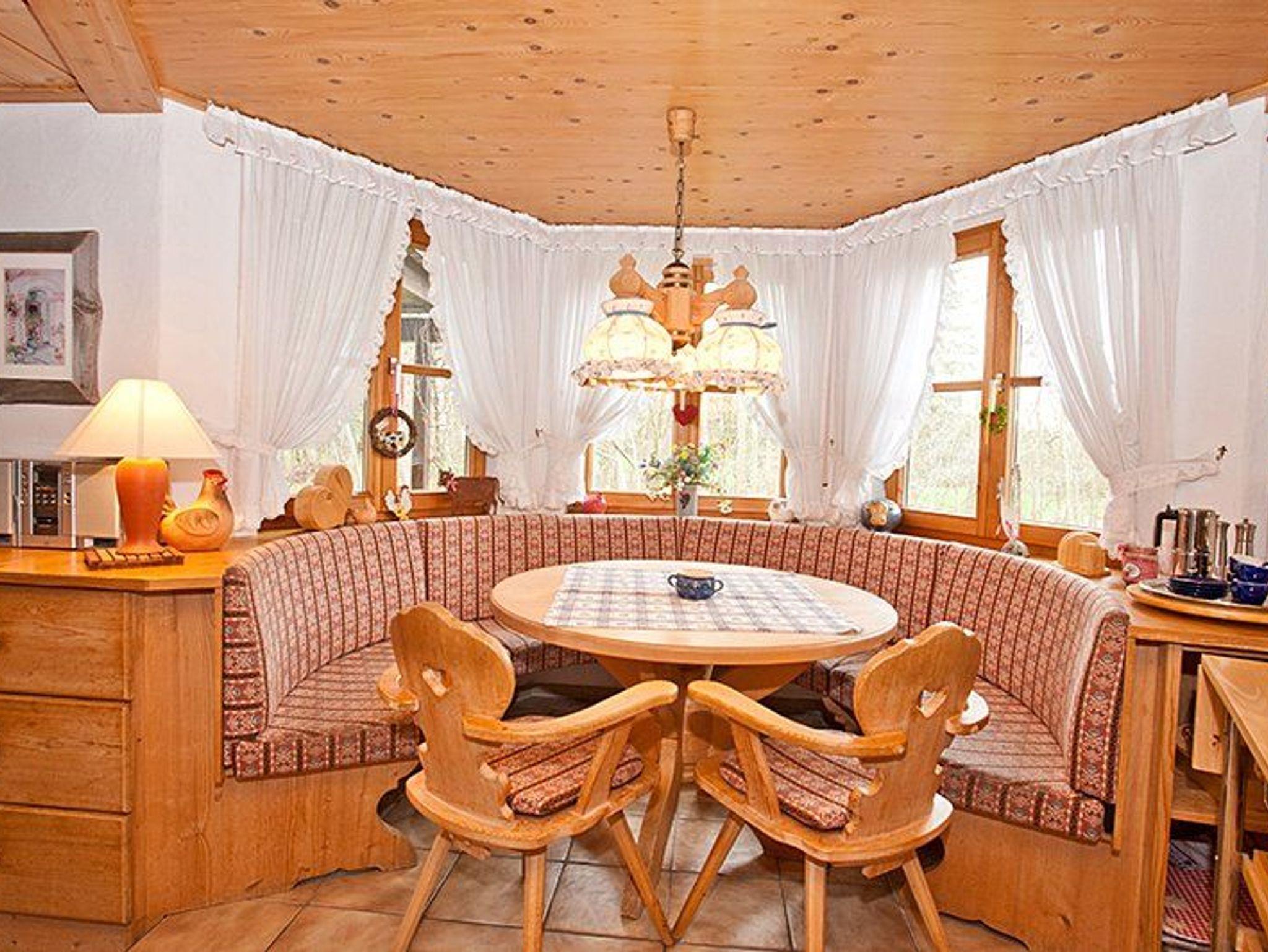 Im Erdgeschoss erwartet Sie eine gut ausgestattete Küche mit zusätzlichen Geräten wie einem elektrischen Fondue und Wok. Der sonnige Essbereich bietet einen Blick auf den Garten und den „Reichenbach“. Der angrenzende Wohnbereich lädt mit Sesseln, Sofa, TV und Gesellschaftsspielen zum Entspannen ein.