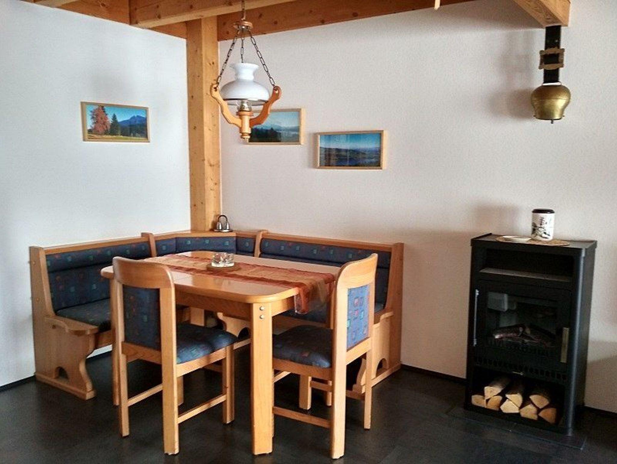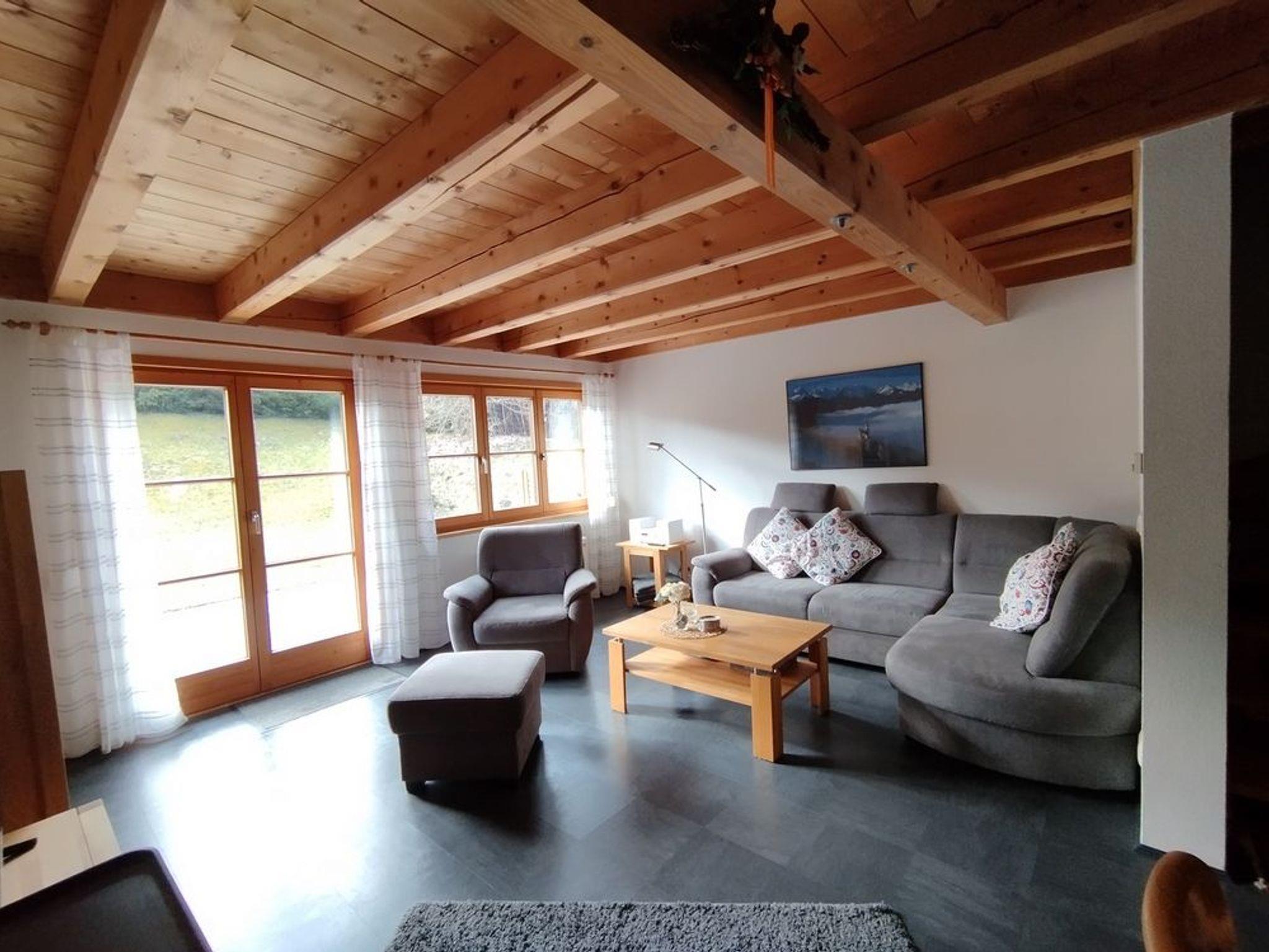Die Terrasse ist möbliert und bietet mit durch die Südlage einen freien Blick auf den Nesselwanger Hausberg - die Alpspitze. Zum Ferienhaus gehören außerdem ein Stellplatz sowie eine Garage.