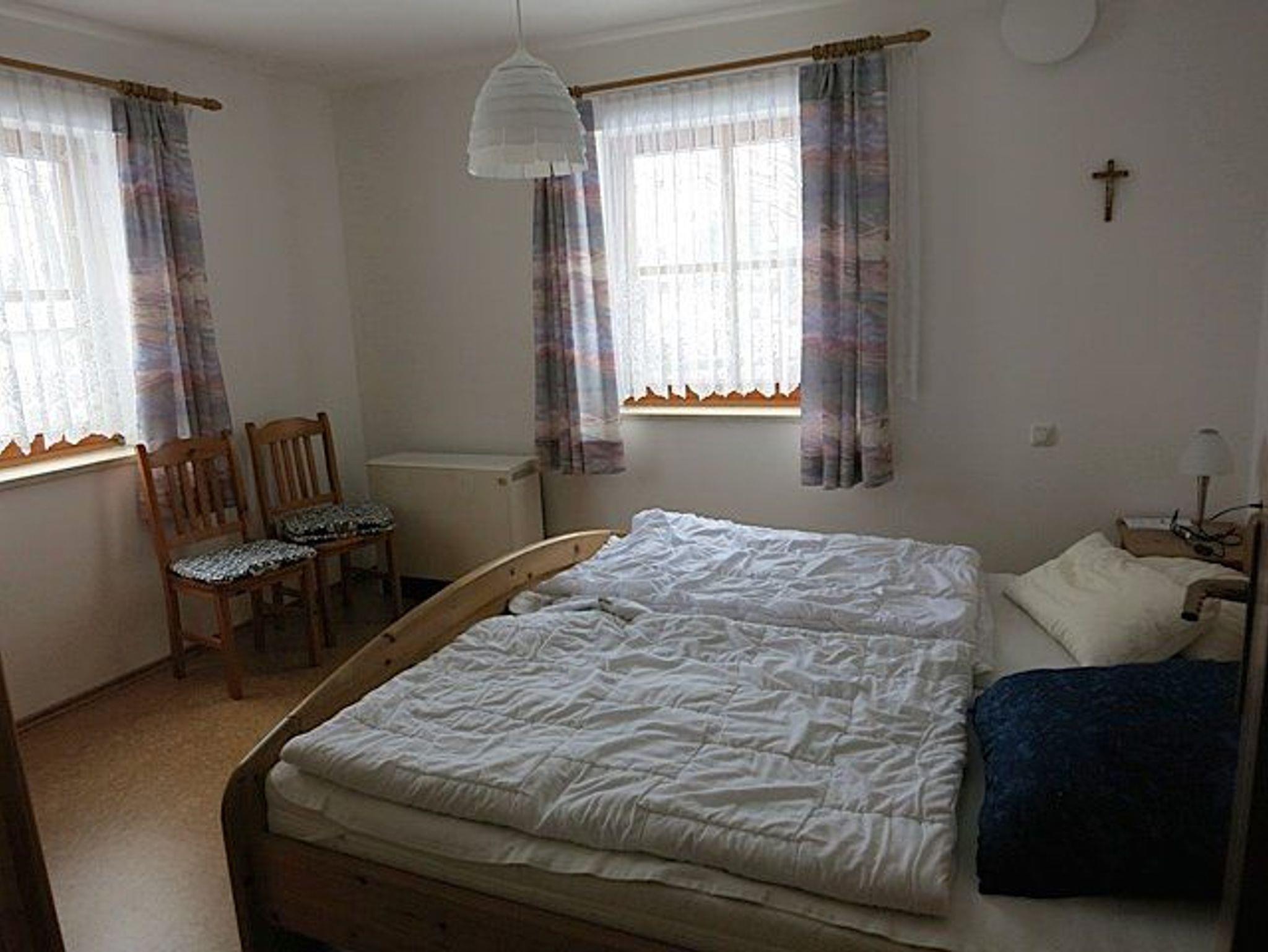 Die Ferienwohnung verfügt über ein Schlafzimmer mit Doppelbett und ein bequemes Schlafsofa im Wohnzimmer. Die gut ausgestattete Küche mit Spülmaschine und Kaffeemaschine lässt keine Wünsche offen. Auf der Terrasse können Sie entspannen und das Bergpanorama und die frische Luft genießen.