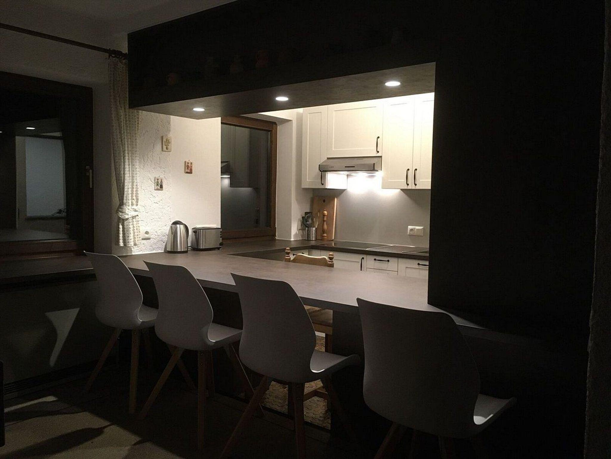 Das Herzstück des Hauses ist der großzügige Wohnbereich mit Panoramafenster und offener Küche mit Esstheke. Auf der Galerie lädt eine Kinoecke mit 49-Zoll-Fernseher und gemütlichem Sofa zum Entspannen ein, während auf der gegenüberliegenden Seite eine weitere Essecke mit Blick auf die Wiesen zum Verweilen einlädt.