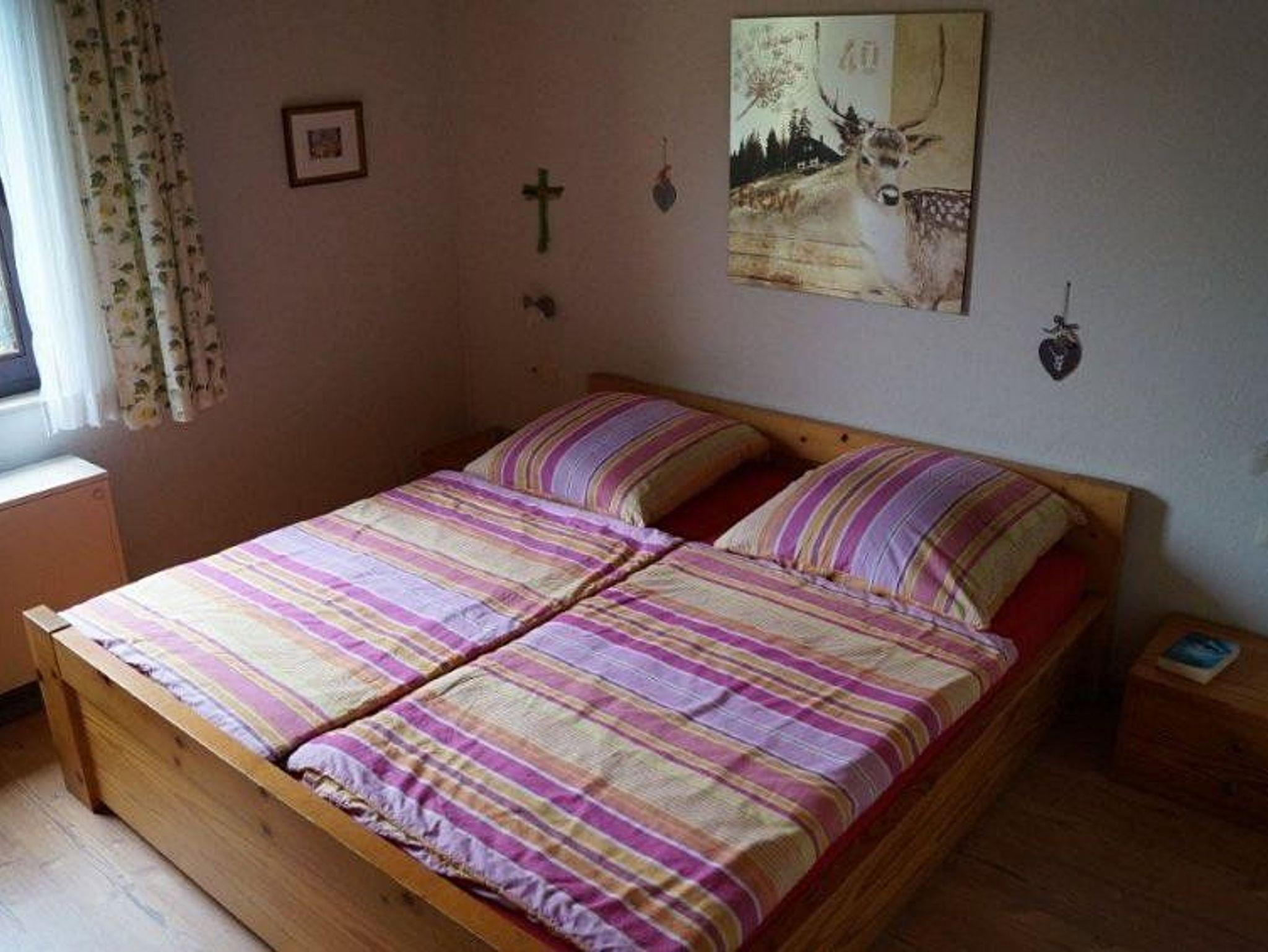 Im Schlafzimmer befinden sich ein Doppelbett, zwei Nachtschränke und ein Kleiderschrank. Auch ein Kinderbett kann zusätzlich aufgestellt werden.