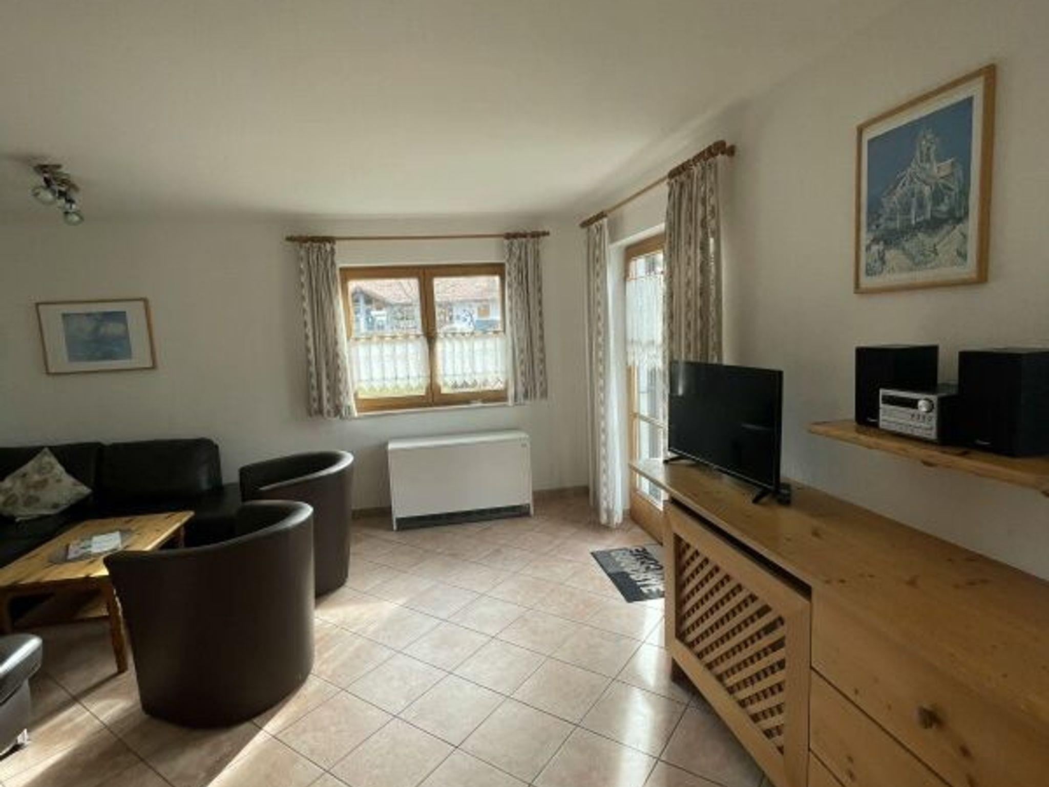 Das Ferienhaus erstreckt sich über drei Etagen und verfügt über eine umfangreiche Ausstattung. Im Erdgeschoss befinden sich eine gut ausgestattete Küche mit Spülmaschine, Mikrowelle, Cerankochfeld, Backofen und Kaffeemaschine sowie ein großzügiger Wohn- und Essbereich. Ein separates WC liegt im Eingangsbereich. Die Essecke ist in einem sonnigen Erker mit fest eingebauter runder Eckbank untergebracht. Das Wohnzimmer ist mit einer Ledersitzgarnitur über Eck und einem LED-Fernseher ausgestattet. Kabelfernsehen, Stereoanlage und eine nach Süden ausgerichtete Terrasse mit Gartenmöbeln sind ebenfalls vorhanden. Von dort besteht freier Blick auf die Allgäuer Berge wie Alpspitze, Buron, Reuter Wanne und Grünten. Die Beheizung erfolgt über Nachtspeicheröfen.