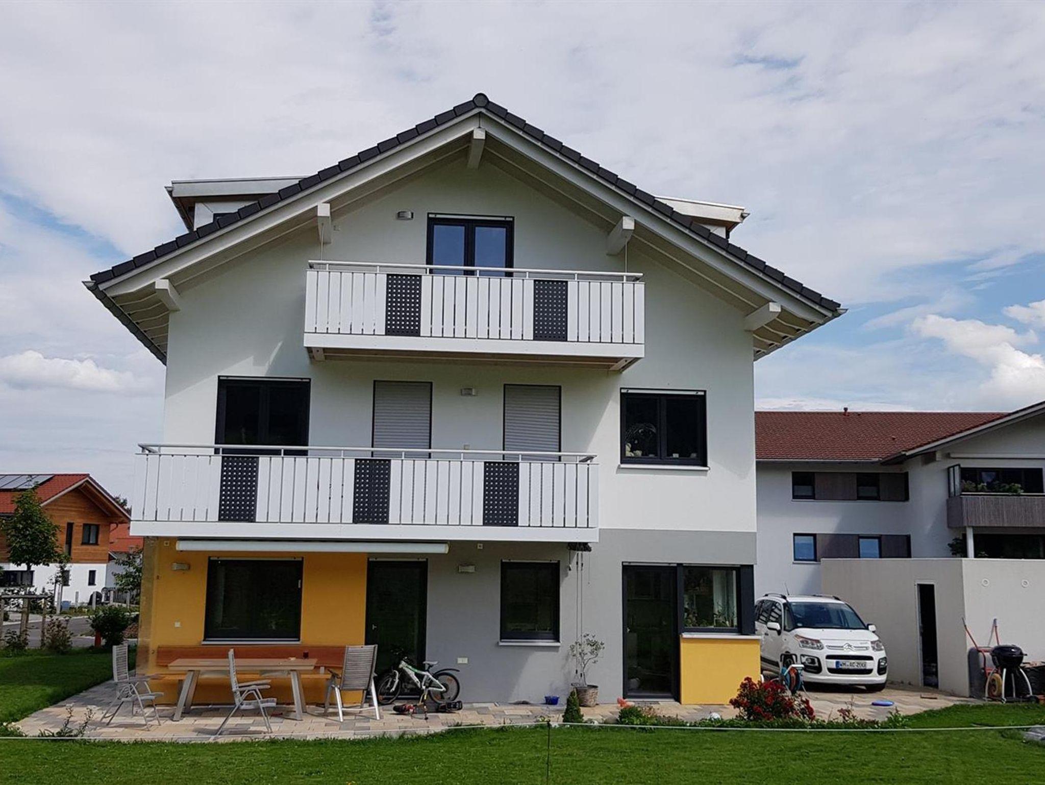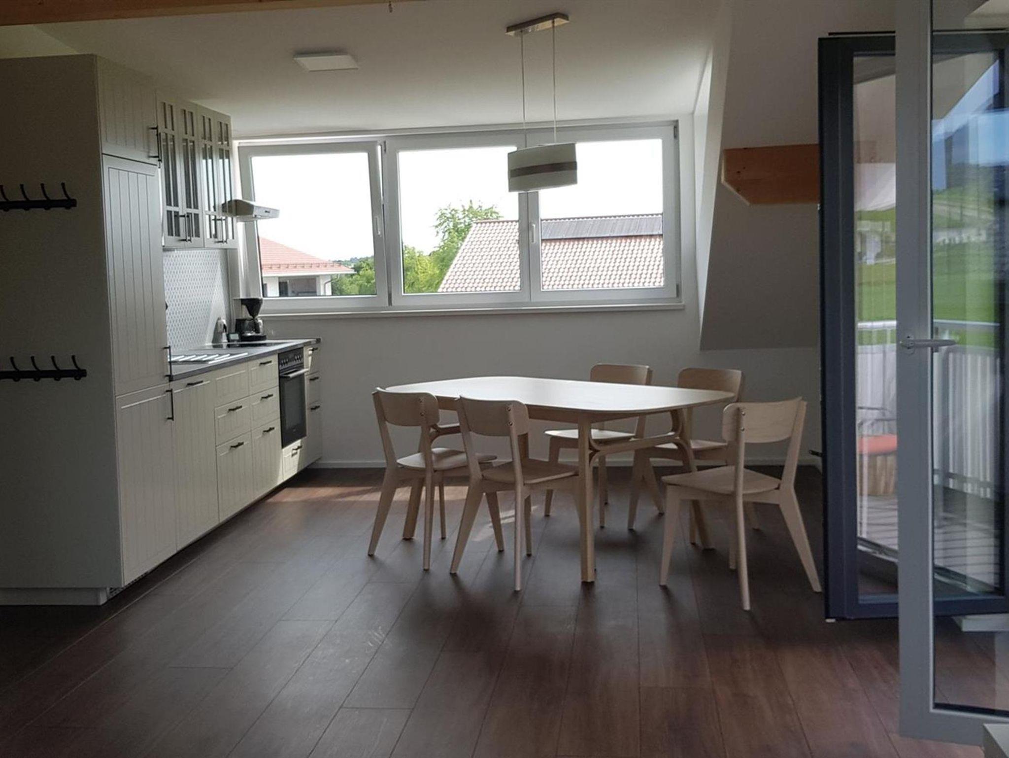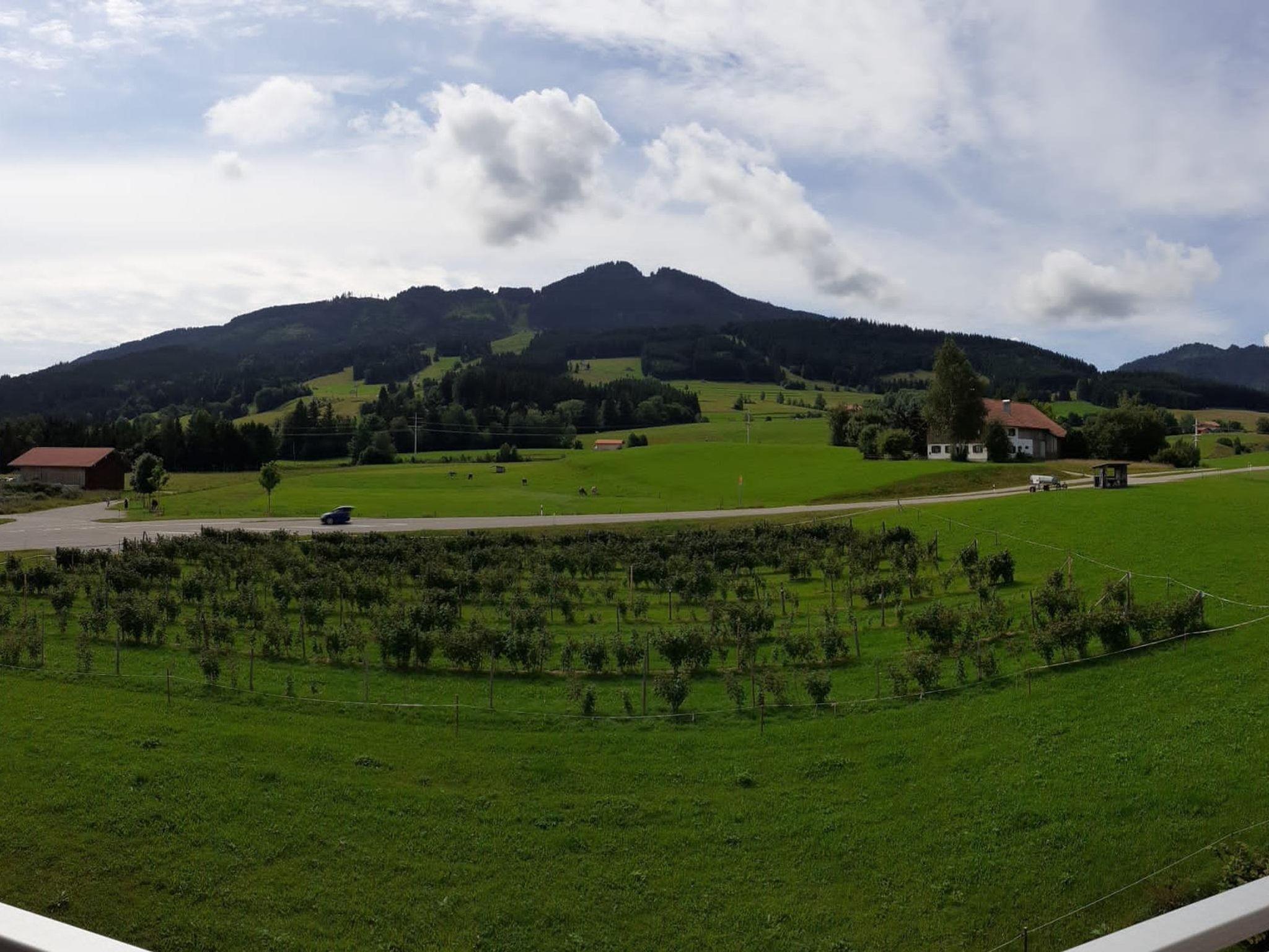Die Ferienwohnung Romila (ca. 61 qm) wurde 2021 fertiggestellt und befindet sich im Dachgeschoss unseres im Jahr 2018 neu gebauten Hauses. Sie ist ausgelegt für maximal 4 Personen und verfügt über ein großes, helles Wohnzimmer mit Sitzgruppe, TV, voll ausgestatteter Küchenzeile inklusive Kühl-Gefrierschrank, Geschirrspülmaschine, Elektroherd mit Backofen, Mikrowelle, Wasserkocher und Kaffeemaschine, Balkon, 2 separaten Schlafzimmern (1 x Doppelbett, 1 x Stock-/Etagenbett) sowie ein Badezimmer mit Badewanne und Dusche, Waschmaschine und Wäschetrockner. Das besondere an dieser Ferienwohnung ist der traumhafte Ausblick auf die Berge. Es zeigt sich das ganze Alpenpanorama von der Zugspitze bis zum Grünten, mit der Alpspitze im Vordergrund. Ferner gibt es einen absperrbaren Schuppen für Ski und Schuhe mit Skischuhheizung, oder für Fahrräder, E Bikes oder 2 Motorräder. Sie können am Parkplatz auch Ihr Elektroauto laden (230V 16A) Preis 0,50 €/kWh. Wir freuen uns auf Ihren Besuch!