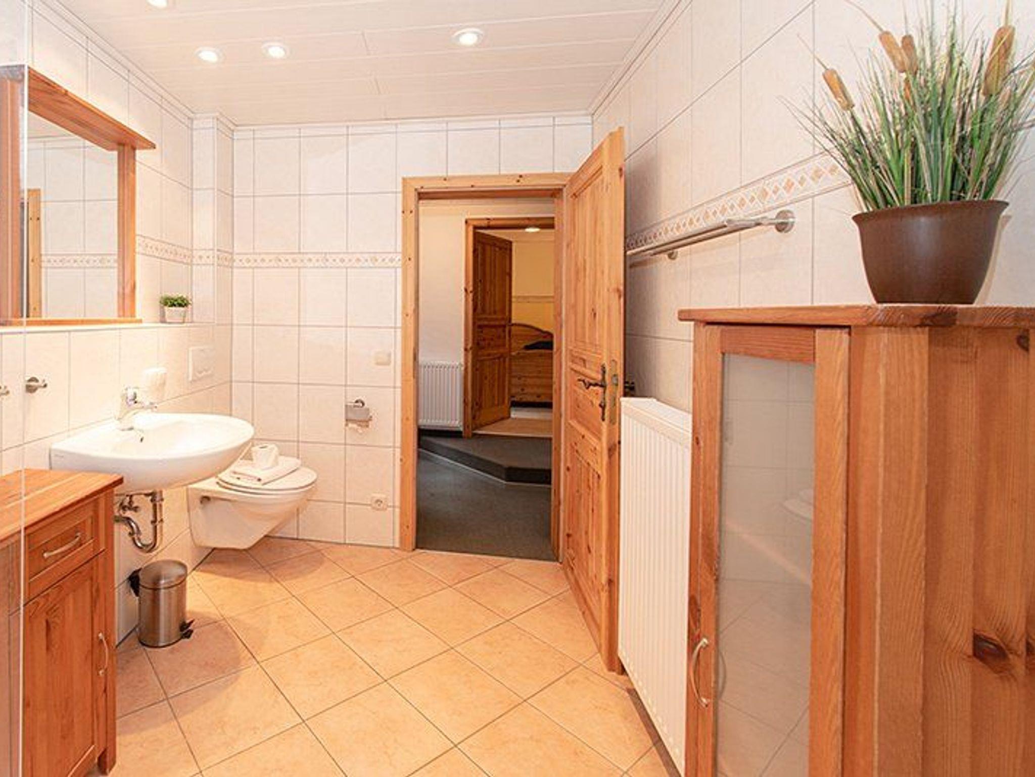 Im Obergeschoss wurden zwei Schlafzimmer und ein weiteres Bad mit Dusche und WC neu eingerichtet. Beide Bäder verfügen über elektrische Fußbodenheizung, Handtuchheizkörper und Fön. Für Kleinkinder sind Reisebett, Matratze, Bettzeug und Babyfon vorhanden.