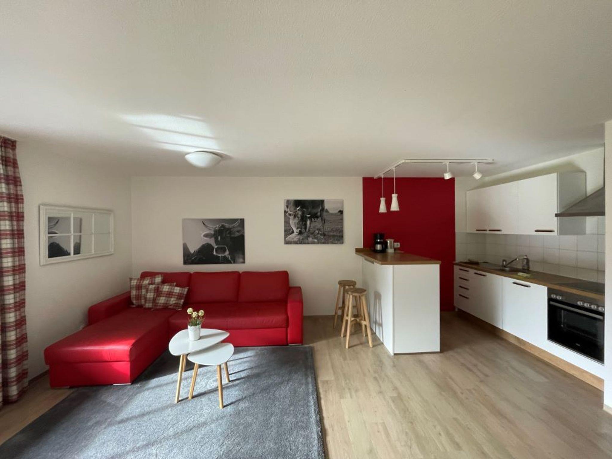 Unser geräumiges Wohn-/Esszimmer, mit neuer voll ausgestatteter Küche, bietet direkten Zugang auf die Terrasse (Südseite), welche mit neuen Gartenmöbeln und Liegestühlen auf sie wartet. Zusätzlich verfügt die Wohnung über einen WLAN-Anschluss und einen modernen Smart-TV.