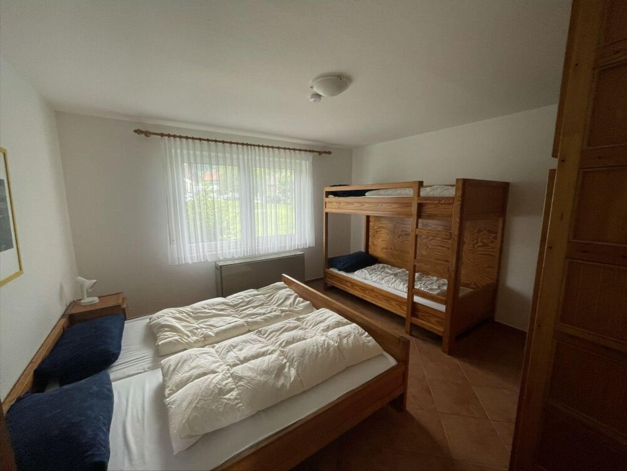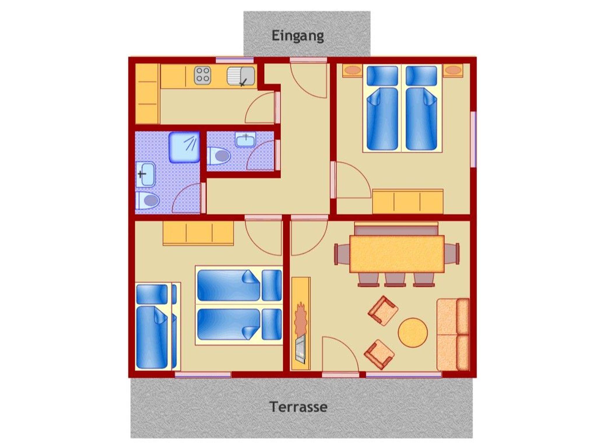 Ideal für einen erholsamen Familienurlaub mit Kindern: Restaurant, Spielehaus, Freibad, Bolzplatz und Abenteuerspielplatz sind fußläufig erreichbar. Das komplett renovierte und möblierte Haus bietet eine sonnige Südterrasse mit Markise, Grillmöglichkeit und angrenzender Wiese mit Sonnenliegen und Gartenmöbeln. Der Wohn- und Essbereich ist mit einer großen Essecke aus massivem Eichenholz für bis zu sechs Personen ausgestattet, zusätzlich stehen Kabelfernsehen mit Full-HD-LED-TV, Stereo-Radio und Spielesammlung zur Verfügung. Die Schlafzimmer bieten Platz für insgesamt sechs Personen, darunter ein Raum mit Doppelbett und Etagenbett sowie ein weiteres Schlafzimmer mit Doppelbett und eigenem Fernseher. Die neue Einbauküche ist ausgestattet mit Backofen, Cerankochfeld, Mikrowelle, Geschirrspüler, Kühlschrank mit 3*-Gefrierfach, Toaster und Kaffeemaschine. Eine eigene Waschmaschine befindet sich im Abstellraum. Das neu renovierte Badezimmer verfügt über eine große Dusche und WC, zusätzlich ist ein separates Gäste-WC mit Waschgelegenheit vorhanden. Schnelles WLAN steht im gesamten Haus zur Verfügung. Neu sind die zusätzliche Dusche im Bad, ein weiterer Fernseher im Schlafzimmer sowie neue, wärmeisolierende Fenster im gesamten Haus. Hunde sind erlaubt.