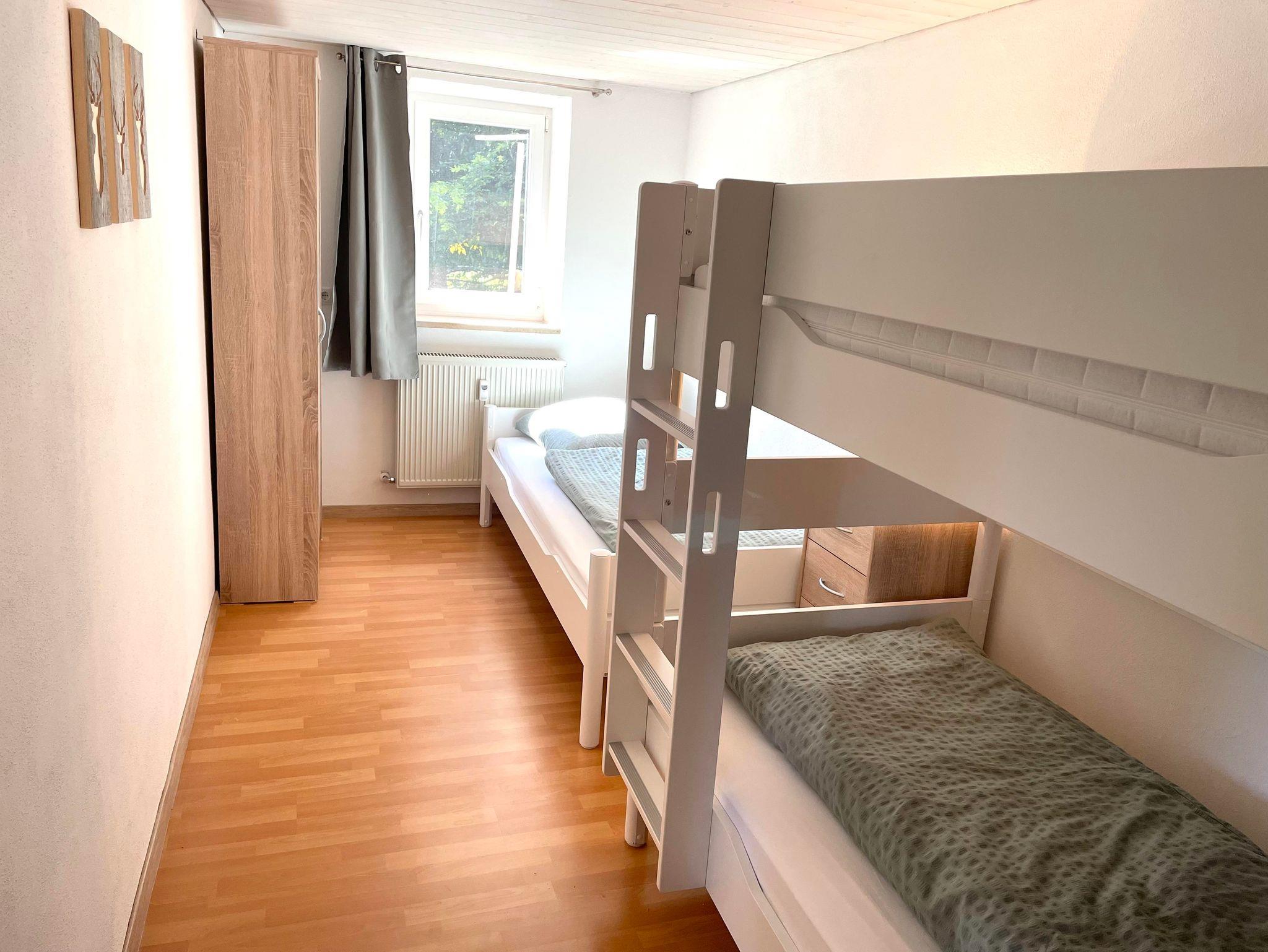 Essen, schlafen, wohnen: Eine großzügige, offene Wohnküche mit neuer Einbauküche inklusive Spülmaschine bildet das Herzstück der Wohnung. Es stehen zwei Schlafzimmer zur Verfügung: Eines mit Doppelbett und zusätzlichem Einzelbett, das andere mit einem Einzelbett und einem Etagenbett – ideal für Familien. Das geräumige Badezimmer bietet neben Dusche, Badewanne und WC auch eine Waschmaschine.