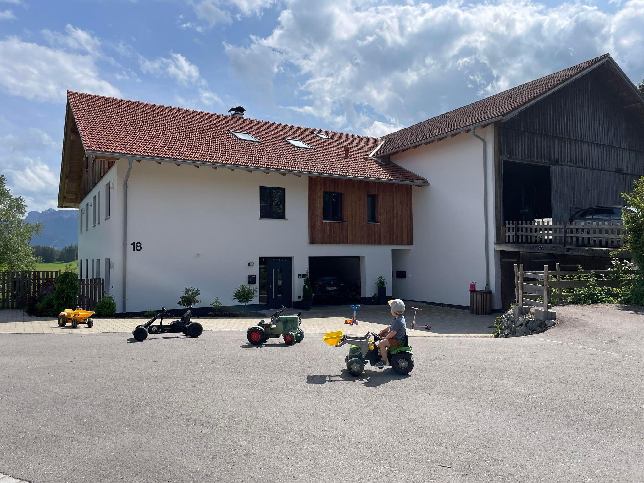 PARTNERBETRIEB DER KÖNIGSCARD: Freizeitspass zum Nulltarif, über 200 Leistungen aus Natur, Kultur, Sport und Freizeit INKLUSIVE! Willkommen auf dem Alpen Panoramahof Rief – Ihrem Ferienhof für unvergesslichen Familienurlaub in Nesselwang im südlichen Allgäu! Bei uns erleben Sie erholsame Tage inmitten wunderschöner Natur, kombiniert mit tierischen Begegnungen und viel Platz zum Spielen und Entdecken. Kinder dürfen bei uns noch Kind sein – ob beim Füttern von Zwergziegen, Hasen und Hühnern, beim Streicheln unserer Katzen oder beim Beobachten der Ponys, Pferde und Jungtiere auf der Weide. Ein eigener eingezäunter Spielplatz mit Rutsche, Schaukel, Trampolin und Sandkasten sowie Tretfahrzeuge wie Kettcar, Bobbycar oder Trettraktor sorgen für sicheren Spielspaß direkt am Hof. Während die Kleinen die Freiheit genießen, entspannen Sie auf der Terrasse – mit Blick auf die Allgäuer Alpen und das herrliche Panorama. Ein Urlaub, wie ihn Kinder lieben – und Eltern genießen!