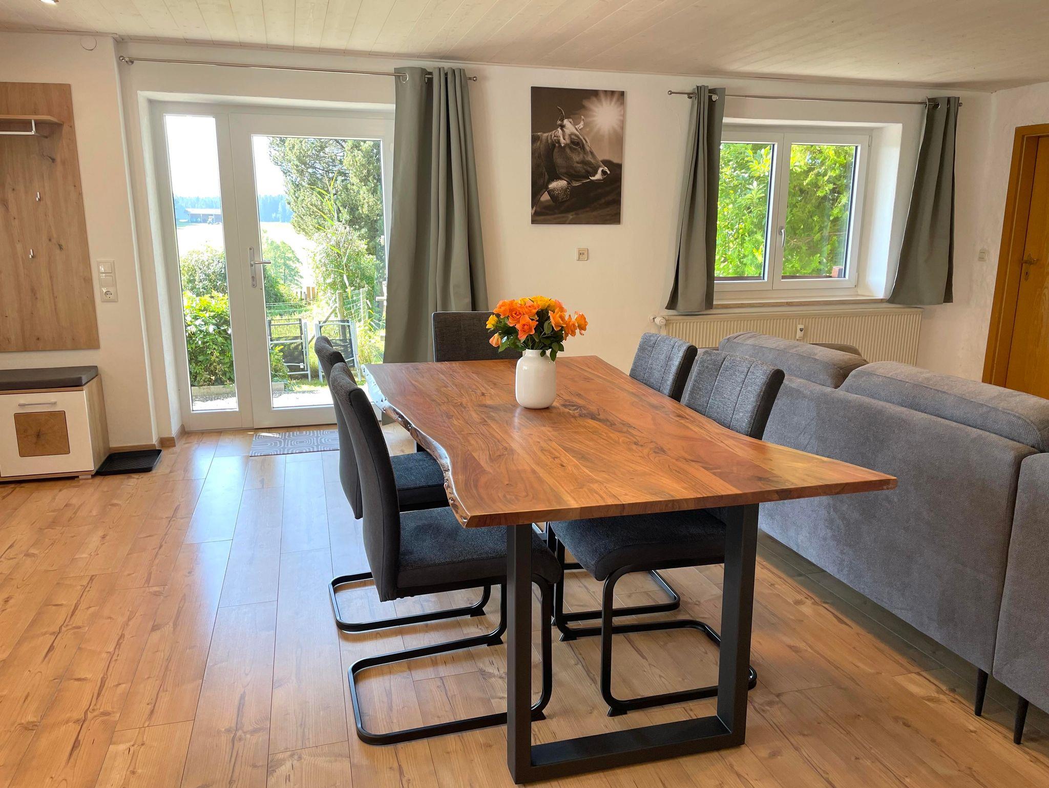Willkommen in unserer gemütlichen Dreizimmer-Ferienwohnung (70 qm) im Erdgeschoss mit eigenem Garten, Spielplatz, großzügiger Terrasse und herrlichem Bergblick – ideal für 2 bis 6 Personen! Unsere liebevoll und komplett neueingerichtete Ferienwohnung bietet den perfekten Rückzugsort für Familien, Naturliebhaber und Ruhesuchende. Genießen Sie entspannte Urlaubstage auf der nach Süden ausgerichteten Terrasse mit freiem Blick auf die umliegende Bergwelt – der ideale Ort für Sonnenstunden und gesellige Abende.
