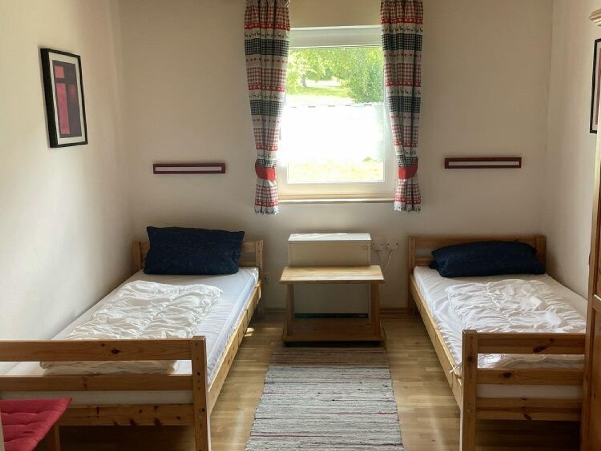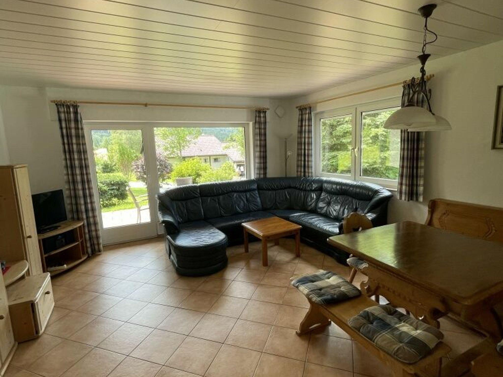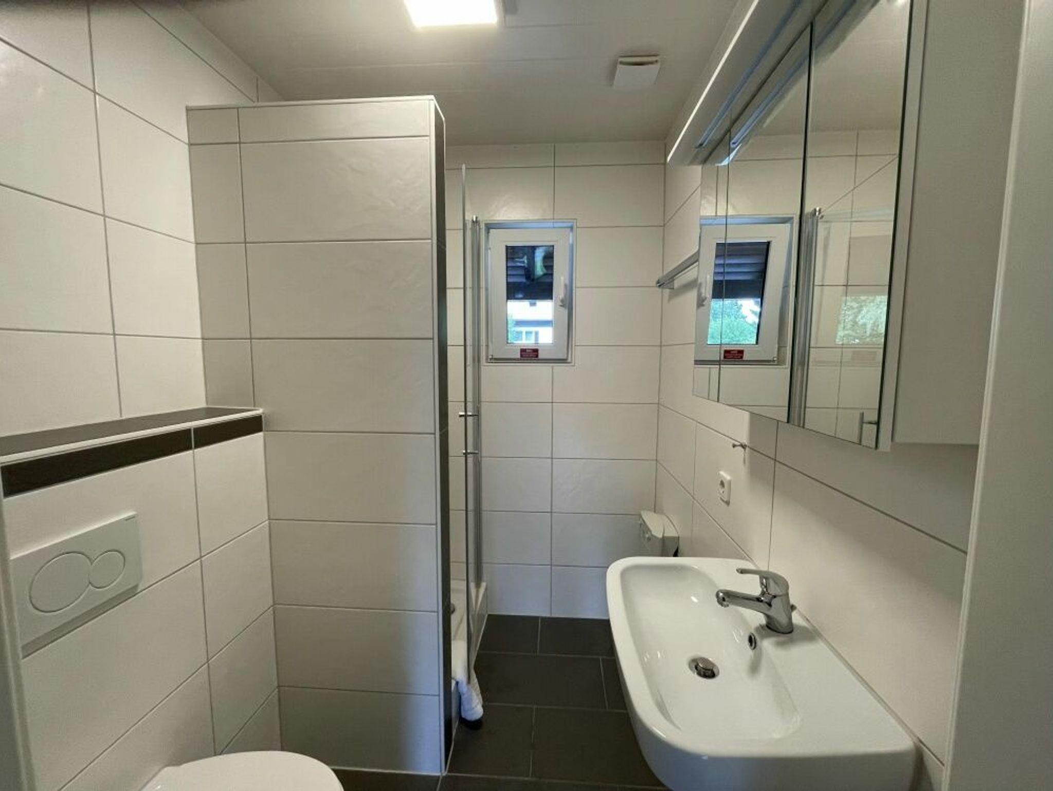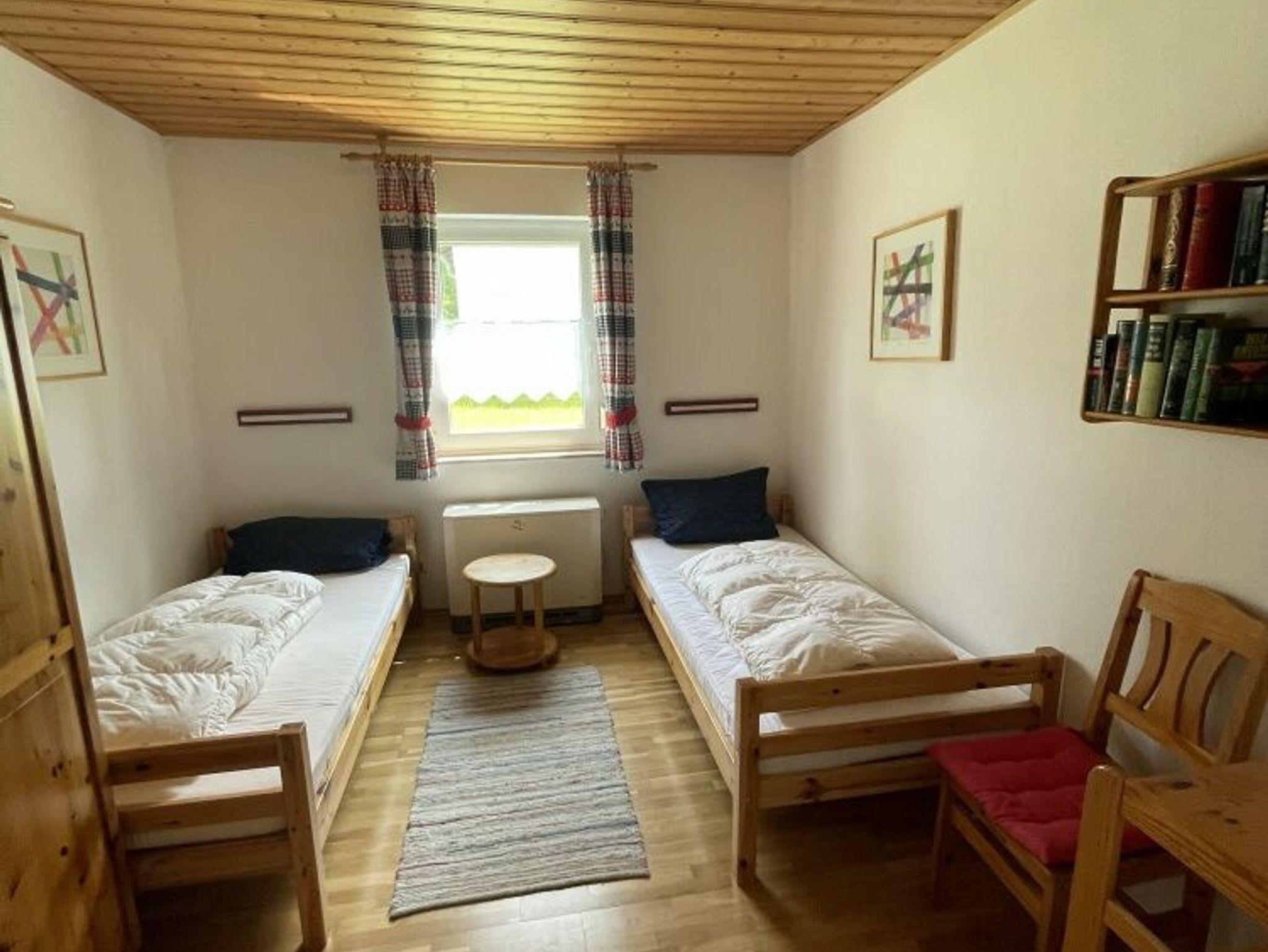 Alle drei Schlafzimmer im EG sind mit Eiche-Massivholzparkett ausgestattet. Im Obergeschoss befinden sich zwei weitere Schlafzimmer mit neuen Massivholz-Doppelbetten, Holzparkett und je einem eigenen Fernseher. Die renovierte Küche ist mit neuen Möbeln und Geräten ausgestattet: Cerankochfeld, Backofen, Mikrowelle, Geschirrspüler, großer Kühlschrank mit Gefrierfach, Kaffeemaschine sowie vollständige Ausstattung für mehr als 8 Personen. Das Wohnzimmer verfügt über eine gemütliche Essecke mit Eckbank, Polstergarnitur und HD-Flachbildfernseher, der zentral einsehbar ist, sowie Stereoanlage. Ein elektrisch beheizter Kachelofen sorgt für angenehme Atmosphäre, beheizt wird mit Nachtspeicheröfen. Eine Garage und vier Stellplätze stehen am Eingang zur Verfügung. Schneller Internetzugang mit ca. 55Mbit/s ist vorhanden. Haustiere sind erlaubt.