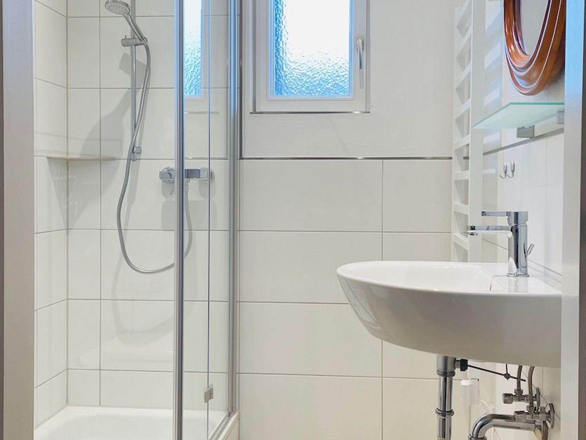 Die Küche ist voll ausgestattet mit Ceranherd, Backofen, Kaffeemaschine, Wasserkocher, Kühlschrank, Elektrogrill und weiteren Geräten. Das frisch renovierte Duschbad wird durch ein separates Gäste-WC ergänzt, in den Schlafzimmern befinden sich zusätzliche Waschbecken.