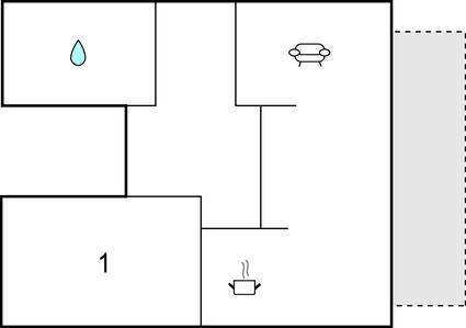 Wohnraum/Küche - 2 Schlafmöglichkeiten. (Doppelbett(en)).