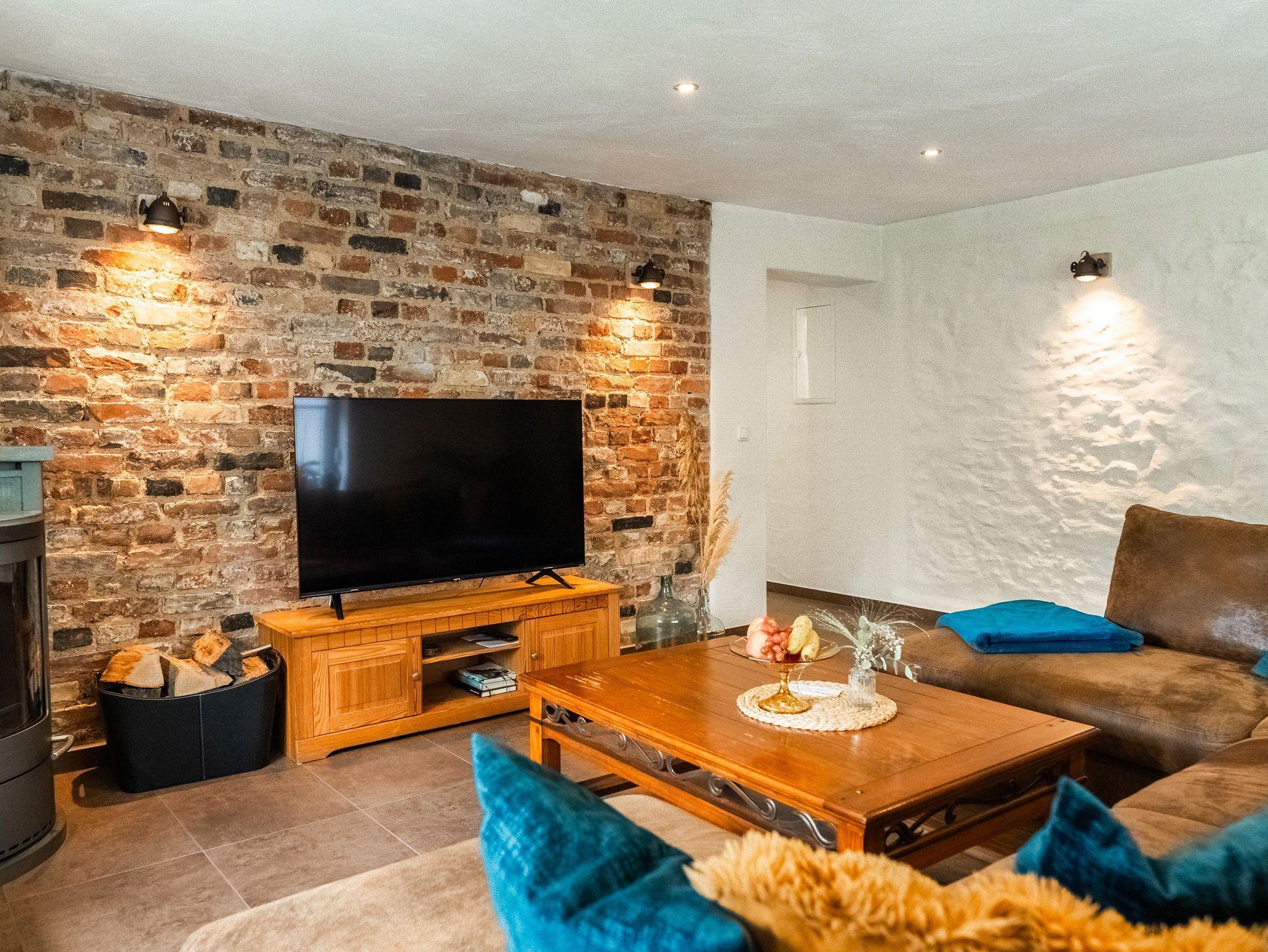 „a Bäckesch 15“ verfügt über ein wunderschönes Wohnzimmer mit Kaminofen, Schlafzimmer mit Doppelbett und Bad mit ebenerdiger Dusche. Des Weiteren besteht die Möglichkeit für bis zu zwei weitere Personen die Schlafcouch zu nutzen. Die Ferienwohnung verfügt zudem über einen großen Flachbild-TV und WLAN.