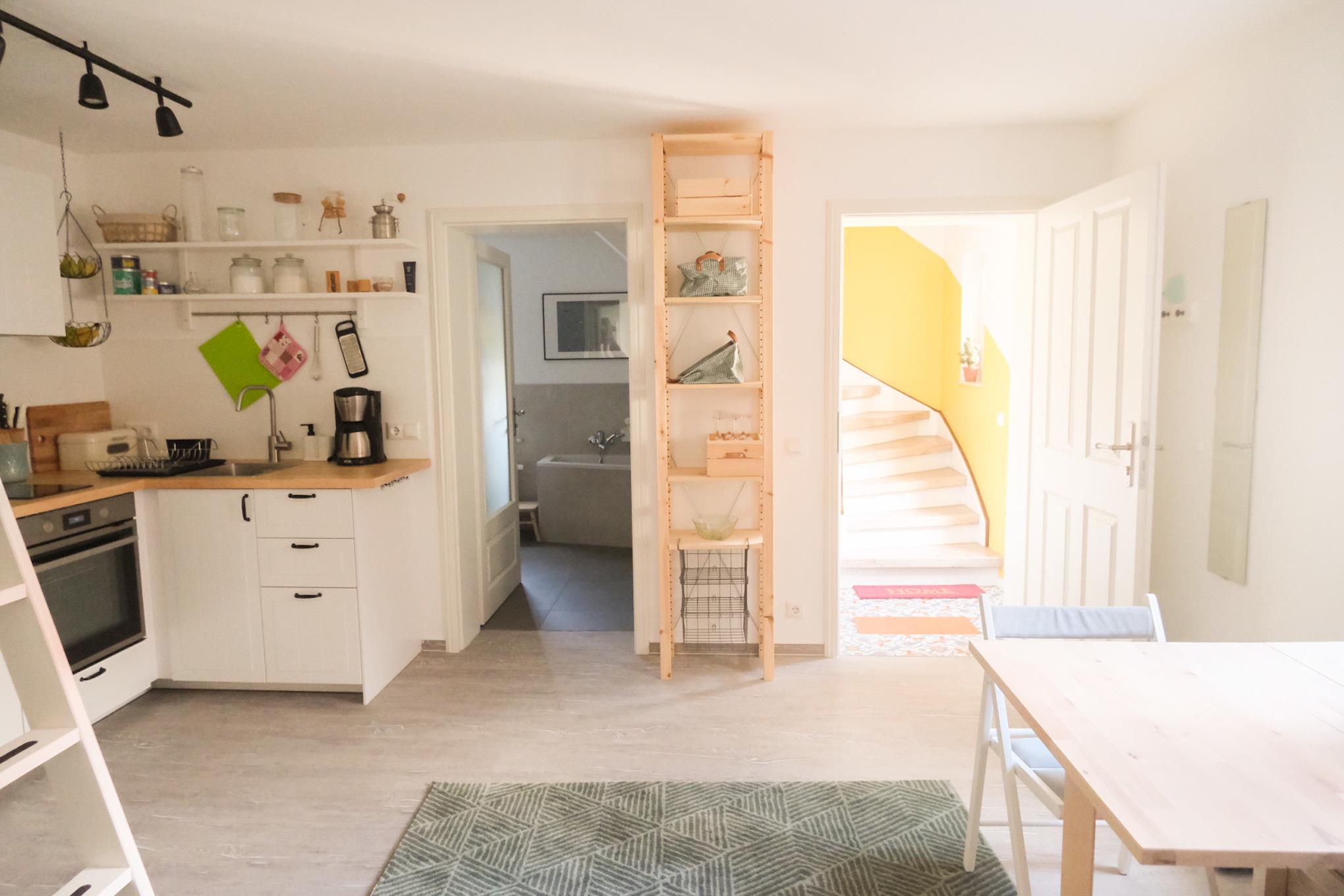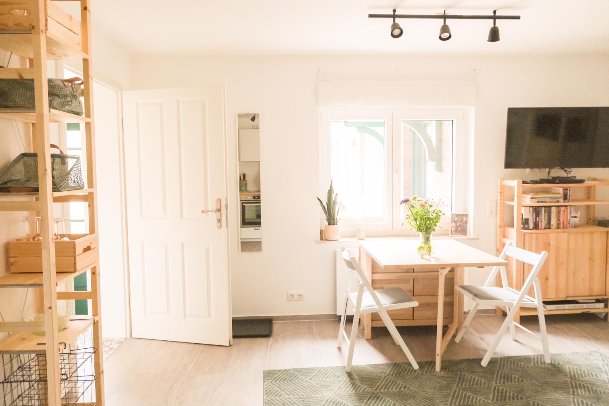 Die Ferienwohnung Dora ist klein, aber fein (30qm). Da funktional und geräumig eingerichtet, finden hier bis zu 3 Personen ausreichend Platz. Die Ferienwohnung verfügt über ein Doppelbett und ein Schlafsofa, eine offene Wohnküche und ein Badezimmer mit Badewanne und Dusche. Zugang erhältst du über einen separaten Eingang im Innenhof.