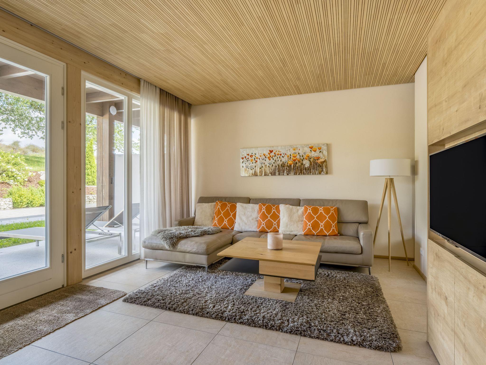 Neues barrierefreies Appartement mit exklusiver Einrichtung wie Kochinsel, Essecke, Wohnraum mit Kuschelcouch, Schlafräume mit maßangefertigten Betten und begehbarem Kleiderschrank, Wohlfühlbad mit separatem WC, Doppelwaschtisch und ebenerdiger Dusche, Flachbildfernseher in Wohn- und Schlafzimmer, überdachter Balkon und Terrasse mit Edelstahl-Gartenmöbeln und einem traumhaften Blick in die Natur.