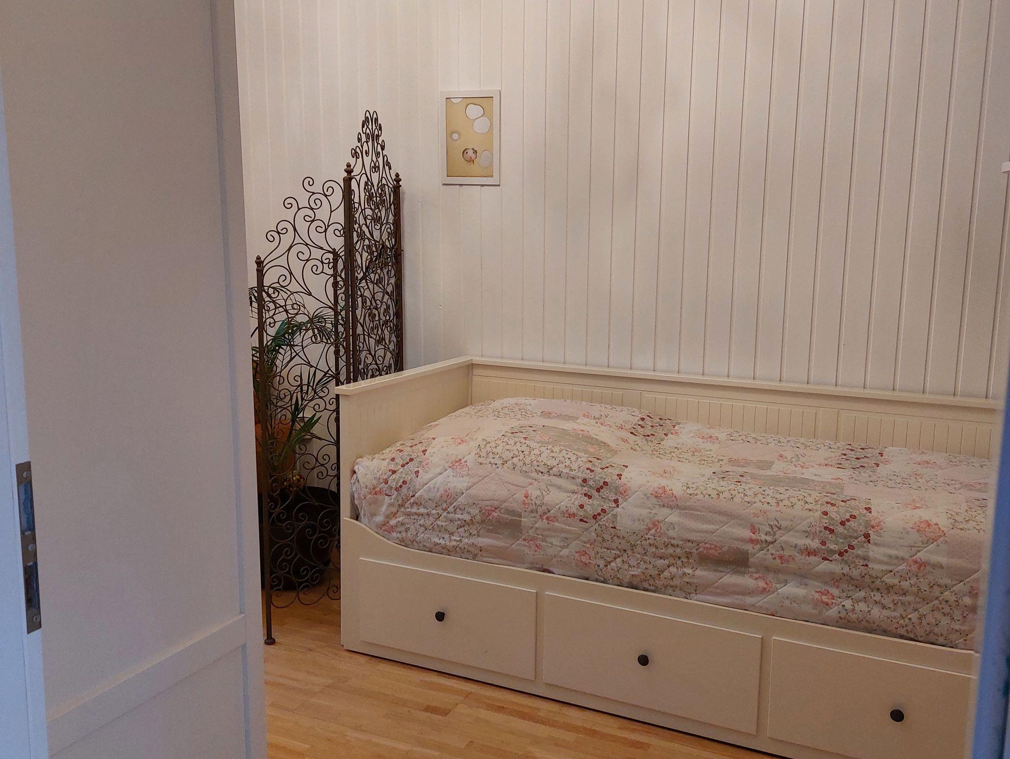 Das Bett ist ausziehbar und dann ein Doppelbett.