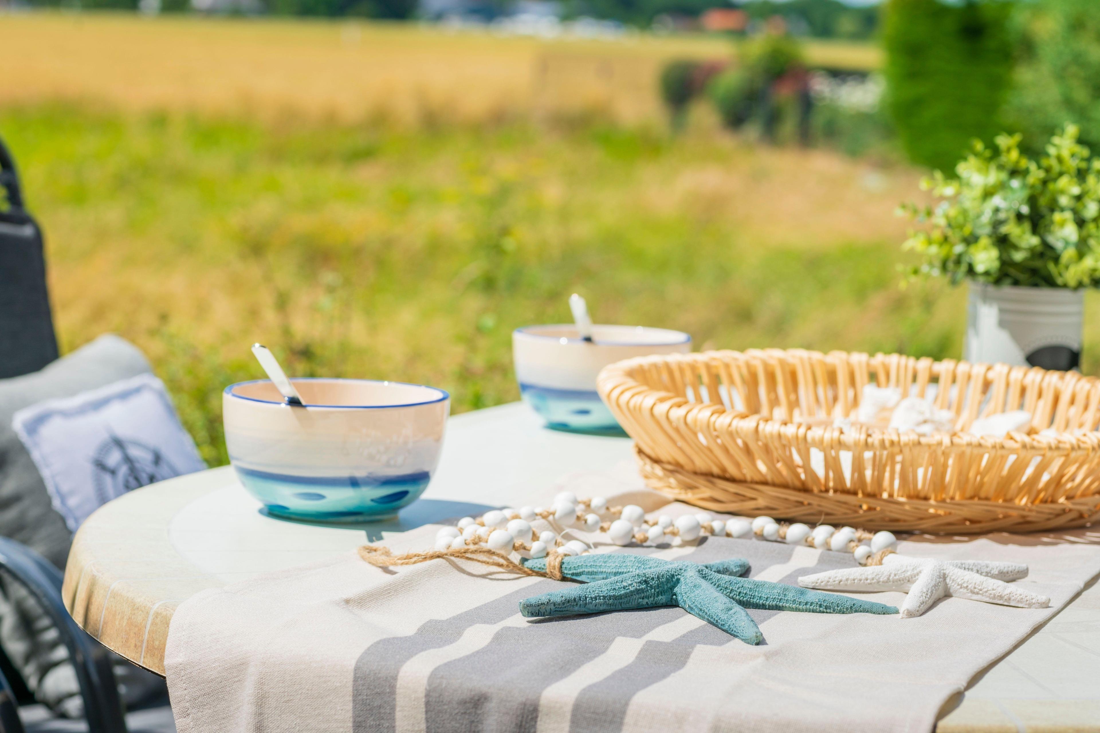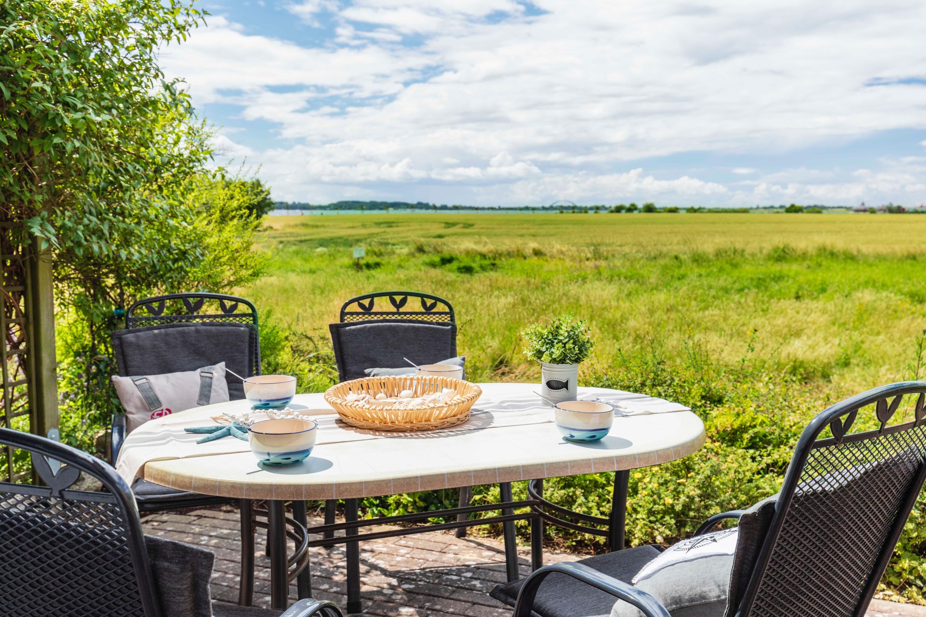 Die angrenzende Terrasse vom Wohraum, mit Gartenmöbeln bietet Ihnen einen tollen Blick auf den Burger Binnensee. Am Abend genießen Sie hier den Sonnenuntergang.