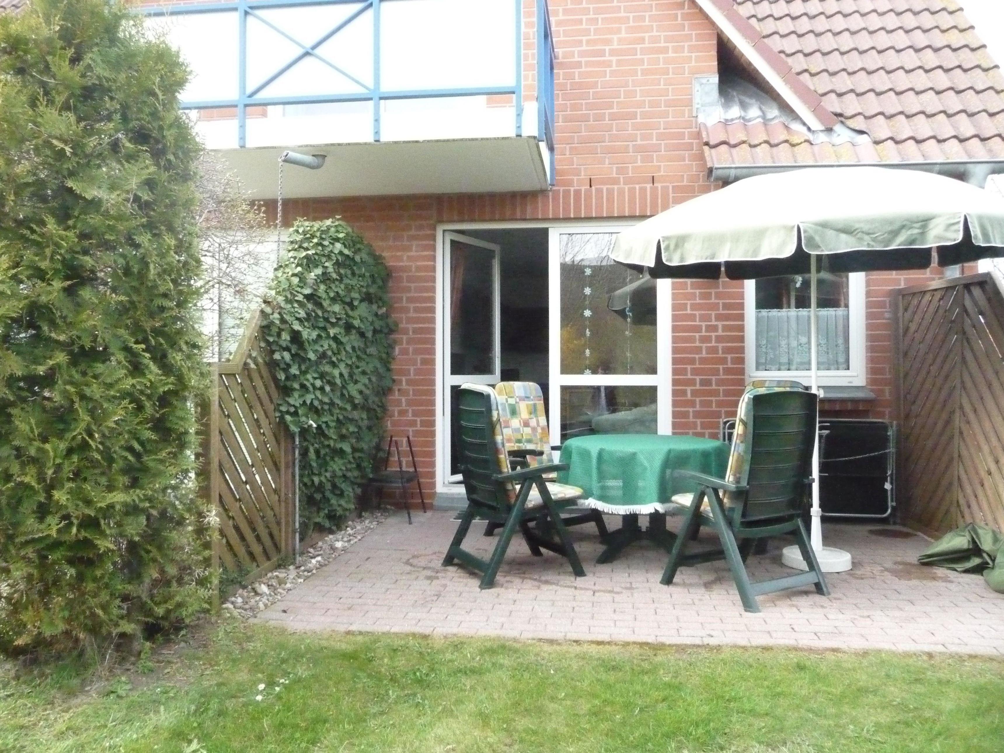 Die windgeschützte Süd-Terrasse ist mit Gartenmöbel versehen und lädt jederzeit zum Verweilen