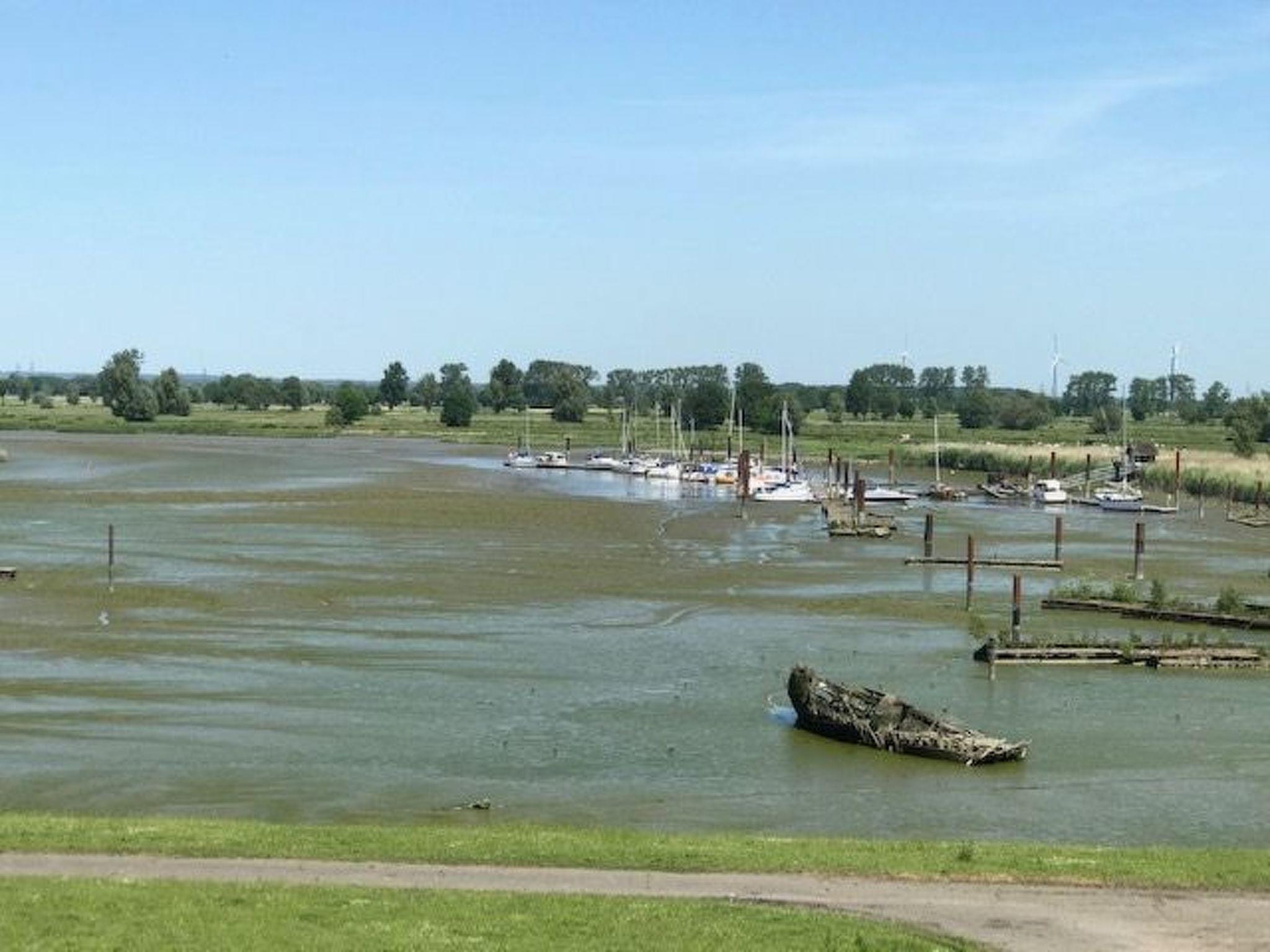 Small garden with cosy terrace incl. awning and electric barbecue and own jetty / boat landing stage in the Wilster Au, from our jetty you have direct access to the Wilster Au, which invites you to go canoeing, pedal boating and stand-up paddling and, if you like, swimming and fishing.