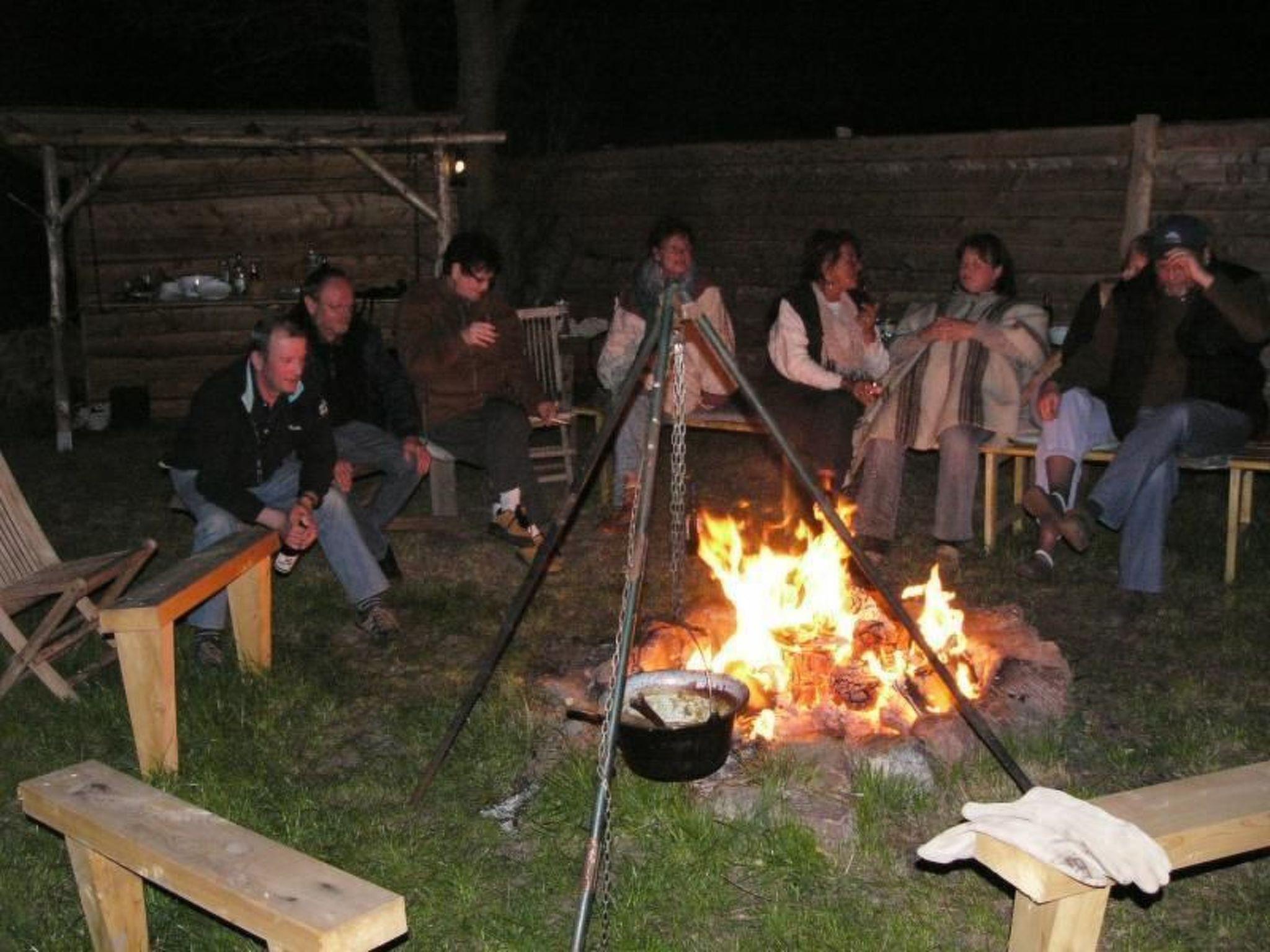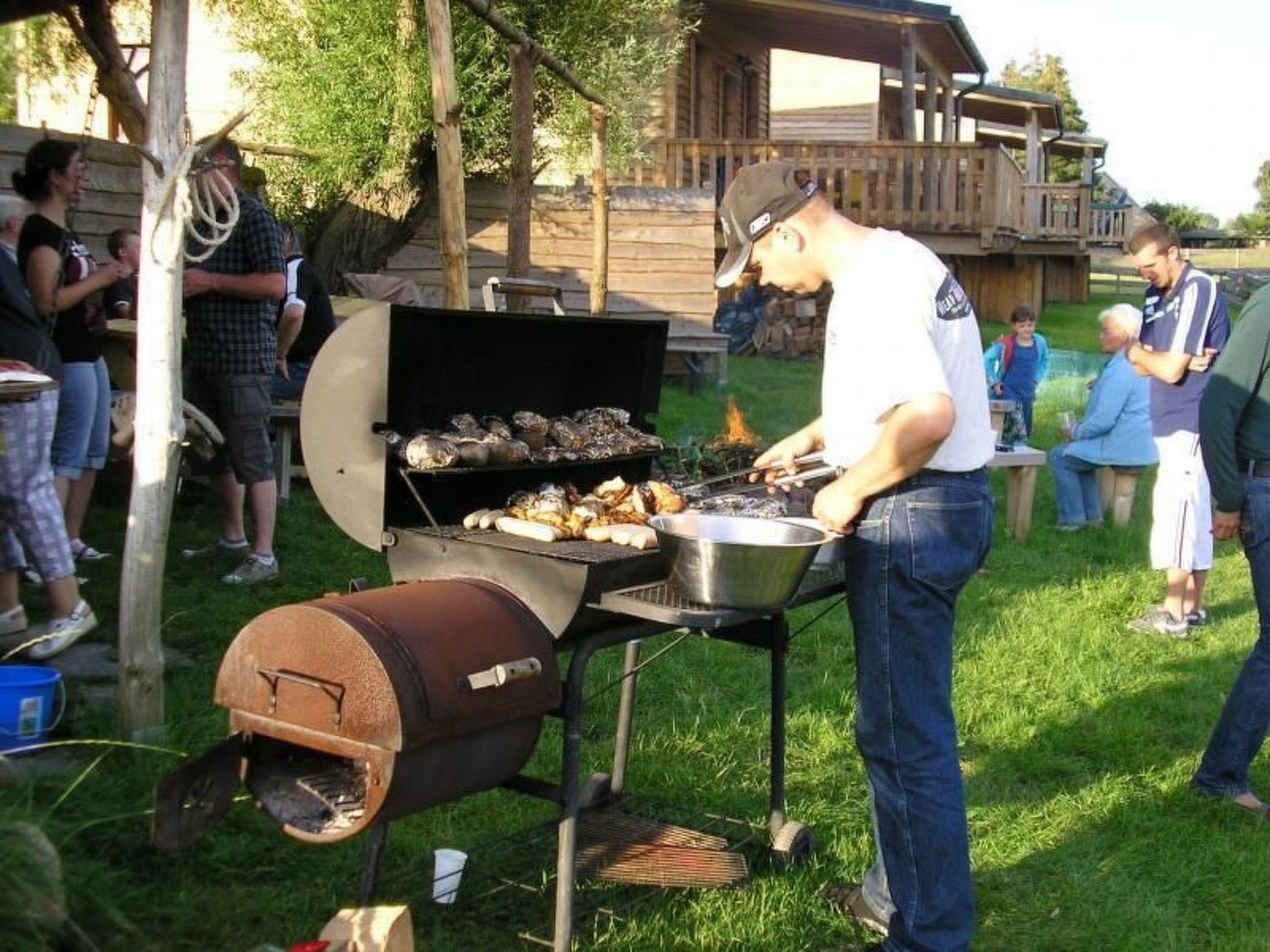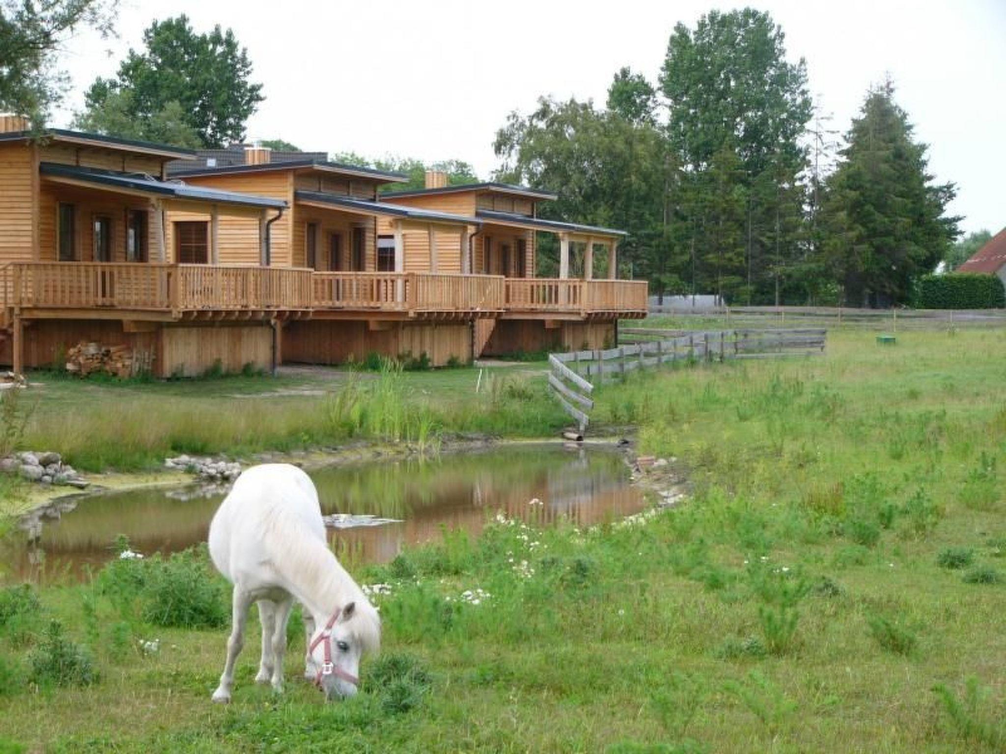 The wooden holiday house has a rustic interior with a fireplace in the living room, a wooden built-in kitchen, a bathroom and two bedrooms. Enjoy the western-style ambience. The kitchen is fully-equipped with an oven, fridge, freezer compartment, stove, coffee machine, toaster and kettle. If you do not feel like washing up then you can use the dishwasher. Four people can sit at the wooden dining table. The living room is comfortably furnished. A CD player, radio, stereo system and satellite TV are provided. The two bedrooms with two double beds (160 x 200cm) can accommodate four people. There is also a fireplace stove. The bathroom has an exceptional wooden bathtub and a toilet. There are electric radiators in every room.