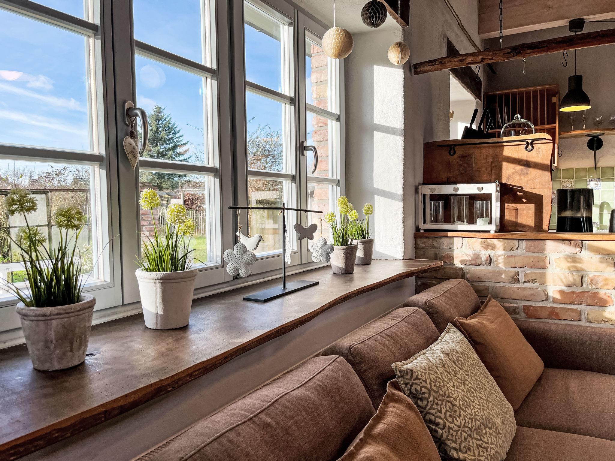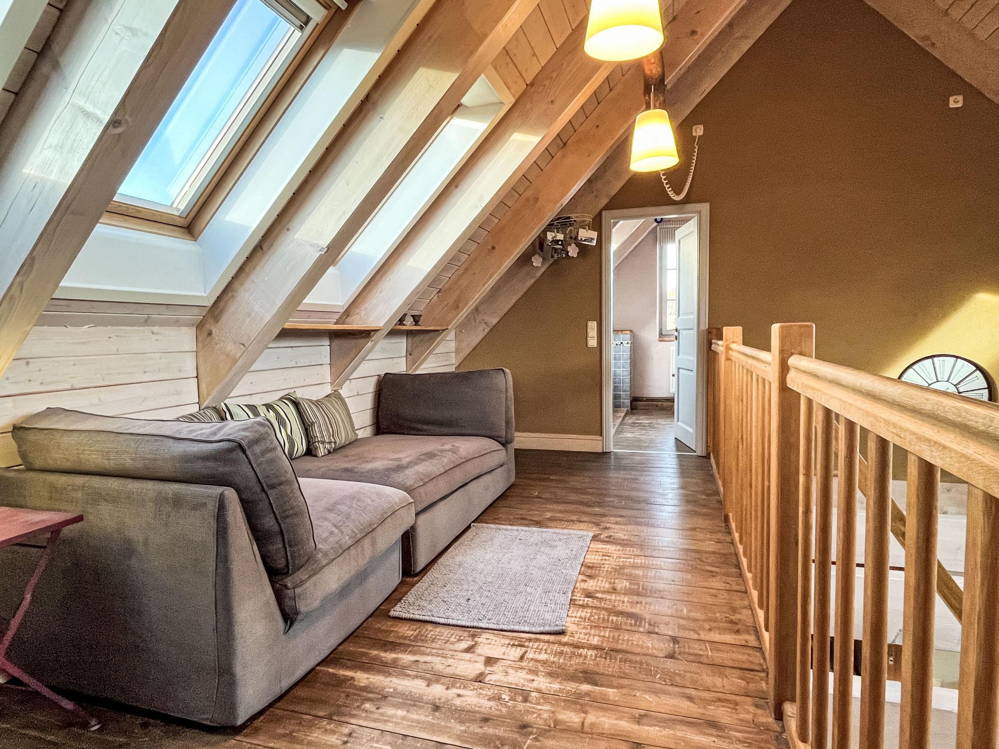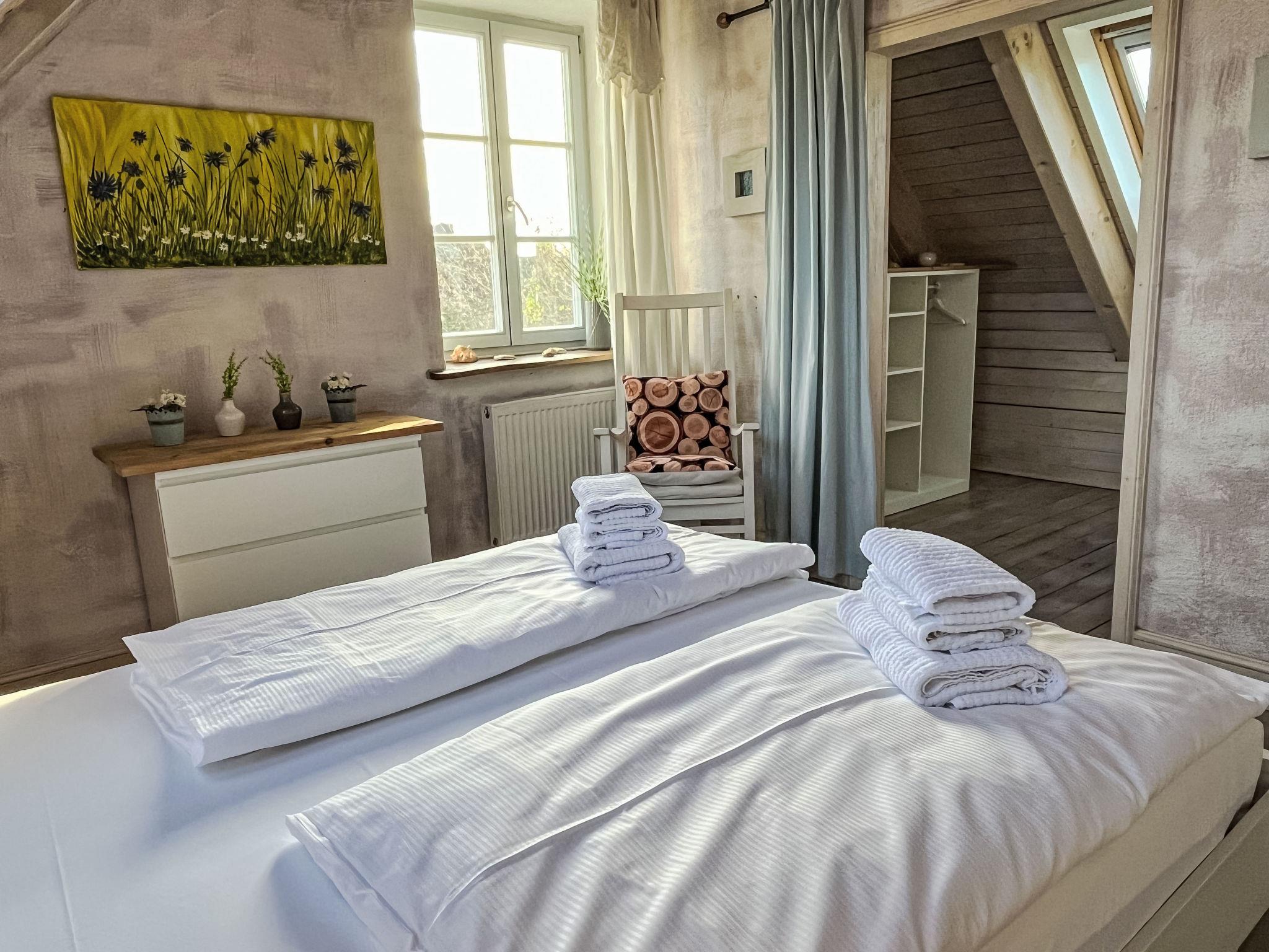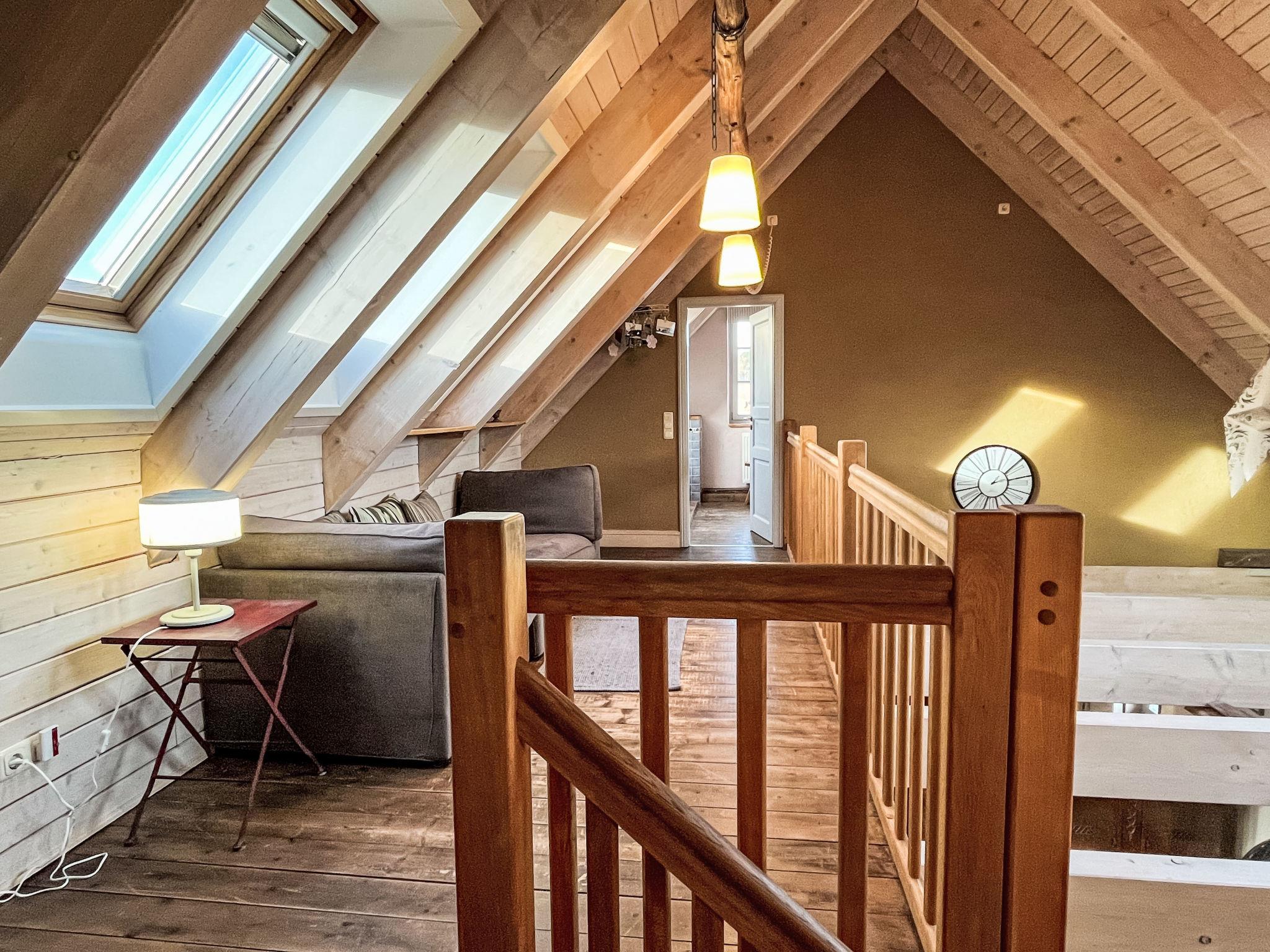 "Ferienscheune", 5-room cottage 160 m2 on 2 levels. Object suitable for 8 adults. Comfortable and cosy furnishings: living/dining room with Scandinavian wood stove, dining table and cable TV (flat screen), radio and CD-player. Exit to the garden, to the terrace. 1 room with 1 double bed (160 cm, length 200 cm). 1 room with 2 beds (90 cm, length 200 cm). Open kitchen (oven, dishwasher, 4 ceramic glass hob hotplates, toaster, kettle, electric coffee machine). Shower/WC. Upper floor: 1 room with 1 double sofabed (160 cm, length 200 cm). 1 room with 1 double bed (160 cm, length 200 cm). Bath/shower/WC. Comfortable furnishings in the country house style. Terrace. Terrace furniture. Beautiful view of the garden. Facilities: children's high chair, baby cot, hair dryer. Internet (WiFi, free). Parking (2 cars). Please note: suitable for families. Non-smokers only. Maximum 1 pet/ dog allowed.