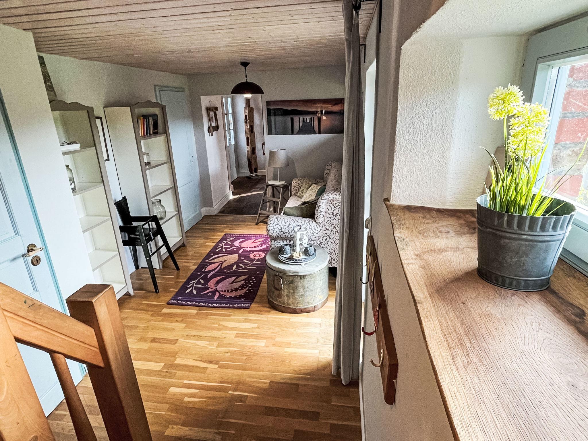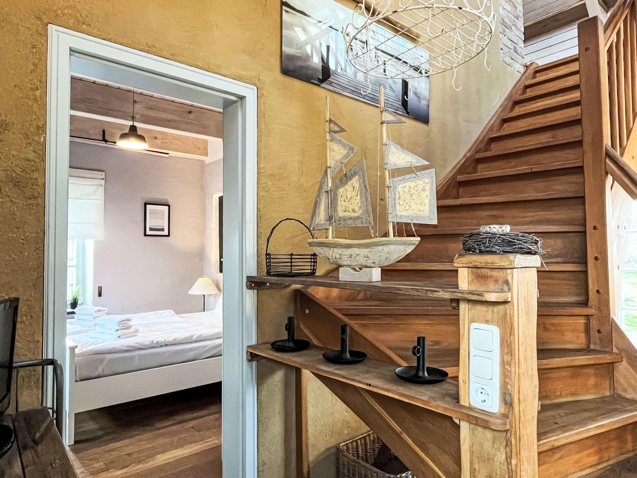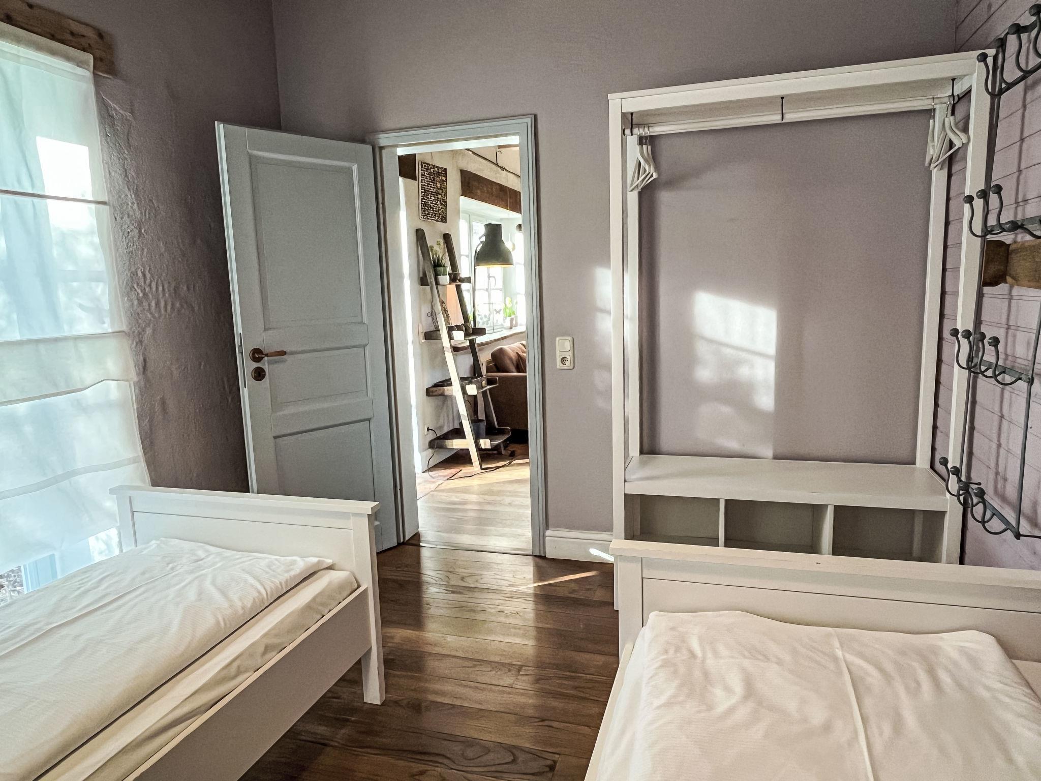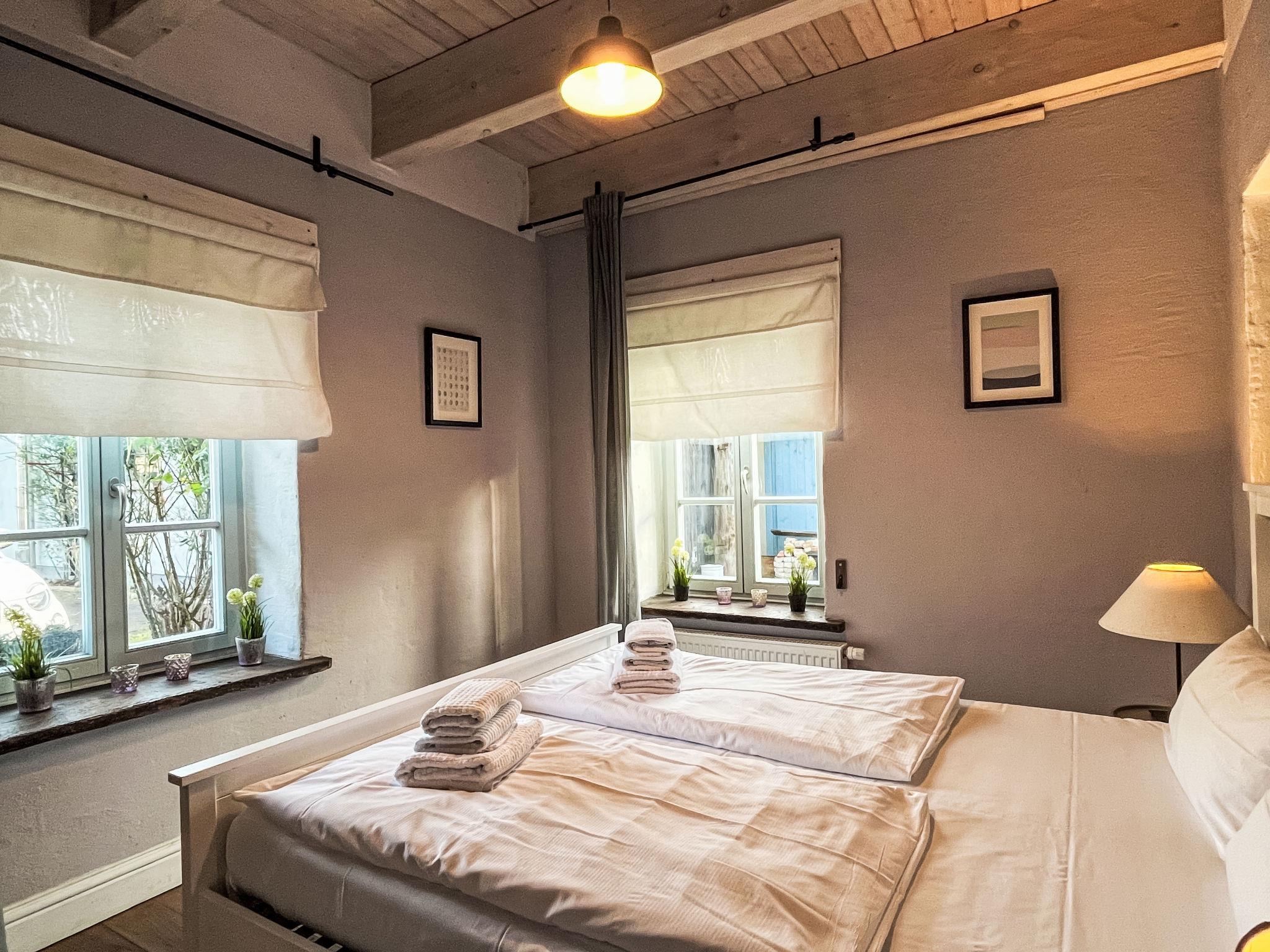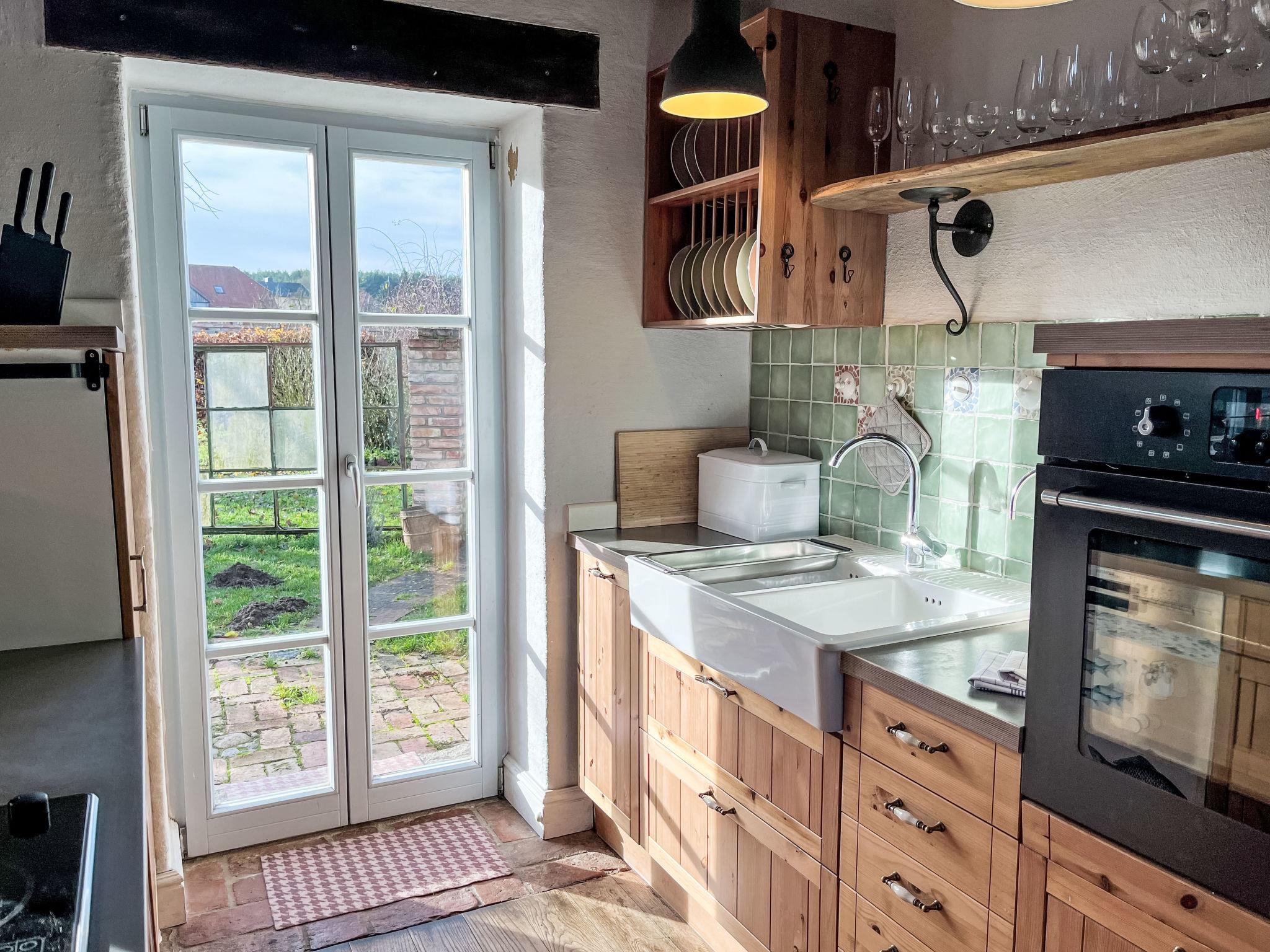 "Ferienscheune", 5-room cottage 160 m2 on 2 levels. Object suitable for 8 adults. Comfortable and cosy furnishings: living/dining room with Scandinavian wood stove, dining table and cable TV (flat screen), radio and CD-player. Exit to the garden, to the terrace. 1 room with 1 double bed (160 cm, length 200 cm). 1 room with 2 beds (90 cm, length 200 cm). Open kitchen (oven, dishwasher, 4 ceramic glass hob hotplates, toaster, kettle, electric coffee machine). Shower/WC. Upper floor: 1 room with 1 double sofabed (160 cm, length 200 cm). 1 room with 1 double bed (160 cm, length 200 cm). Bath/shower/WC. Comfortable furnishings in the country house style. Terrace. Terrace furniture. Beautiful view of the garden. Facilities: children's high chair, baby cot, hair dryer. Internet (WiFi, free). Parking (2 cars). Please note: suitable for families. Non-smokers only. Maximum 1 pet/ dog allowed.