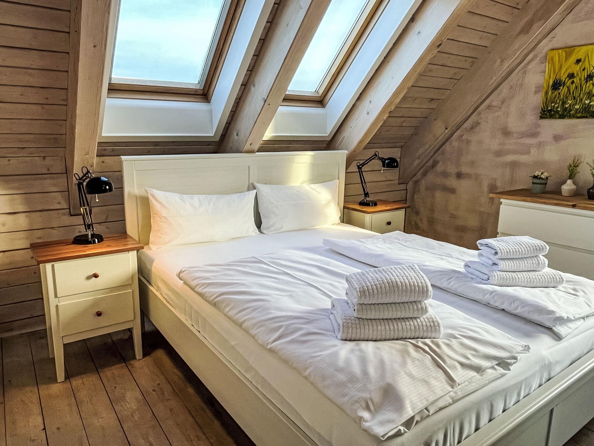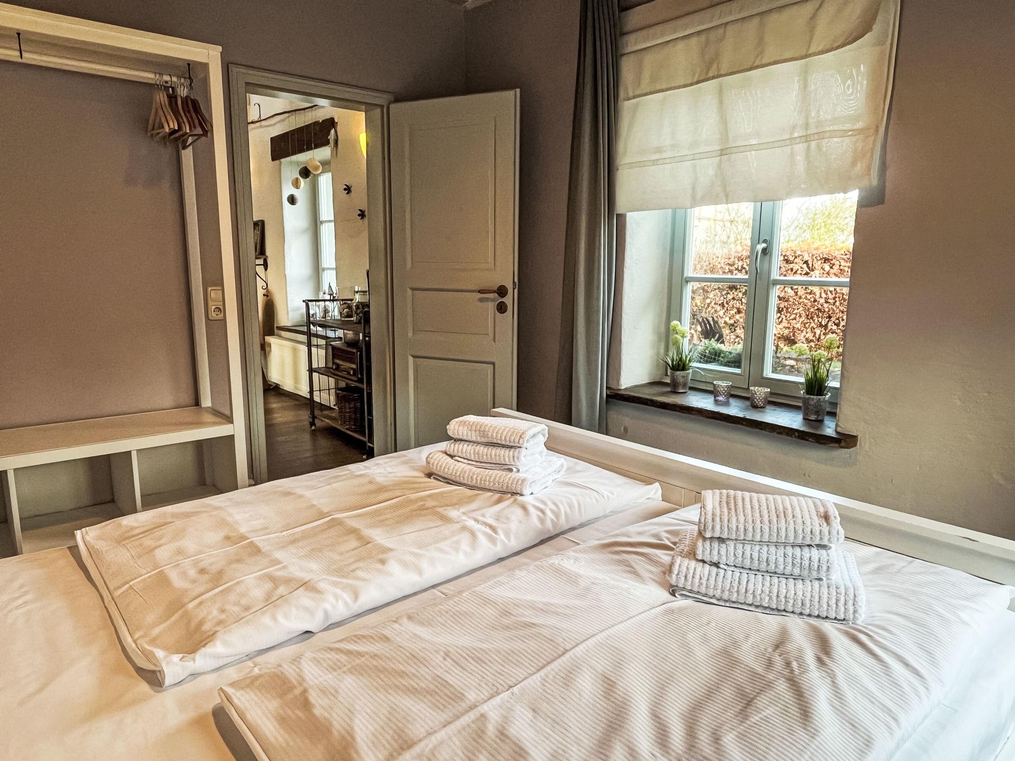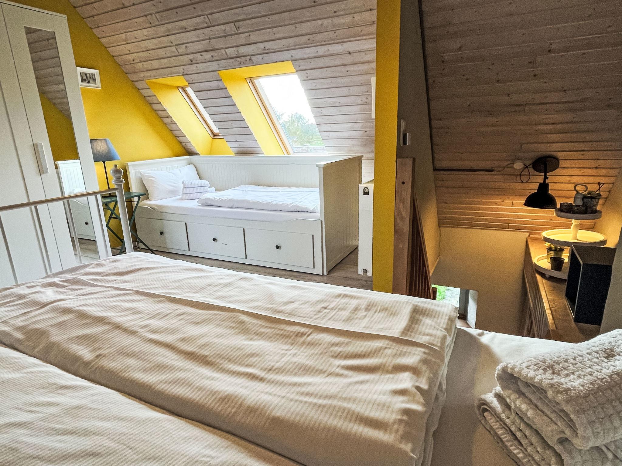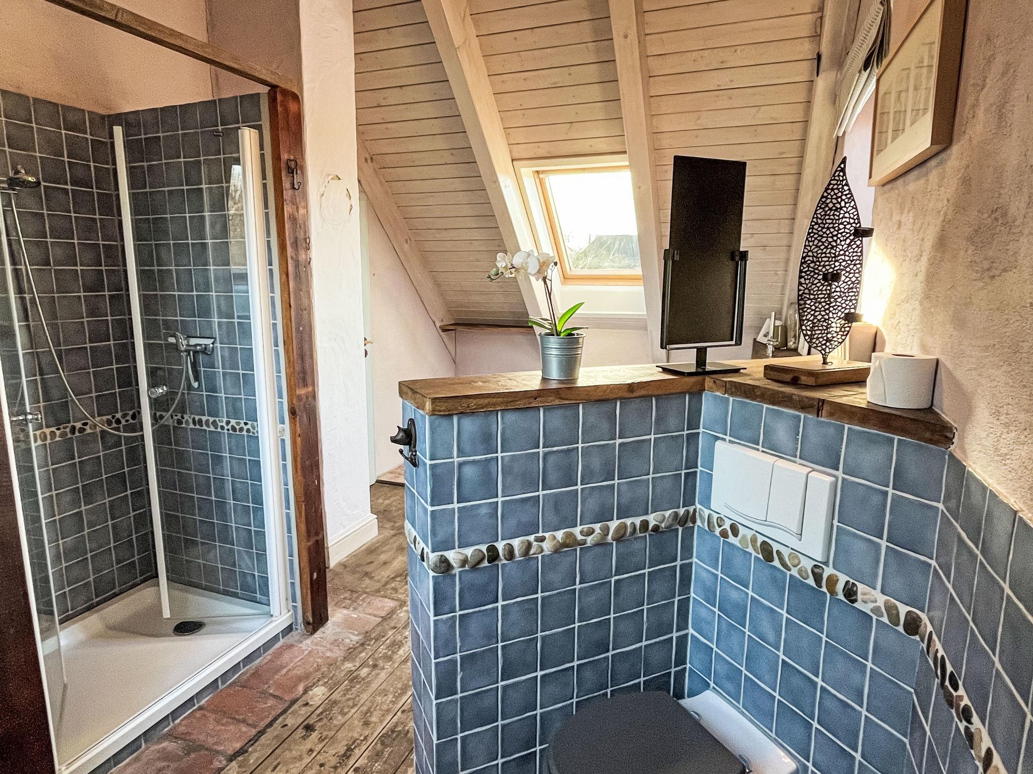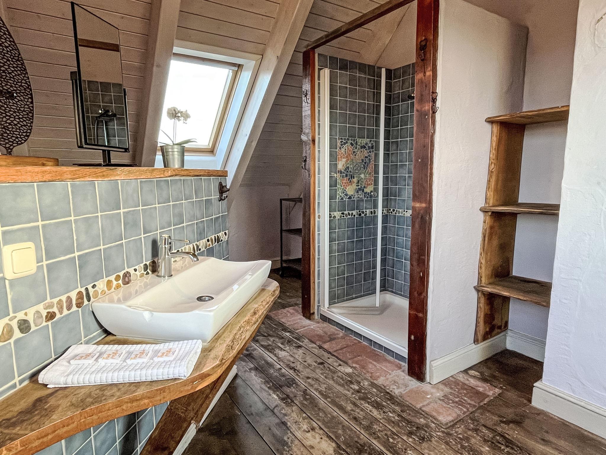 "Ferienscheune", 5-room cottage 160 m2 on 2 levels. Object suitable for 8 adults. Comfortable and cosy furnishings: living/dining room with Scandinavian wood stove, dining table and cable TV (flat screen), radio and CD-player. Exit to the garden, to the terrace. 1 room with 1 double bed (160 cm, length 200 cm). 1 room with 2 beds (90 cm, length 200 cm). Open kitchen (oven, dishwasher, 4 ceramic glass hob hotplates, toaster, kettle, electric coffee machine). Shower/WC. Upper floor: 1 room with 1 double sofabed (160 cm, length 200 cm). 1 room with 1 double bed (160 cm, length 200 cm). Bath/shower/WC. Comfortable furnishings in the country house style. Terrace. Terrace furniture. Beautiful view of the garden. Facilities: children's high chair, baby cot, hair dryer. Internet (WiFi, free). Parking (2 cars). Please note: suitable for families. Non-smokers only. Maximum 1 pet/ dog allowed.