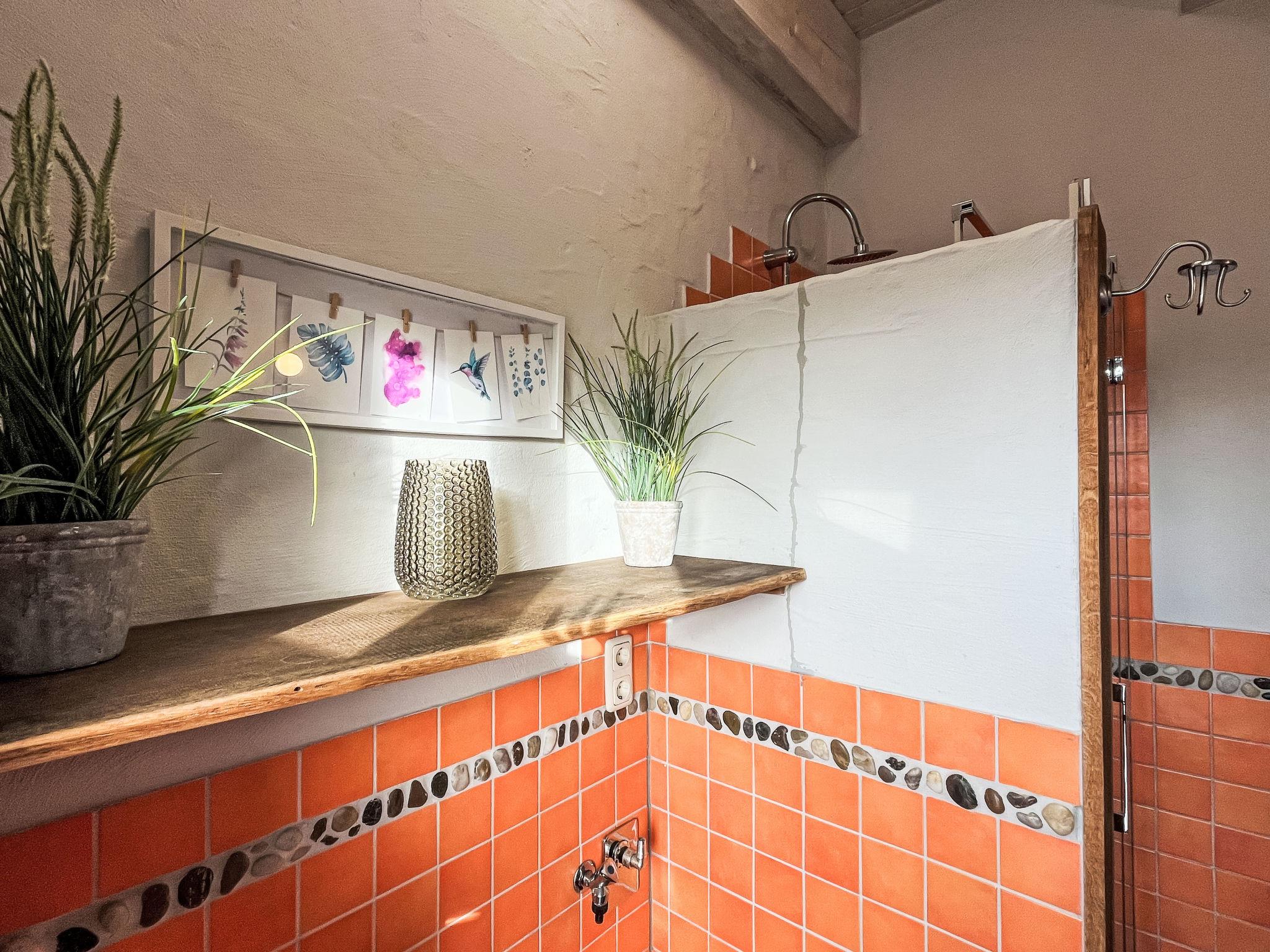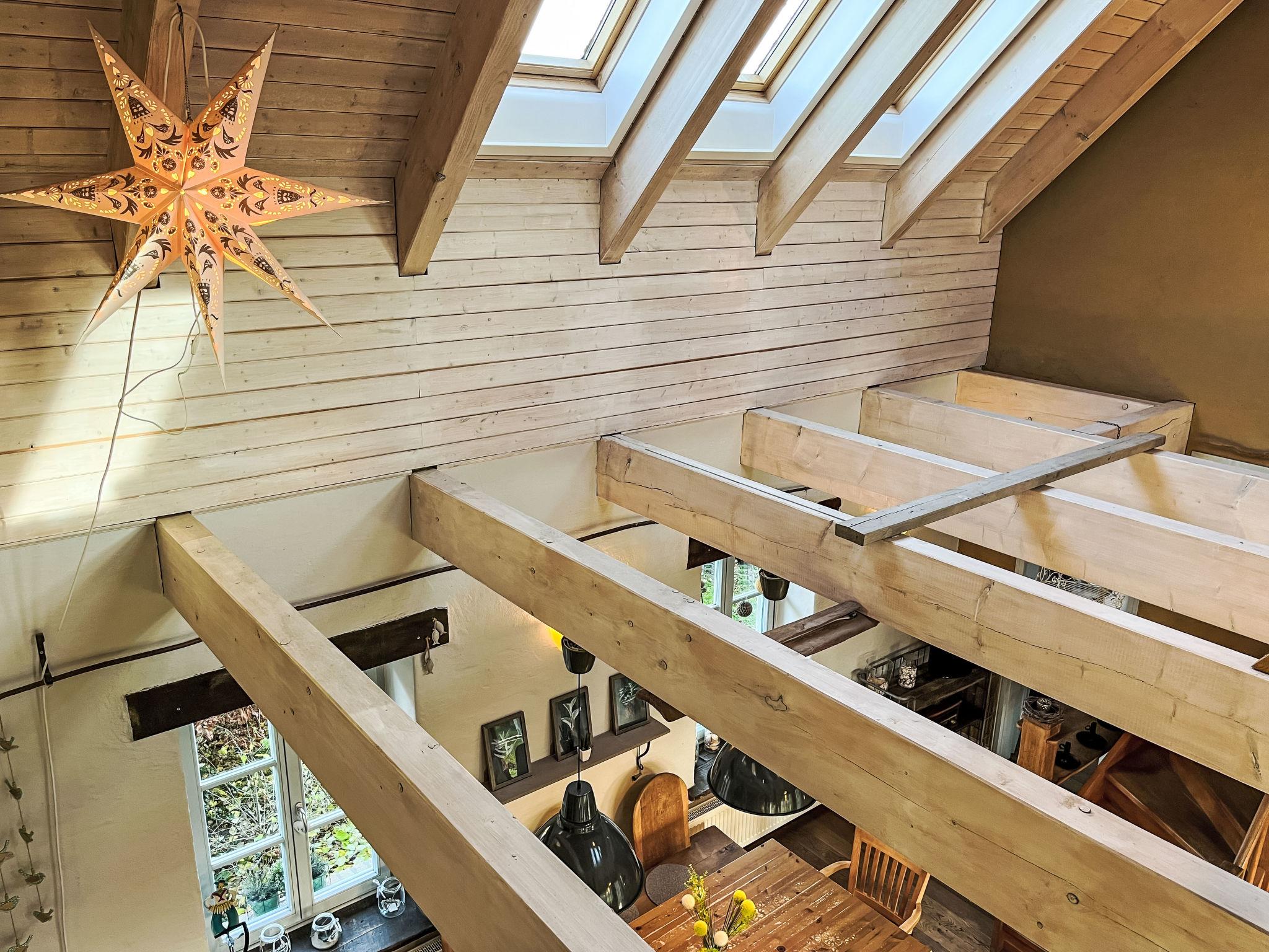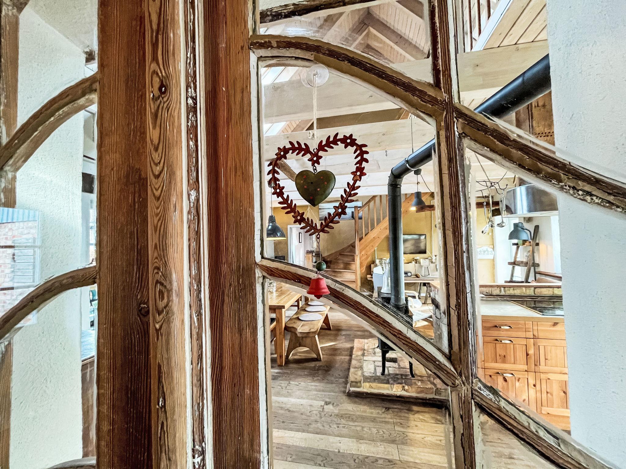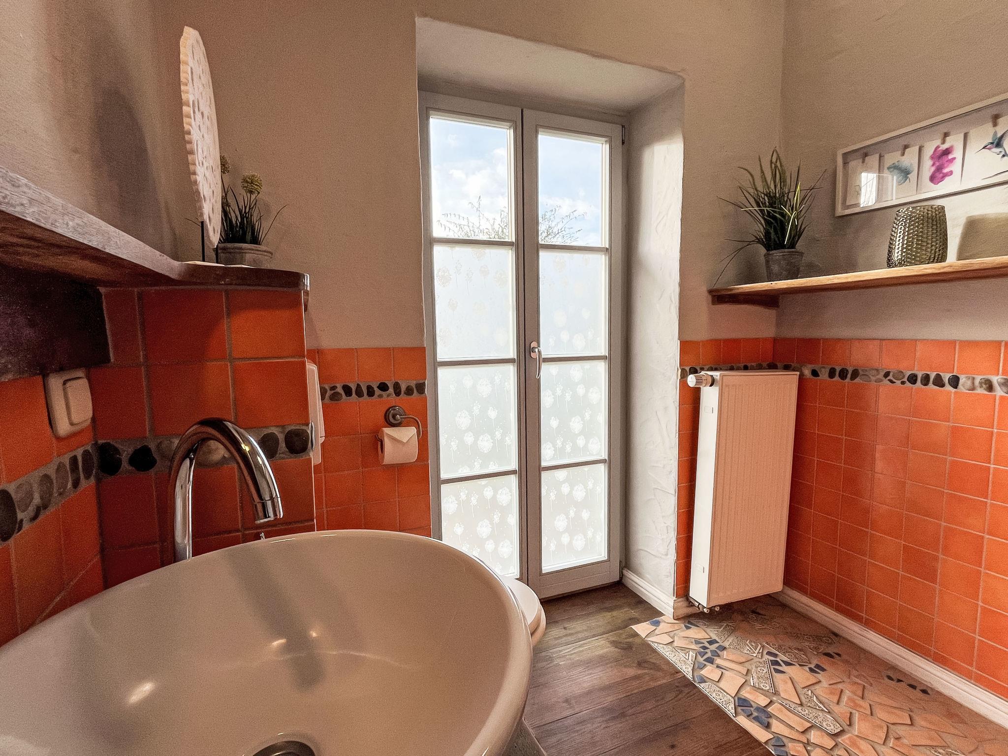 "Ferienscheune", 5-room cottage 160 m2 on 2 levels. Object suitable for 8 adults. Comfortable and cosy furnishings: living/dining room with Scandinavian wood stove, dining table and cable TV (flat screen), radio and CD-player. Exit to the garden, to the terrace. 1 room with 1 double bed (160 cm, length 200 cm). 1 room with 2 beds (90 cm, length 200 cm). Open kitchen (oven, dishwasher, 4 ceramic glass hob hotplates, toaster, kettle, electric coffee machine). Shower/WC. Upper floor: 1 room with 1 double sofabed (160 cm, length 200 cm). 1 room with 1 double bed (160 cm, length 200 cm). Bath/shower/WC. Comfortable furnishings in the country house style. Terrace. Terrace furniture. Beautiful view of the garden. Facilities: children's high chair, baby cot, hair dryer. Internet (WiFi, free). Parking (2 cars). Please note: suitable for families. Non-smokers only. Maximum 1 pet/ dog allowed.